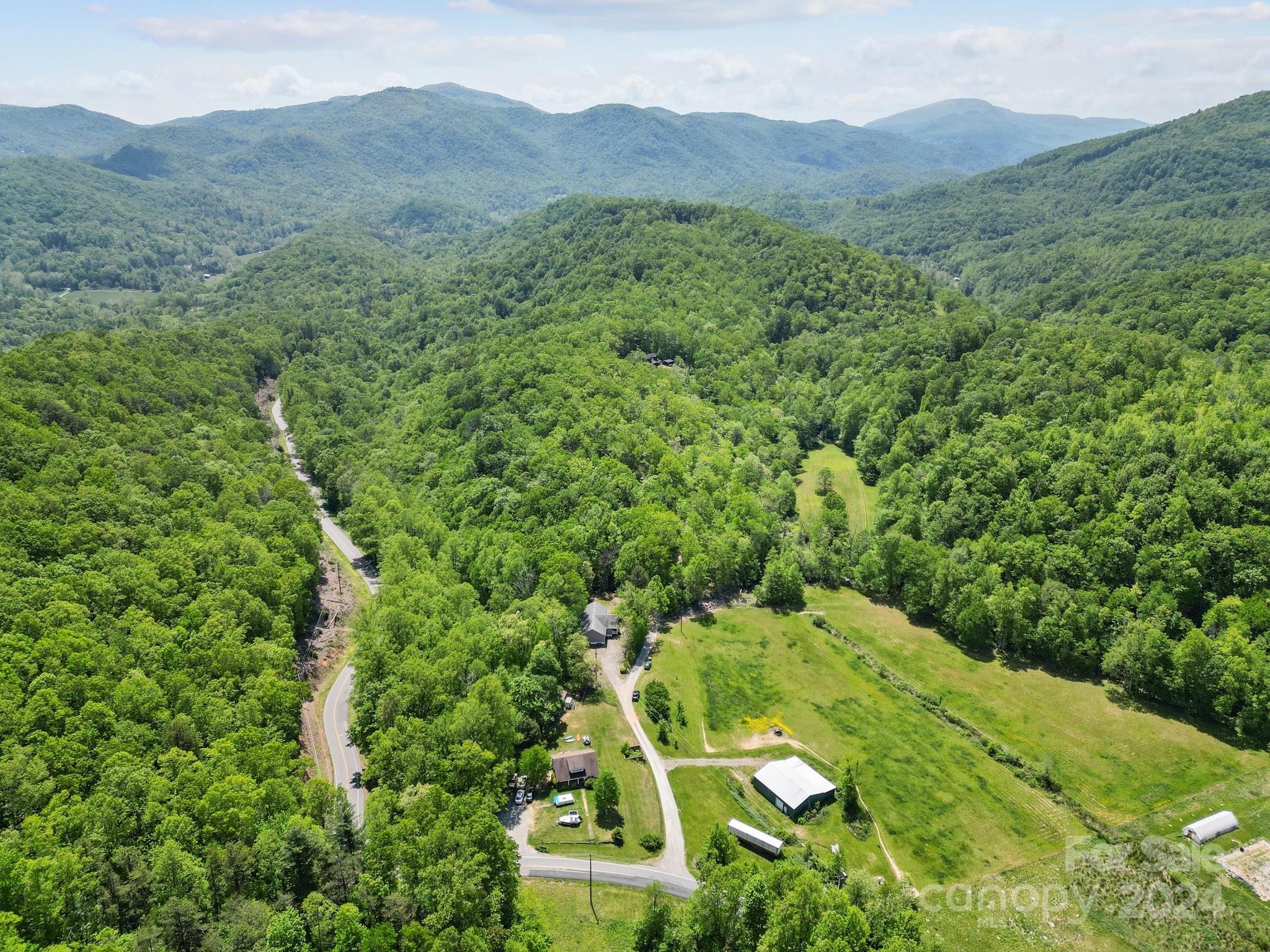 781 Morgan Hill Rd is a stunning estate situated in the beautiful countryside of Fairview, North Carolina. This remarkable property spans across 118 acres & offers an abundance of natural beauty, with rolling hills, fertile bottomland, lush forests and great river frontage on bold Flat Creek. The concrete bridge takes you across the creek to a well established road system along gentle ridge lines w/ Multiple Level building sites available throughout. You can choose the perfect location to build your dream home, whether it's tucked away in the woods or high on a hilltop w/ breathtaking views. The fertile bottom land & rolling hills are perfect for growing crops, while the dense forests provide opportunities for hunting, fishing, hiking, horseback riding & other recreational activities. The large workshop w/power offers endless opportunities. 20 minutes to Black Mountain & 30 minutes to Asheville.