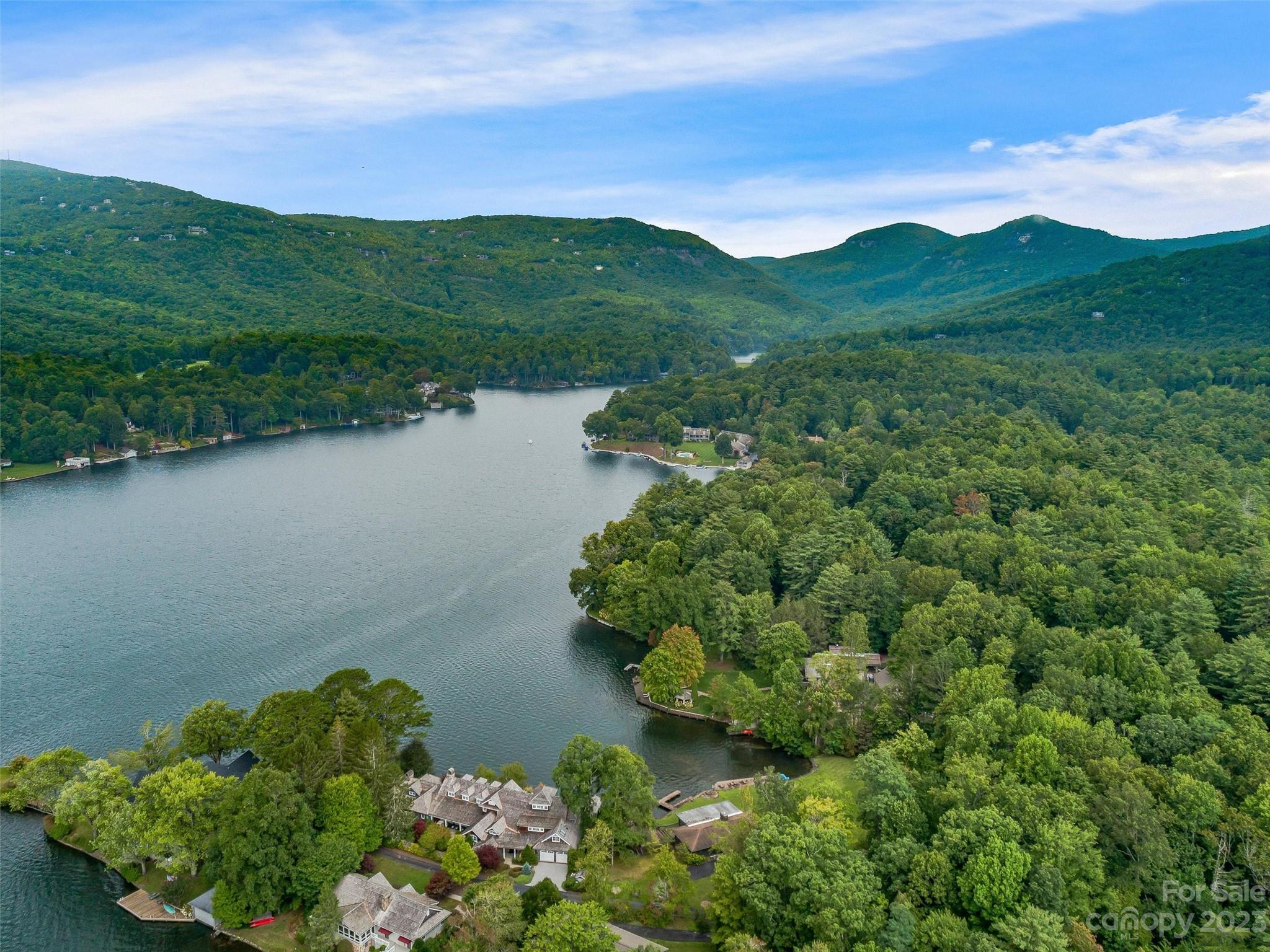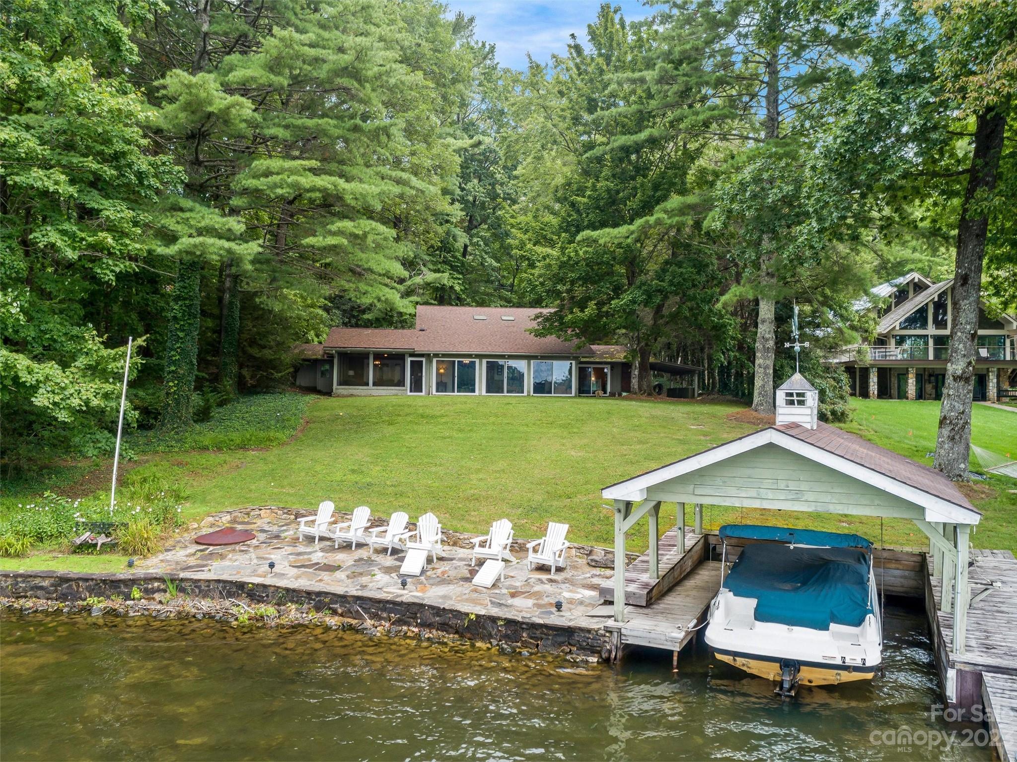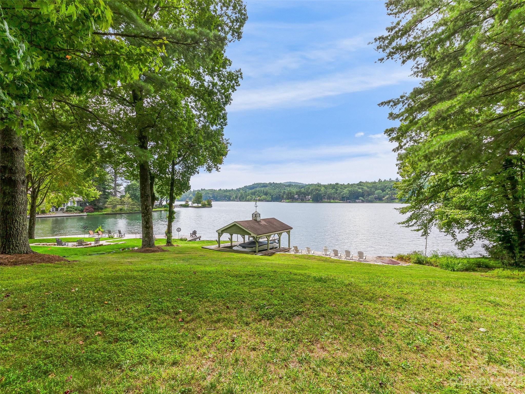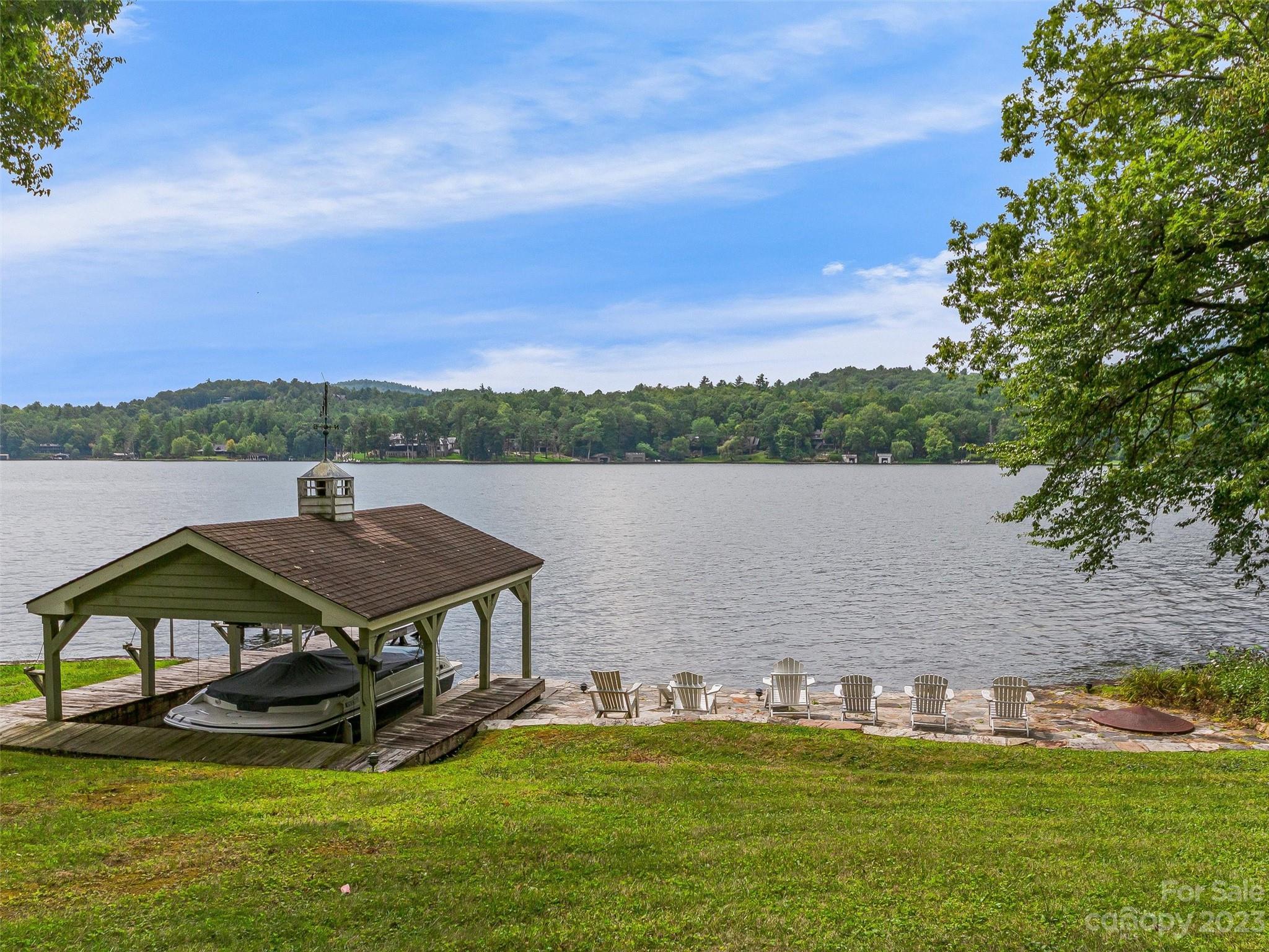 Welcome to Knox’s Landing…designed for easy living and family fun. Open living, dining & kitchen area keeps everyone involved while inside. A level lot with easy access to dock, boathouse and lakeside patio with fire pit helps to entertain “lake style”. A stunning sun room combined with a large screened gathering porch (complete with wet bar, grill and additional dining) beckons the whole gang to enjoy the fun. Master suite and office/media room (with full bath) completes the main level. Two bedrooms with adjoining bath takes in the upper level. Easy access off Cold Mountain Road to club facilities (if you choose the social life) or to US 64. Beautiful property with open water and full lake and mountain views.