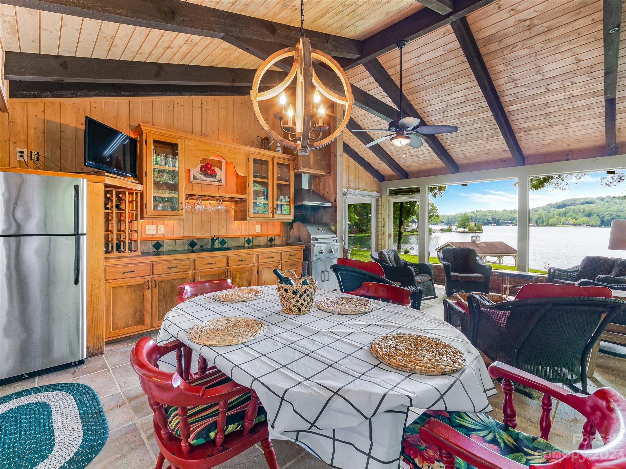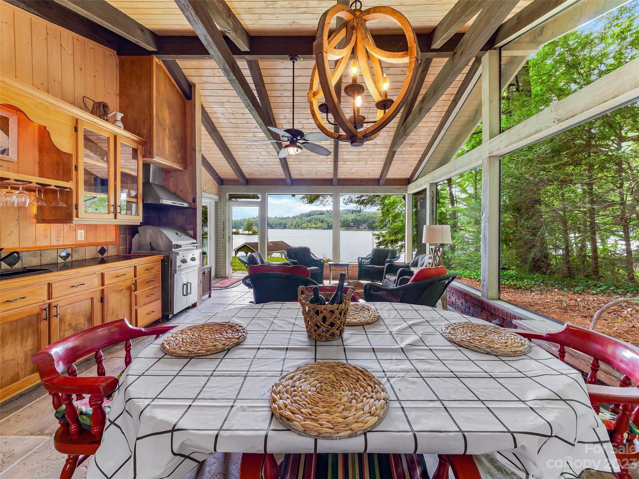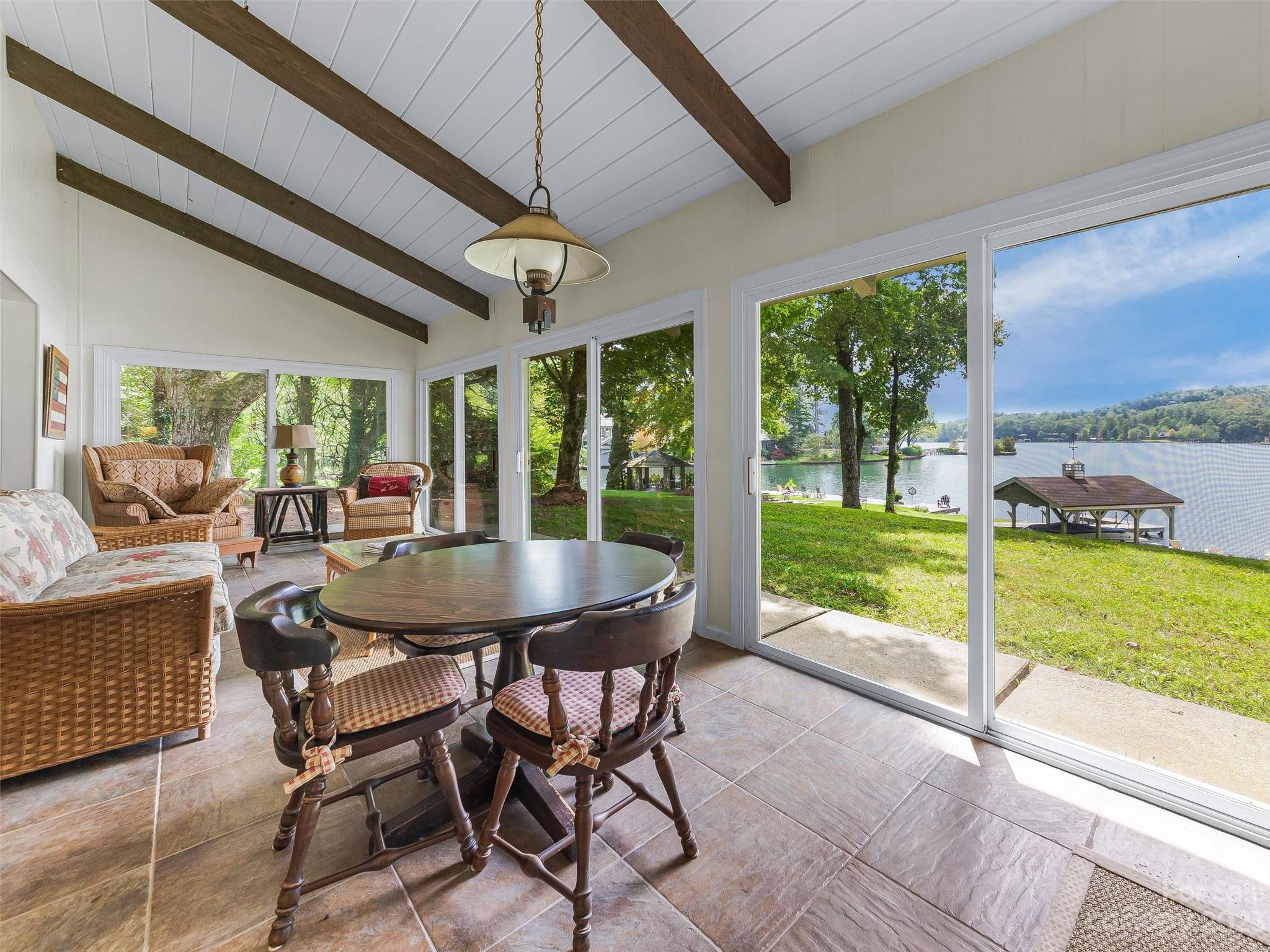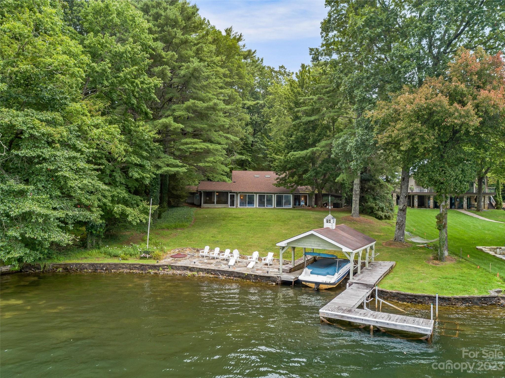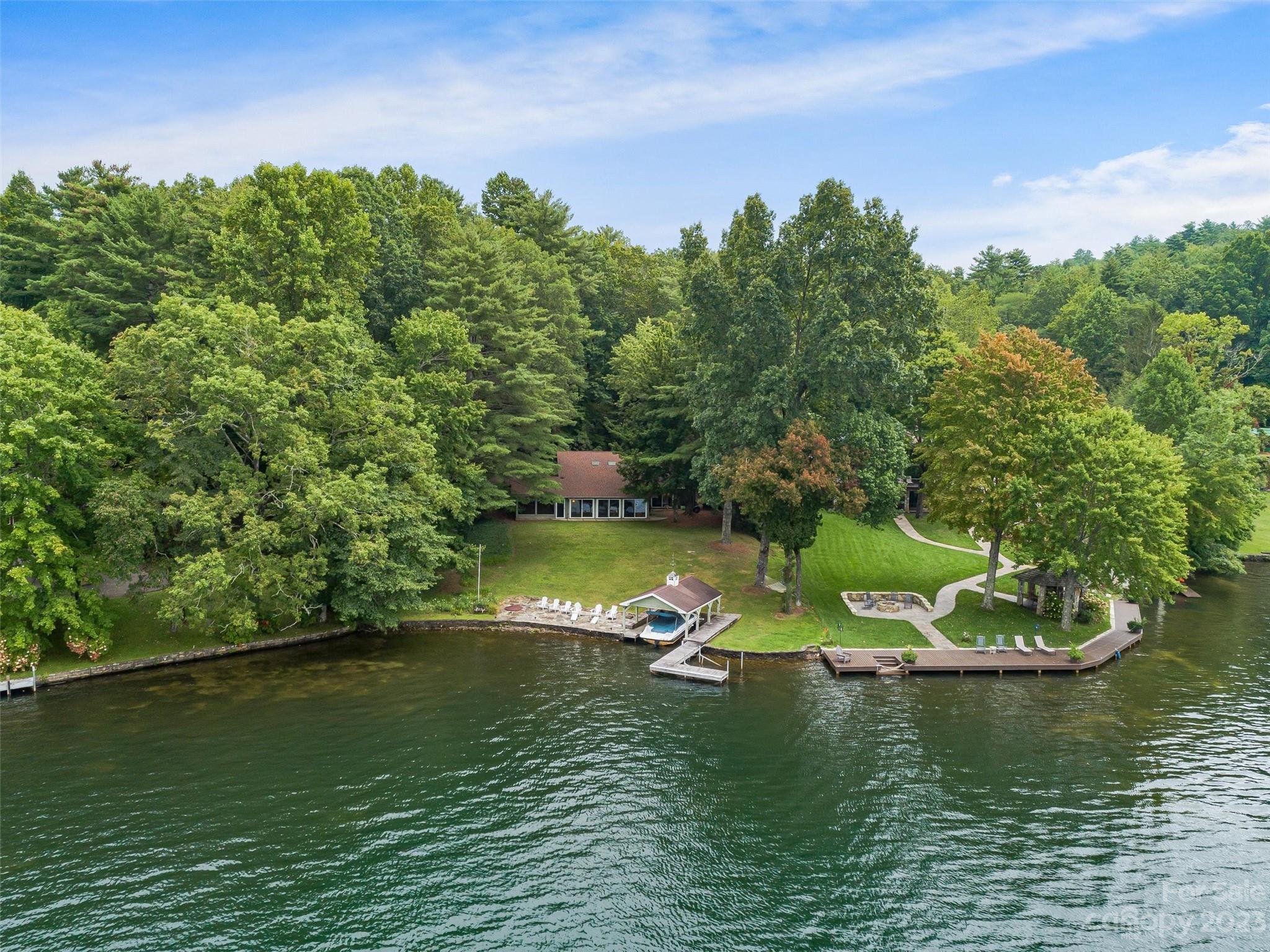 Welcome to Knox’s Landing…designed for easy living and family fun. Open living, dining & kitchen area keeps everyone involved while inside. A level lot with easy access to dock, boathouse and lakeside patio with fire pit helps to entertain “lake style”. A stunning sun room combined with a large screened gathering porch (complete with wet bar, grill and additional dining) beckons the whole gang to enjoy the fun. Master suite and office/media room (with full bath) completes the main level. Two bedrooms with adjoining bath takes in the upper level. Easy access off Cold Mountain Road to club facilities (if you choose the social life) or to US 64. Beautiful property with open water and full lake and mountain views.