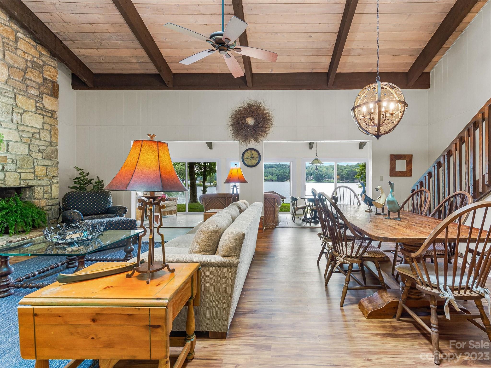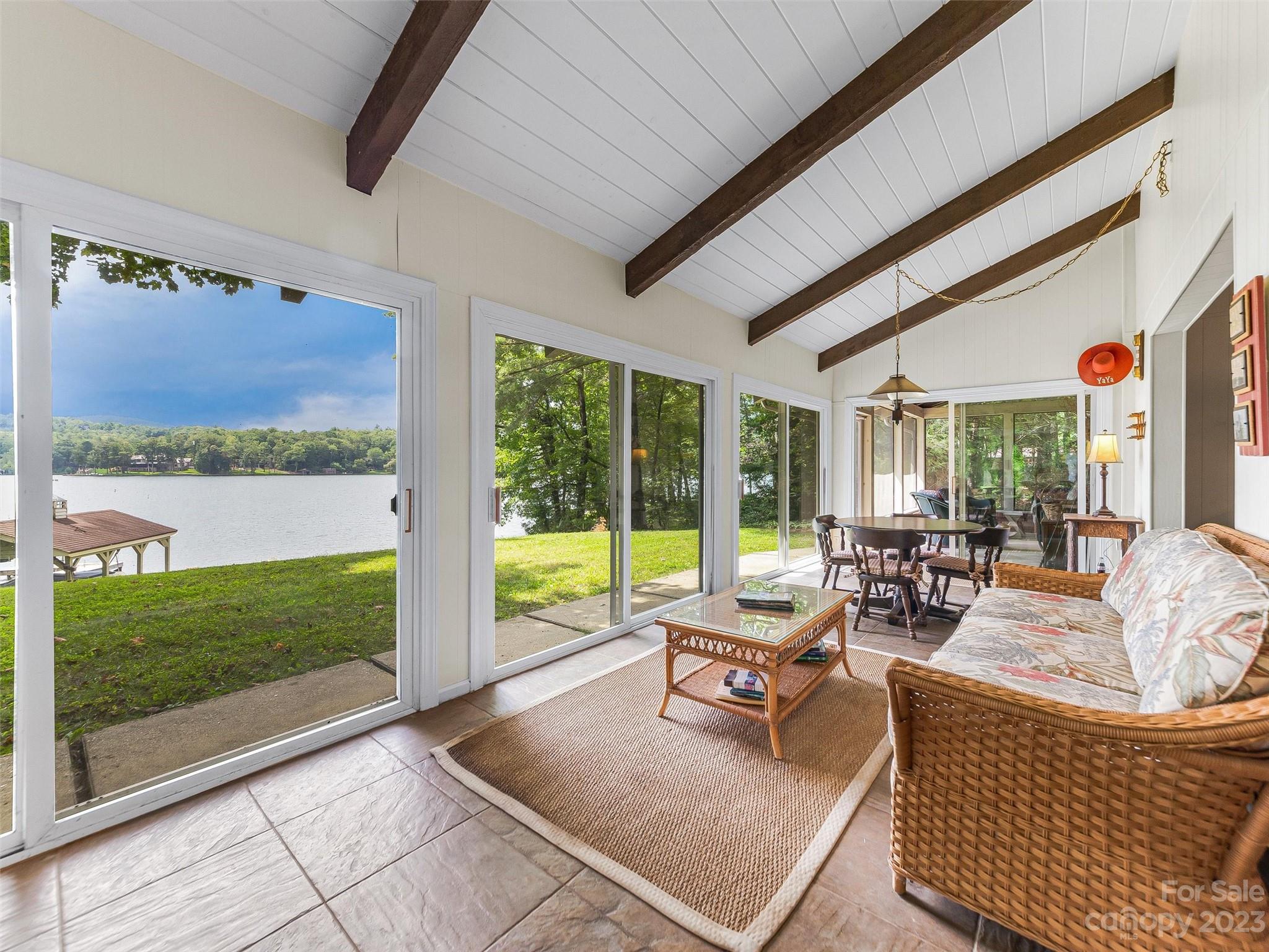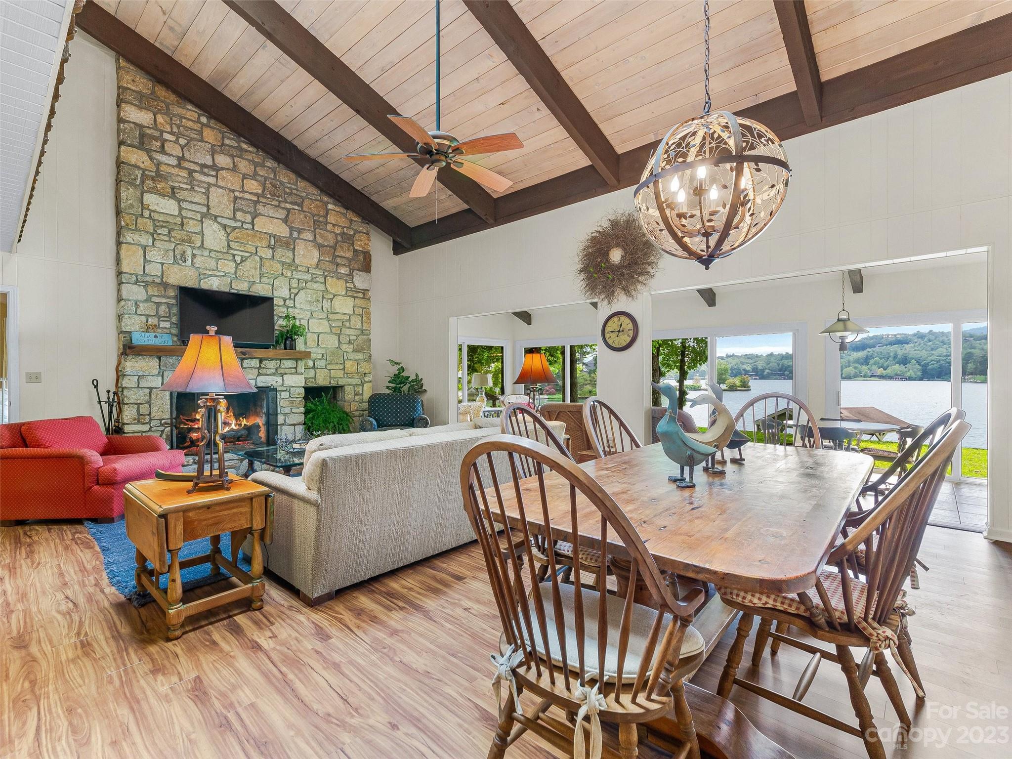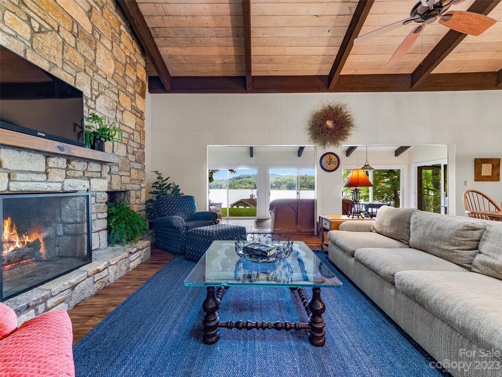 Welcome to Knox’s Landing…designed for easy living and family fun. Open living, dining & kitchen area keeps everyone involved while inside. A level lot with easy access to dock, boathouse and lakeside patio with fire pit helps to entertain “lake style”. A stunning sun room combined with a large screened gathering porch (complete with wet bar, grill and additional dining) beckons the whole gang to enjoy the fun. Master suite and office/media room (with full bath) completes the main level. Two bedrooms with adjoining bath takes in the upper level. Easy access off Cold Mountain Road to club facilities (if you choose the social life) or to US 64. Beautiful property with open water and full lake and mountain views.