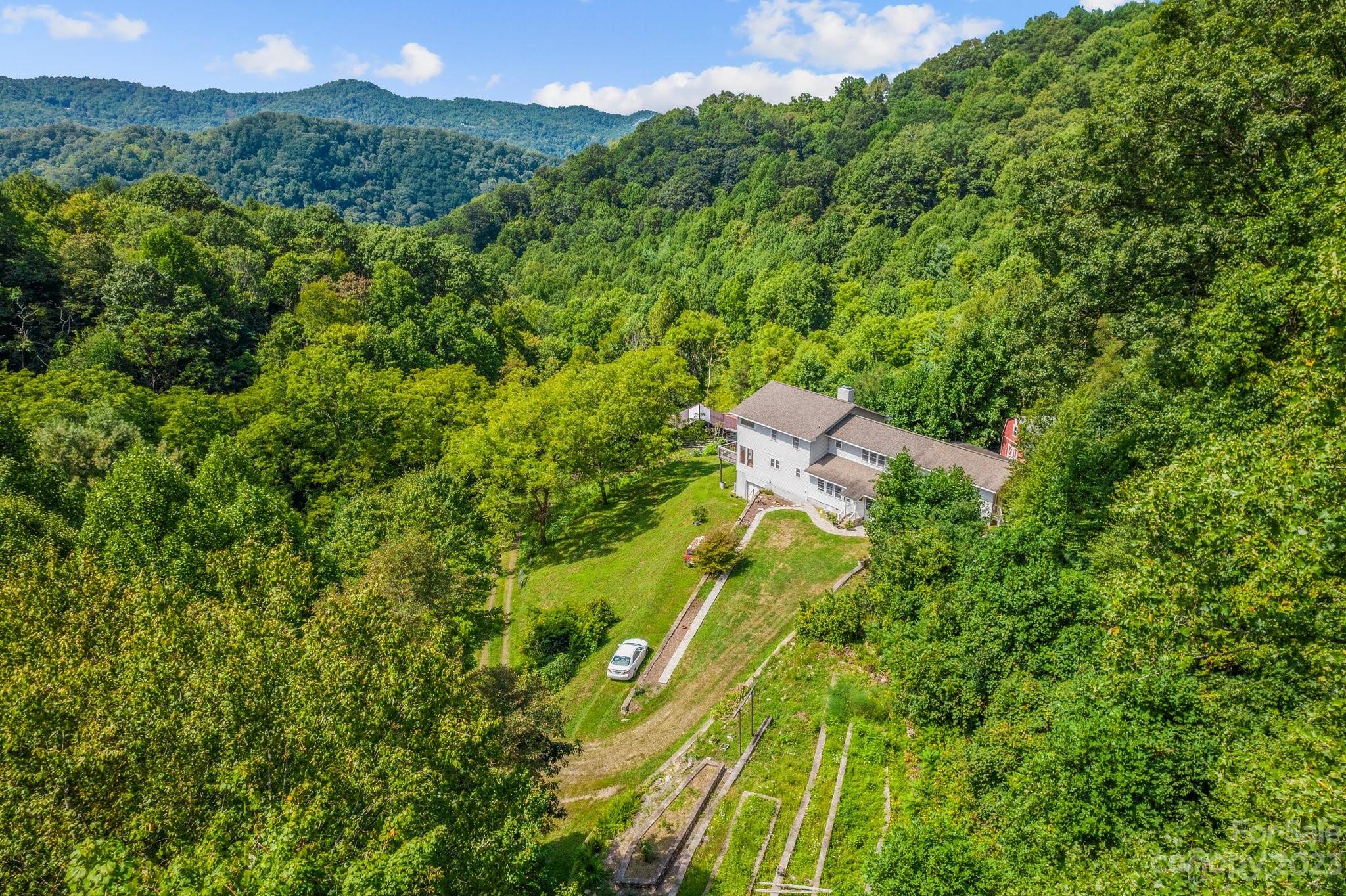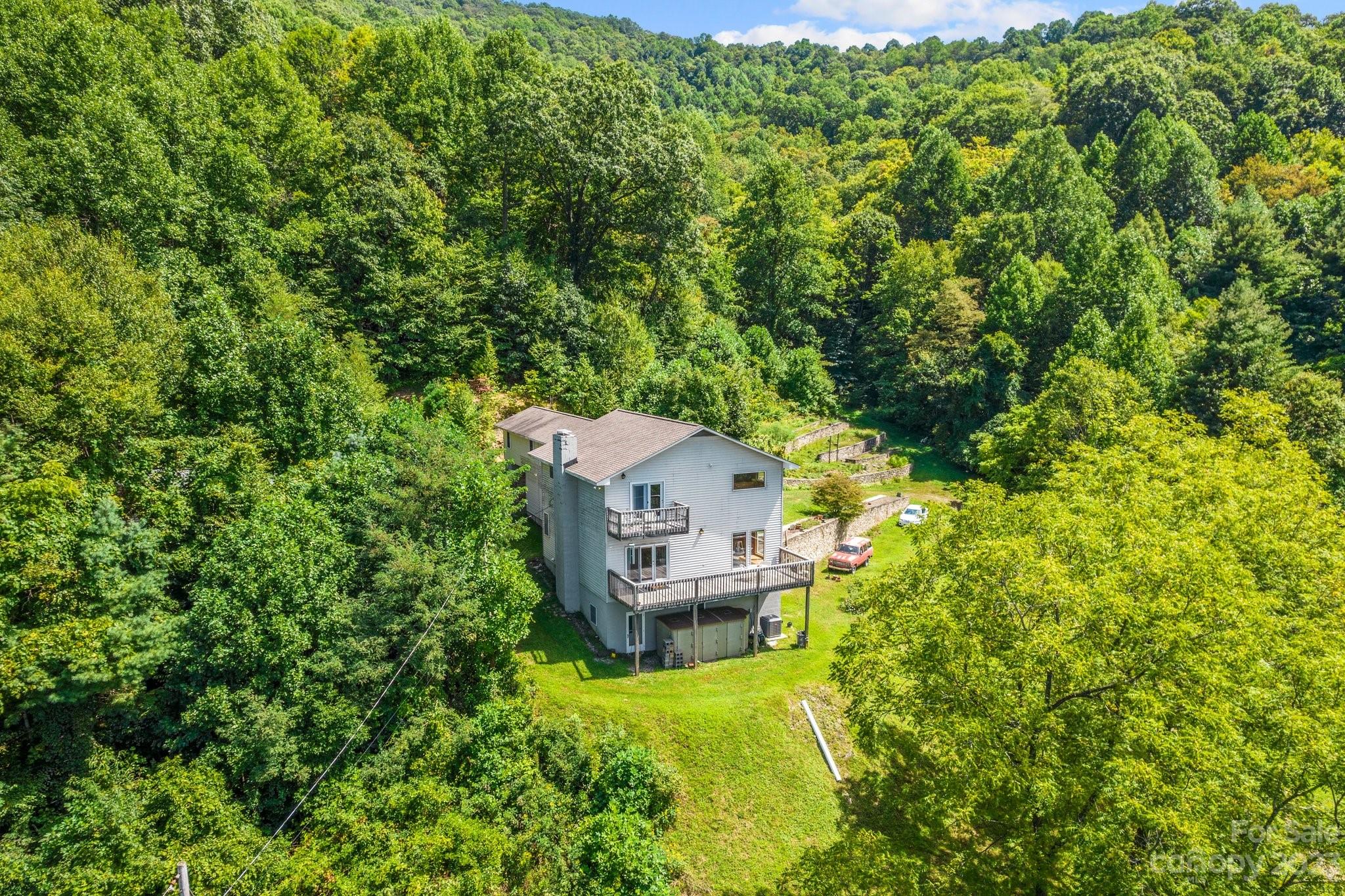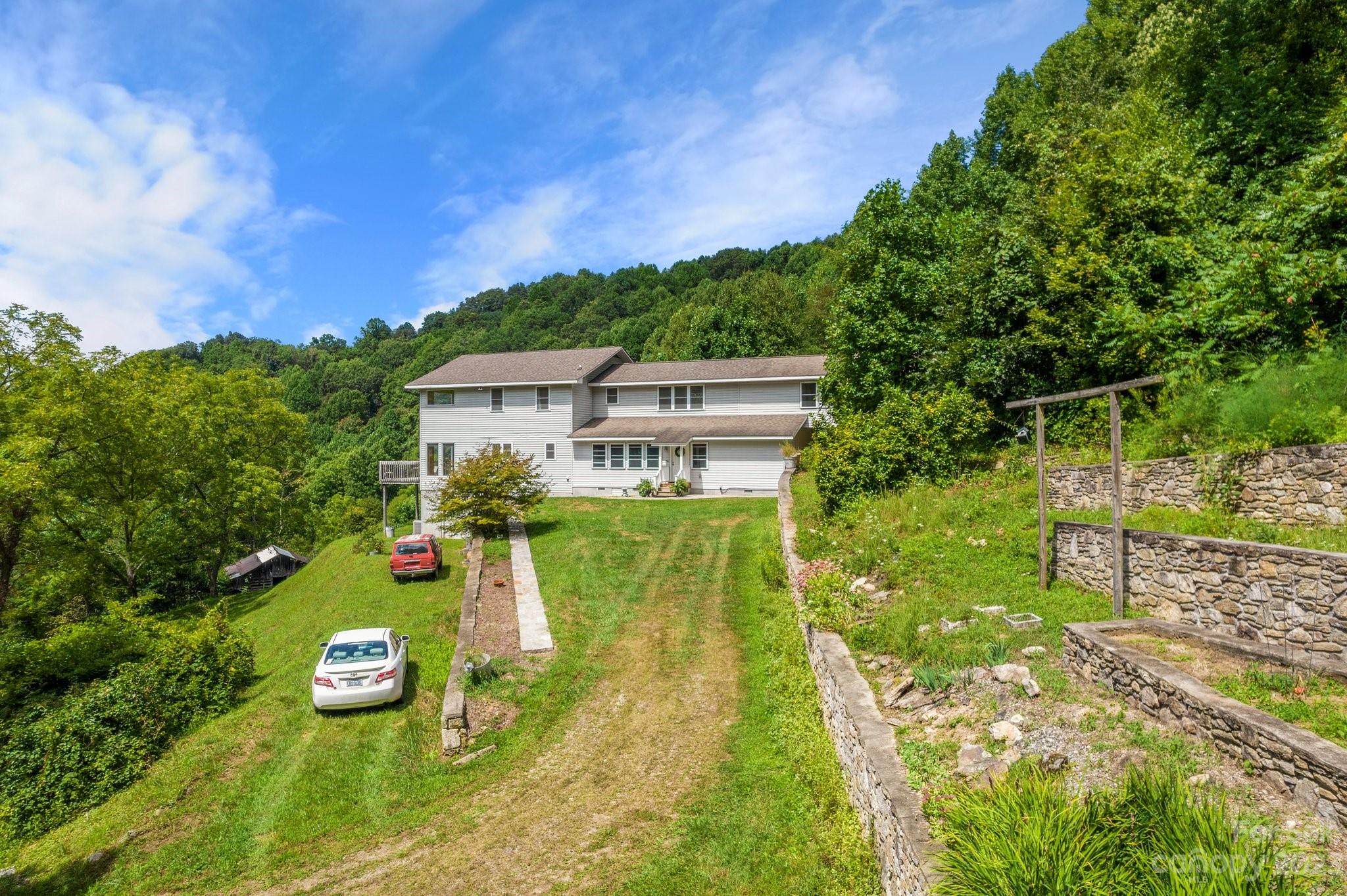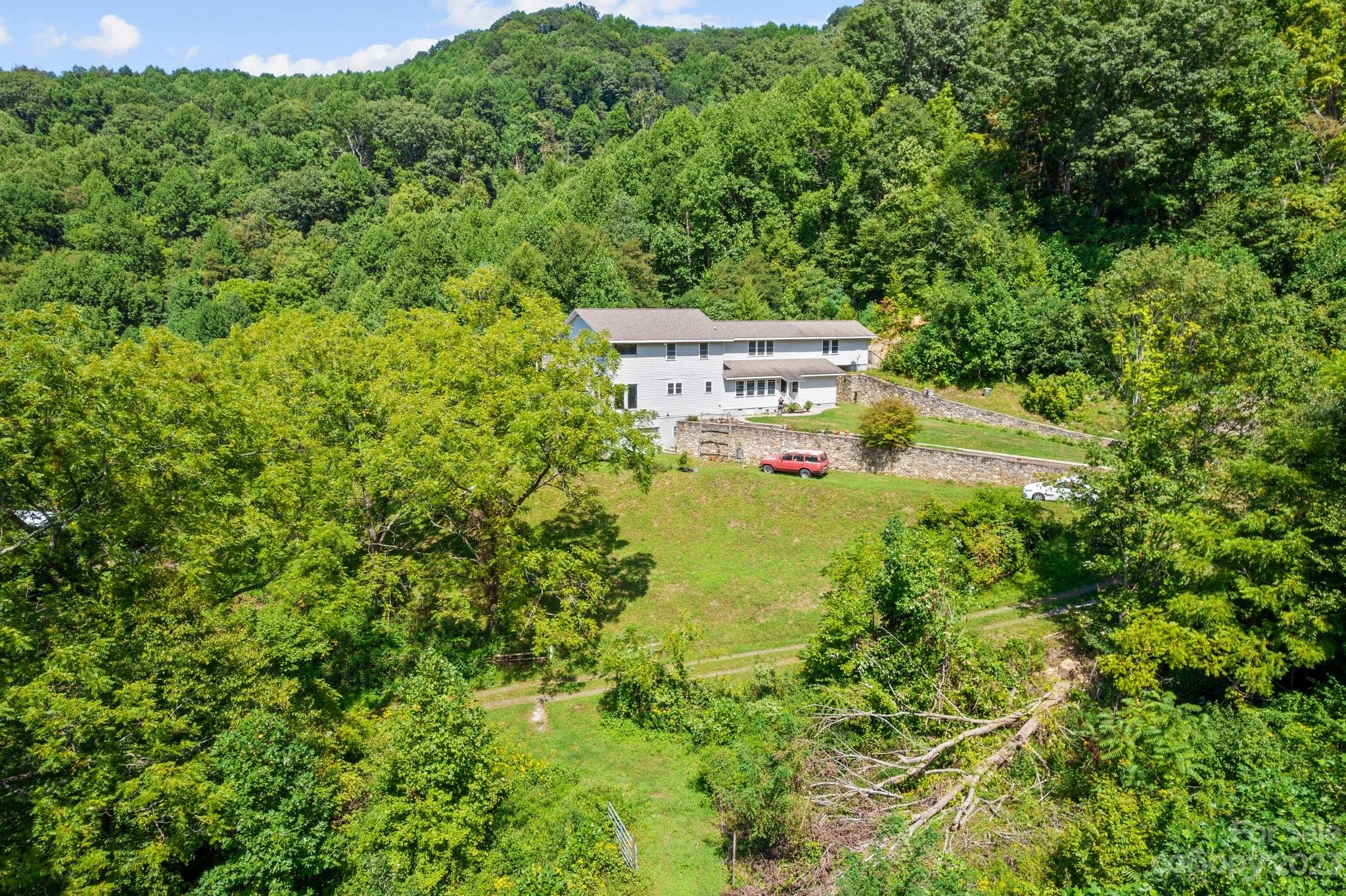 Don't miss this Mountain Paradise on 142.5 Acres. Nestled in pristine mountains, this land offers breathtaking views and serenity. Embark on daily hikes right on your property, discovering hidden spots and panoramic vistas. The private residence combines comfort with wilderness charm. The thoughtful layout with ample storage makes it an ideal mountain escape. The land holds logging potential and opportunities to revive pastures for farming. Bring your goats, cows, and chickens! Natural springs dot the property, suitable for livestock. Beautiful stone terraces showcase craftsmanship. Just a 45-minute drive to downtown Asheville, experience the tranquil mountain life with city amenities close by.