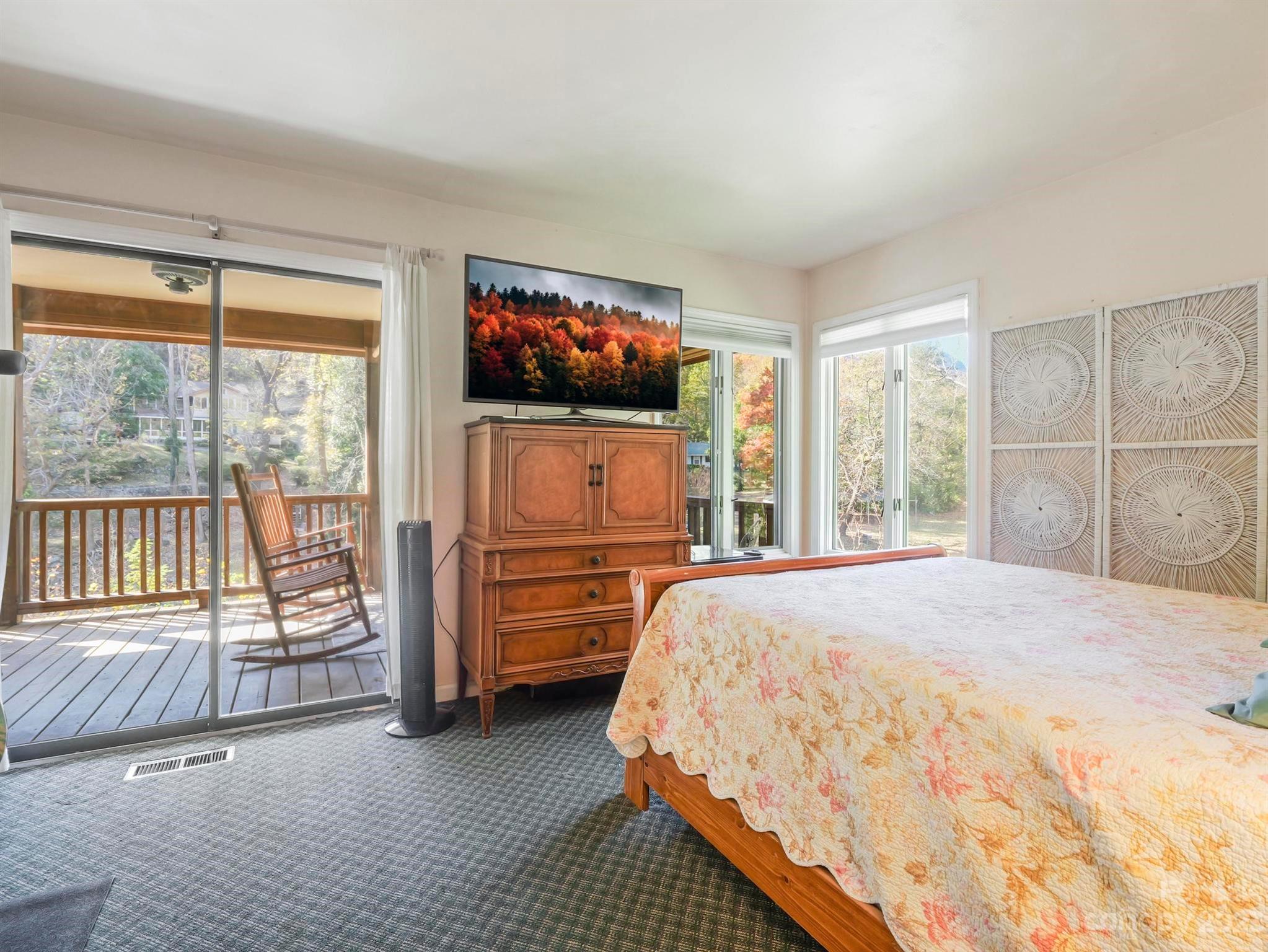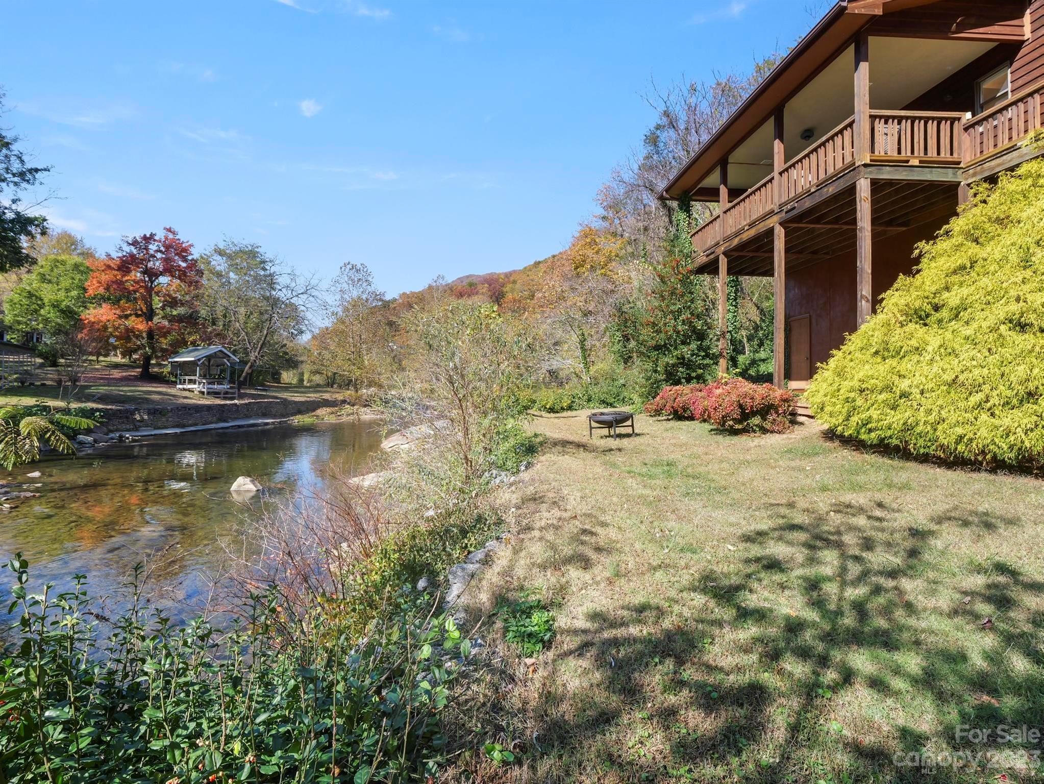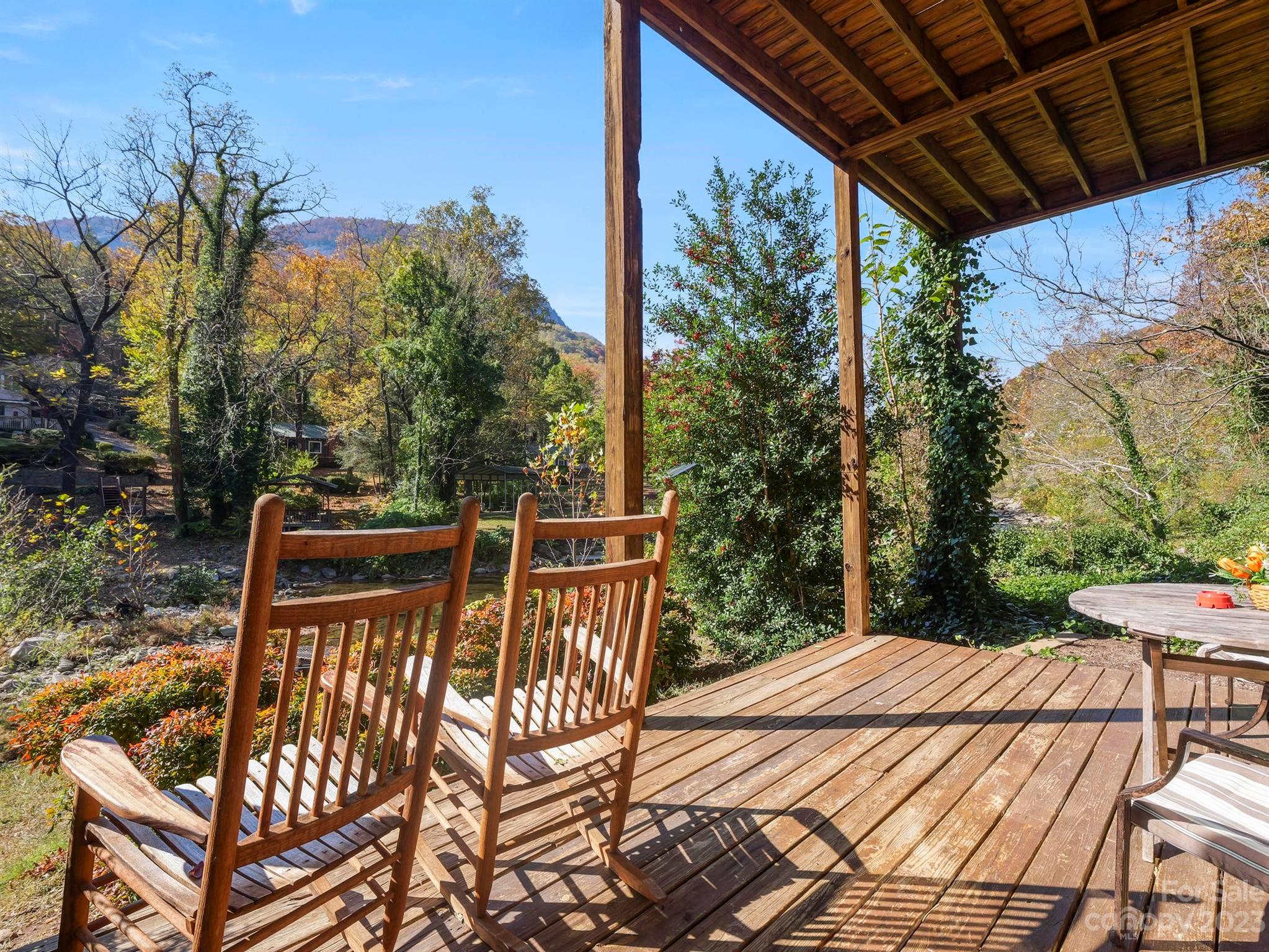Income producing property w/ 300 feet on the Rocky Broad River. Commercial or residential opportunities. Beautiful year-round views of Chimney Rock State Park on .74-acre with room on level ground for expansion or additional structures and parking. The main level has a primary BR, BA, kitchen, dining area, and 2-story great room w/ a wood burning stove. Upstairs is another BR and full BA, + a large office or flex space overlooking the living area. A lovely front porch wraps around the side of the home, and the expansive back deck overlooks the river. Separate living quarters in the finished basement is utilized as a short-term vacation rental with a family room, kitchenette, bedroom & full bathroom (gross income 2021 $38,672.50; 2022 $39,600.89; 2023 $34,985.38; 2024 to date $22,506.30). This property is in Lake Lure, and borders Chimney Rock Village. Right in the middle of all the action! By appointment only. Ample space for parking.