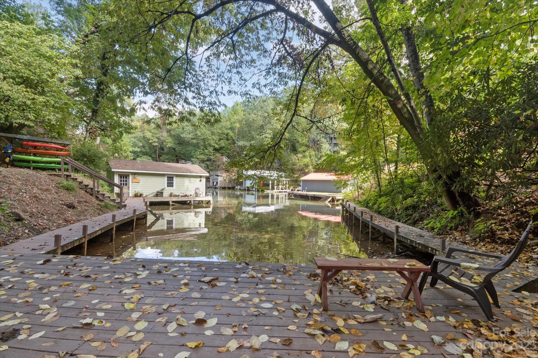 Welcome to Serenity Lodge on Lake Lure. This private retreat sits on 2 adjacent lots offering 1.6 acres of tranquilty and seclusion rarely found on lake front property. A special find with 200 ft of shoreline at the end of a private cove. Boathouse with boat lift and plenty of storage for all the fun and excitement a day on the lake provides. After a full day on the water, take a load off relaxing lakeside on your own private pier, take a dip in the hot tub or sit by the outdoor fireplace on one of your 2 wrap around decks. Walk inside to a magnificent 2 story great room with stone fireplace, updated kitchen with breakfast bar and dining area. Just above the kitchen sits an oversized loft perfect for pool table or game room and adding to the extra space this home has to offer. Downstairs provides you with 2 bedrooms, 2 full baths and a bonus room used as a 3rd bedroom with access to lower level deck. Perfect for family compound, income producing vacation rental or 2nd home.