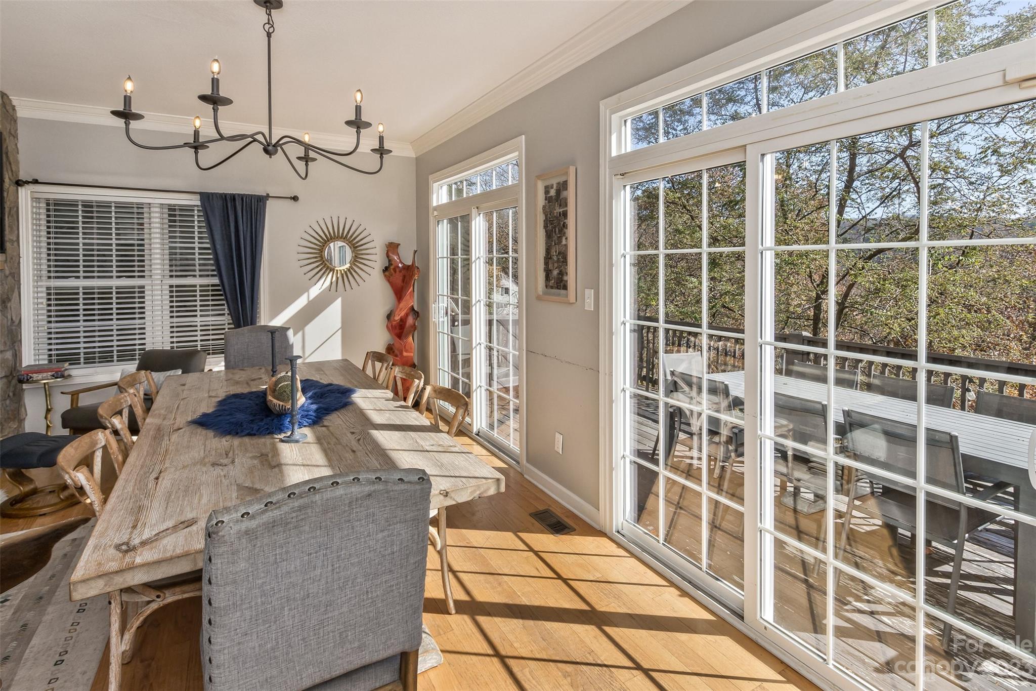 This remarkable home is a successful short-term rental with a proven, multi-year history. Its prime location, just 3 miles from downtown Asheville, affords not only convenience to all that Asheville has to offer, but also the cool summers and wonderful views from being tucked on an elevated mountainside. Sold fully furnished as a turn-key operation, the current owners have created spaces that accommodate large bookings within its multiple bedrooms, bonus rooms, full bathrooms and generous shared living areas. The main living/dining room elegant, yet cozy. The kitchen is sleekly modern, but exudes warmth as a central gathering place. Each bedroom and bonus room is spacious with either an en-suite bathroom or a bathroom nearby. The lower level is a private hideway with areas for recreation, sleeping and a relaxing dip in the hot tub. With all of these amenities, it is easy to see why it is a successful property. And, of course, it would make a stunning private residence as well!