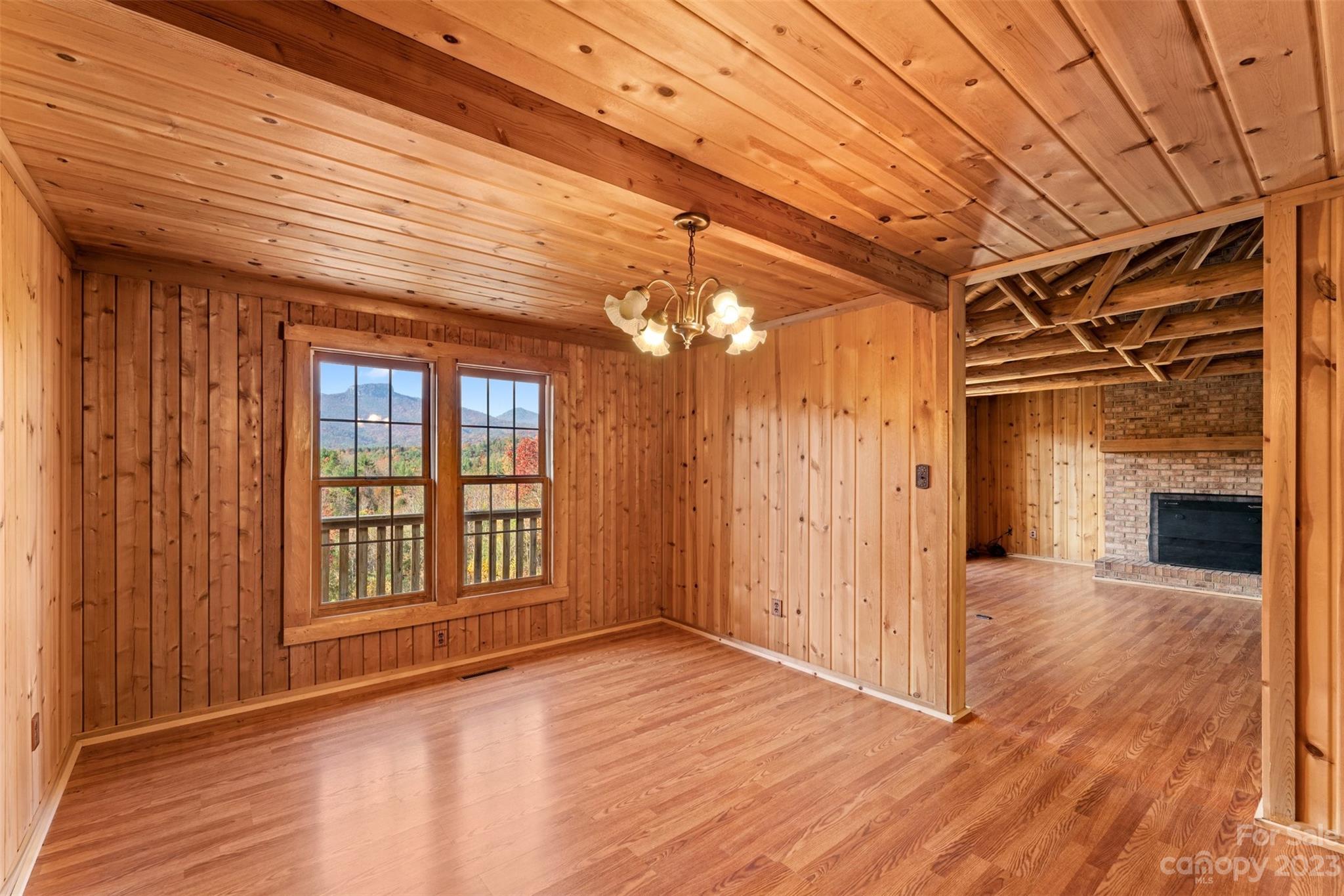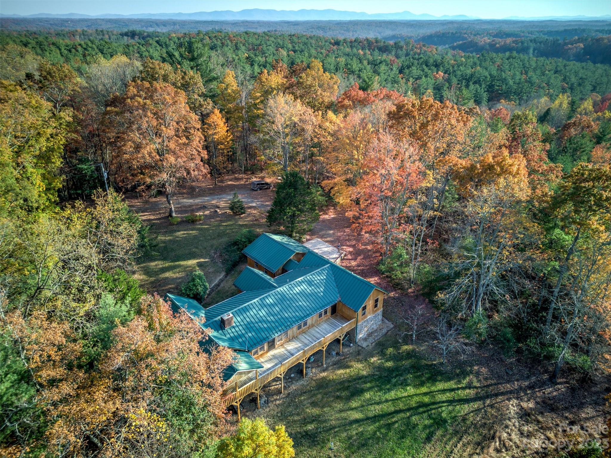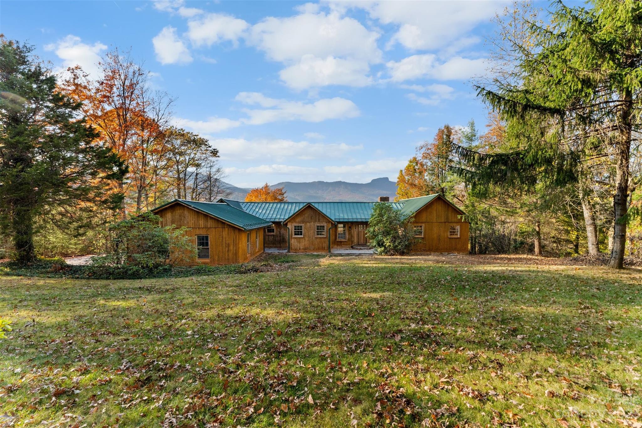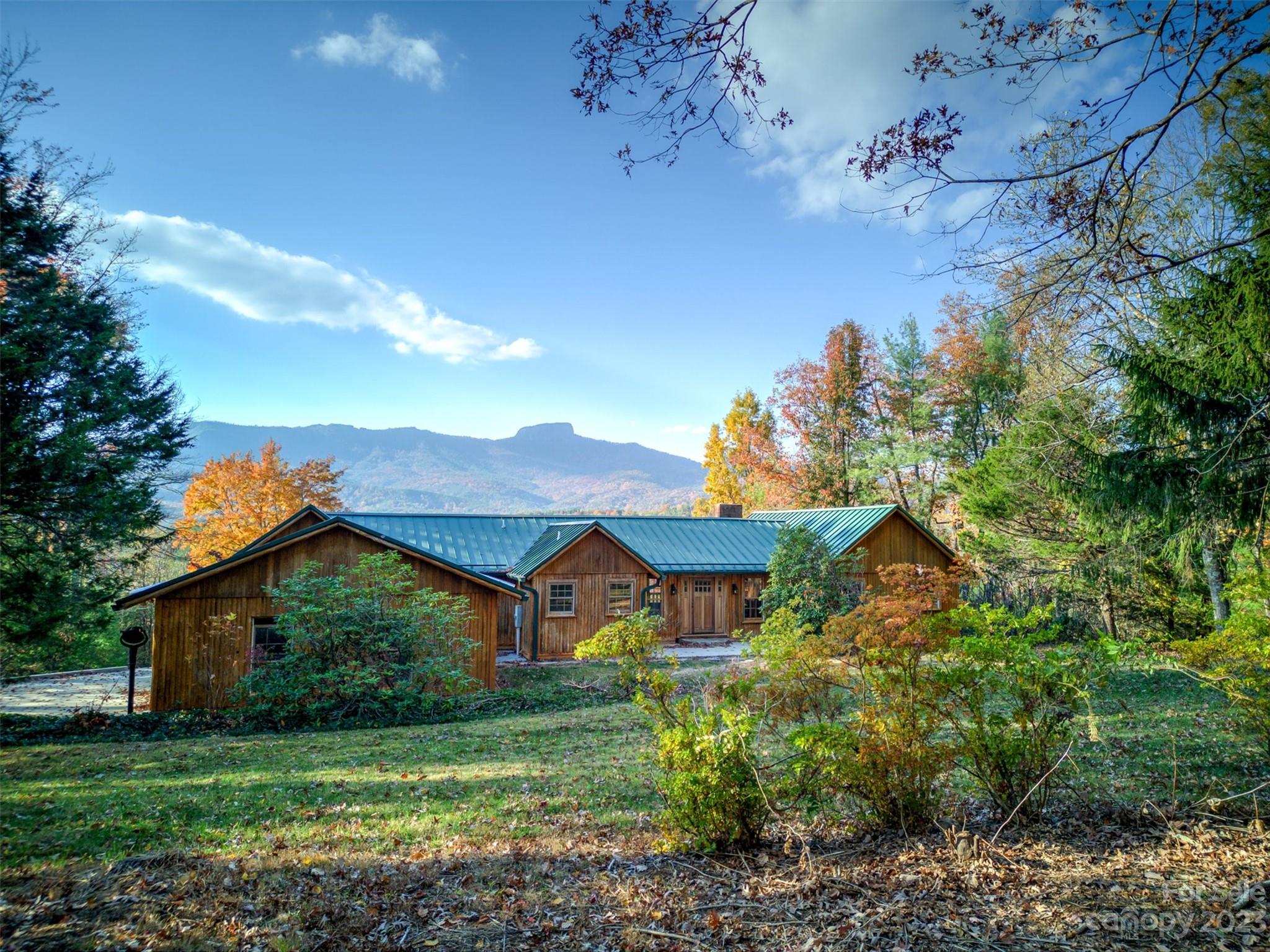 Take a drive through the trees to this private mountain house set on 50+ acres. Enjoy the peace & tranquility in this one of a kind mountain getaway with views to die for. The exterior is sided in vertical white cedar logs. The interior is warm and inviting with pine siding throughout and beautiful timbers in the living area. Three bedrooms and 2.5 baths provide room for all your family and guests. The primary suite has a large walk in closet, wood burning fireplace & access to covered deck with direct view of Table Rock. The spacious galley kitchen has granite counters, new appliances & breakfast area with that gorgeous view. Dining room/den off the kitchen leads to the living room with fireplace. Full unfinished basement with woodburning stove, stub out plumbing for expanded bath and safe room. 2 car garage. This home gives you all the privacy you could ever want yet is just 15 minutes from Morganton shops, restaurants, entertainment and 30 min from Morganton Lenoir airport.