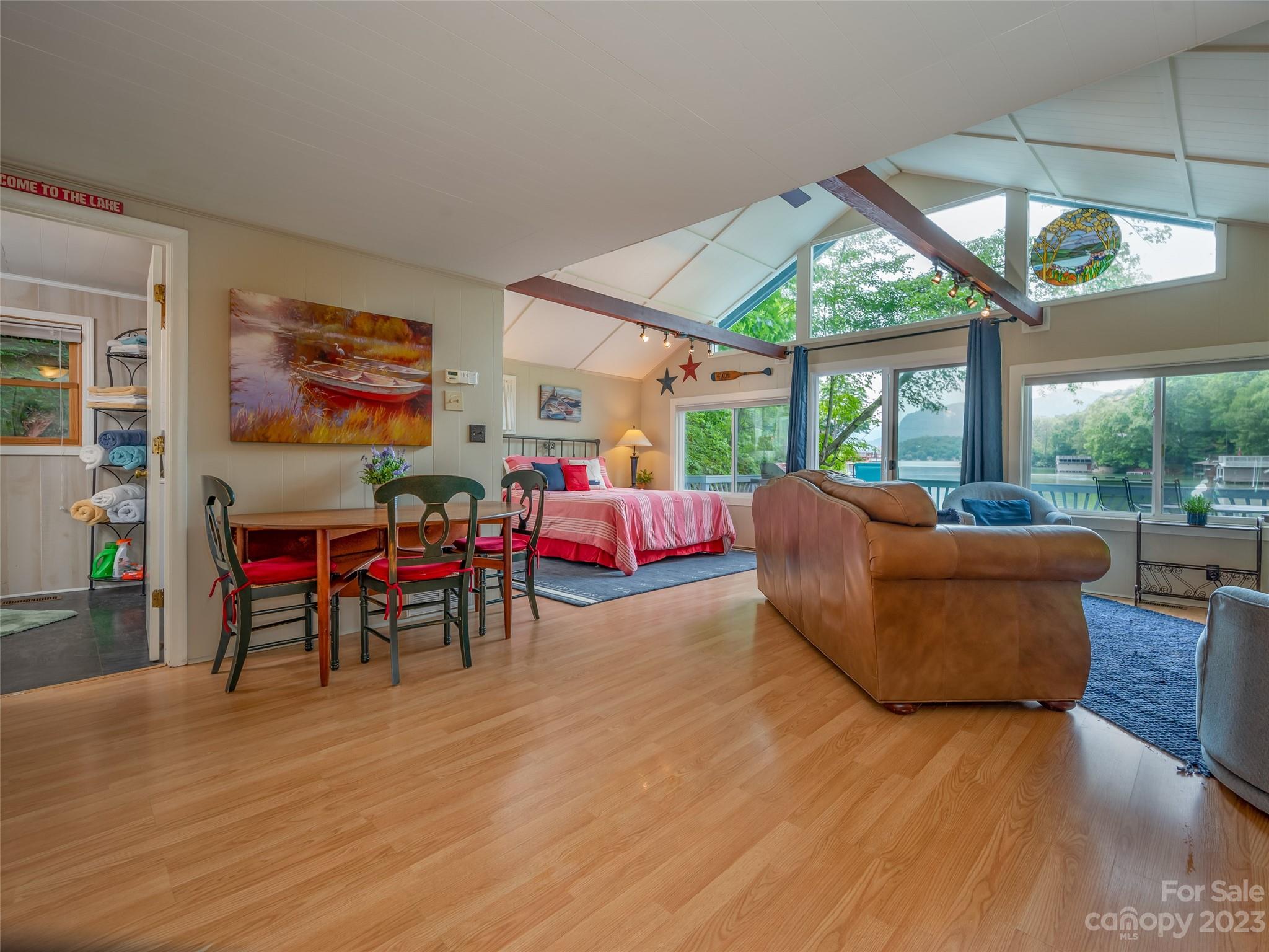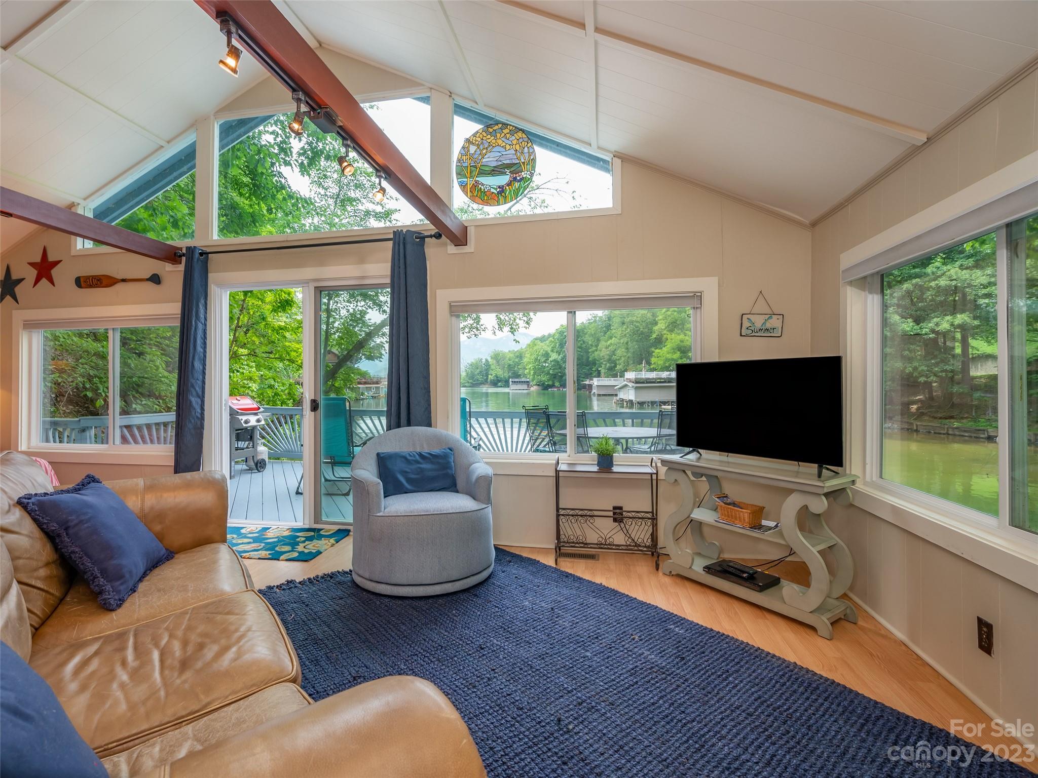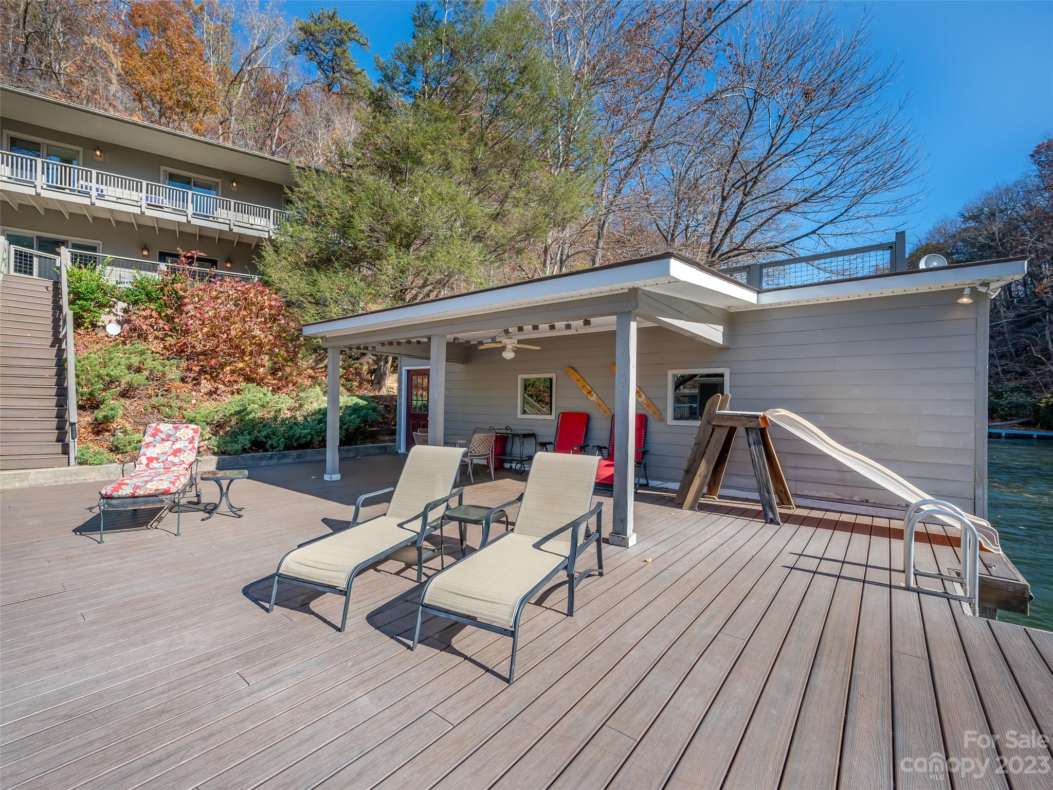 Once in a lifetime opportunity to own this lakefront LEGACY property in Sunset Cove in Lake Lure with stunning westerly views. Approximately 575ft of water frontage and a total of 13.73 acres, the main home offers the perfect living space with 5BR/3BA. Level entry into the home with small yard and tons of parking. Open floor plan with stunning upgraded kitchen, hardwood floors, wood burning fireplace and expansive decks and balcony to enjoy the views. Head down to the double stall boat house with rooftop deck, and massive sundeck complete with a slide! Around the cove is the cozy 1BR/1BA cottage for a great rental opportunity. Many potential building sites in the lower level portion and on top of the property off of Buffalo Shoals. A must see in person to truly appreciate this one-of-a-kind estate!