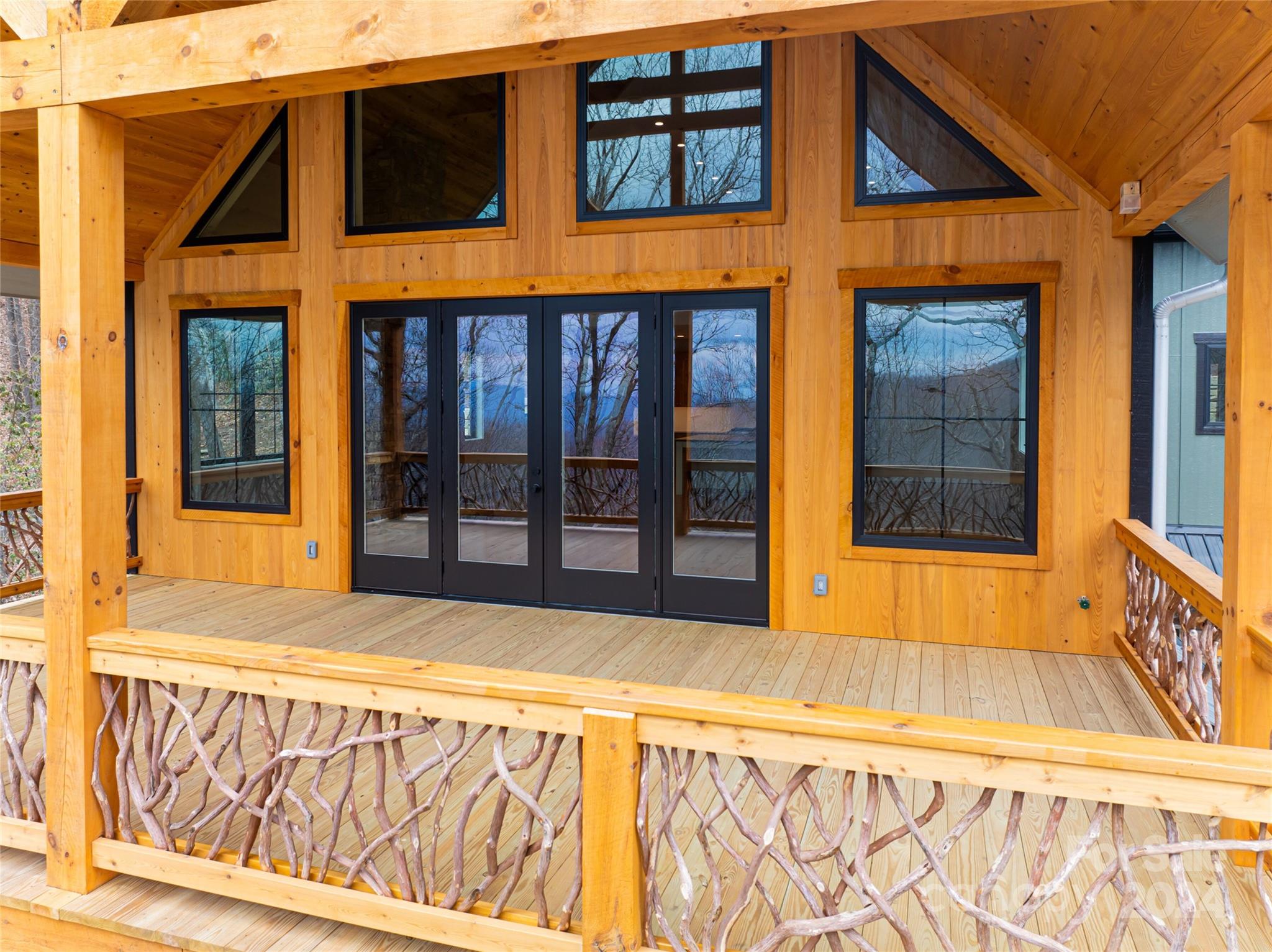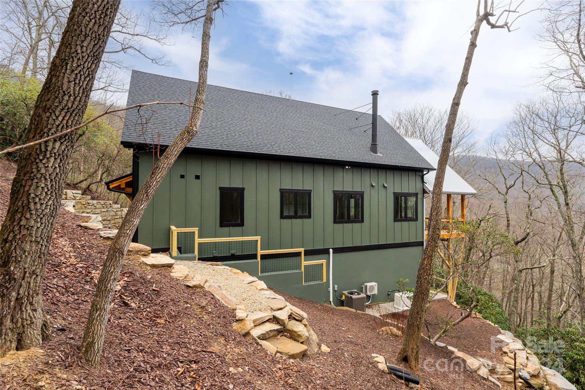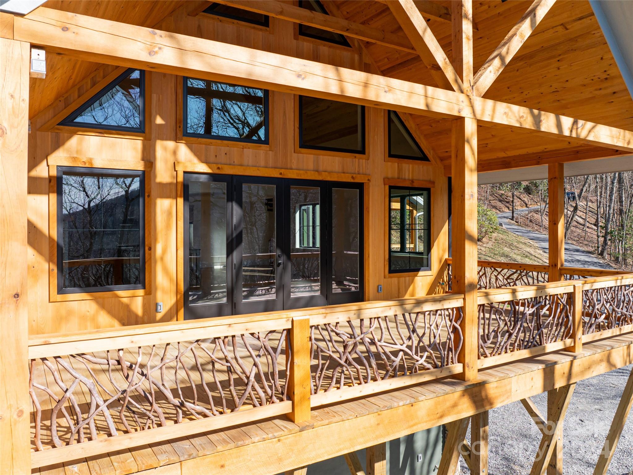 New custom quality construction on 8.2 acres in a gated community 15 minutes from downtown Asheville. Rarely does the combination of long range western views from a private location get offered for sale in the Asheville region. Interior features include an elevator, vaulted ceilings, exposed beams with tongue and groove ceilings, two story stone fireplace, The main level has a gourmet kitchen overlooking the great room and the covered porch that faces towards the sunset with the master bedroom and bath and an additional half bathroom. The upper floor has one bedroom and a bathroom with a gorgeous living area/game room that also has the long range views to the west. The lower level has two more rooms for guests, a laundry room, and bathroom with an all purpose room that makes a great transition from the garage to living area. The landscaping is extensive with beautiful stone retaining walls and walkways. This home is perfect for both year round living and a second home retreat.
