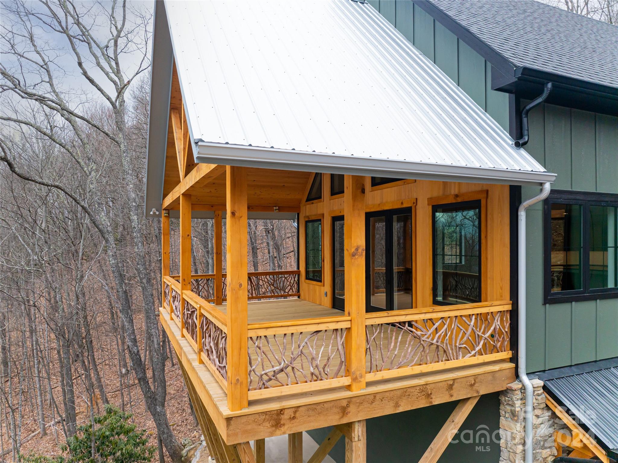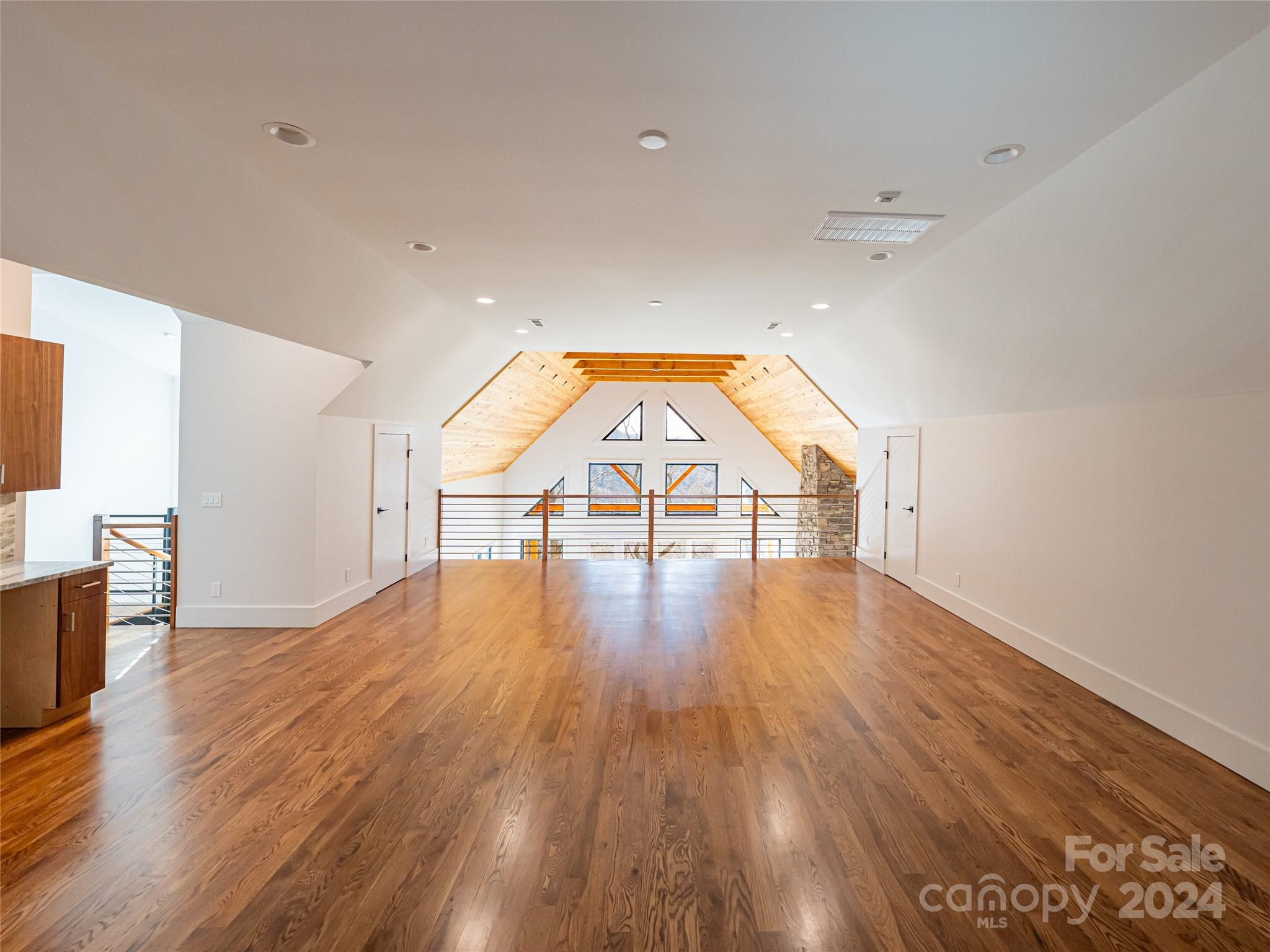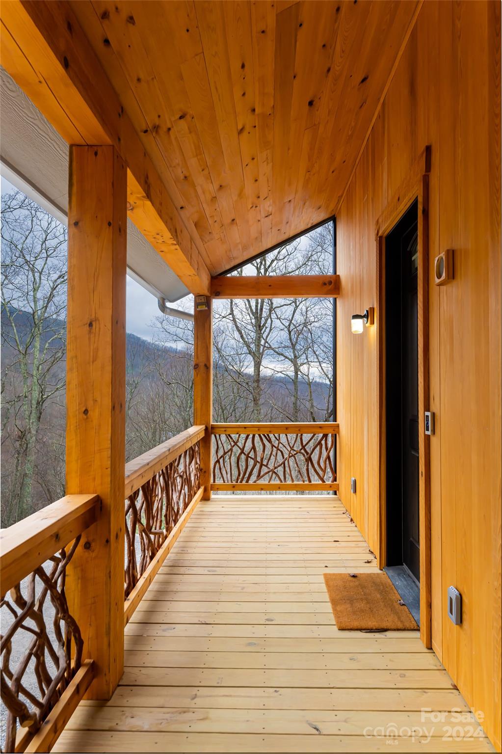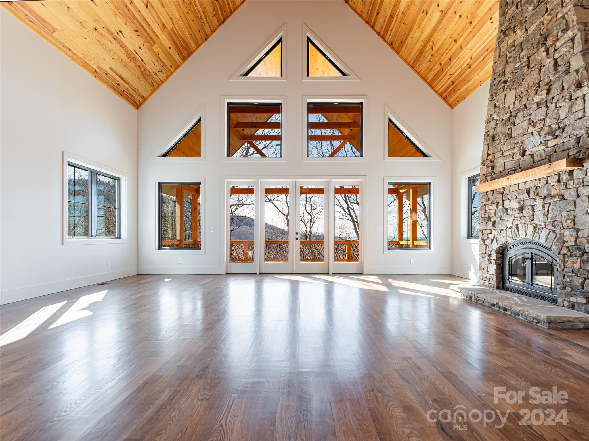 New custom quality construction on 8.2 acres in a gated community 15 minutes from downtown Asheville. Rarely does the combination of long range western views from a private location get offered for sale in the Asheville region. Interior features include an elevator, vaulted ceilings, exposed beams with tongue and groove ceilings, two story stone fireplace, The main level has a gourmet kitchen overlooking the great room and the covered porch that faces towards the sunset with the master bedroom and bath and an additional half bathroom. The upper floor has one bedroom and a bathroom with a gorgeous living area/game room that also has the long range views to the west. The lower level has two more rooms for guests, a laundry room, and bathroom with an all purpose room that makes a great transition from the garage to living area. The landscaping is extensive with beautiful stone retaining walls and walkways. This home is perfect for both year round living and a second home retreat.
