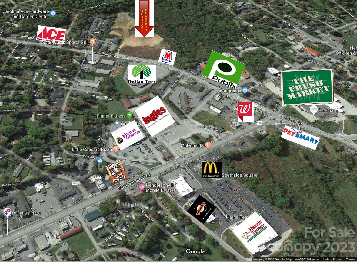 Pulliam Properties Listing: Nice mostly level 8.8 acre commercial site on the south of downtown Hendersonville. Located next to the new Publix and Marathon C-store. Approximately 440' of Greenville Hwy road frontage. Property has flood plain and floodway. Buyer to confirm flood plain area. This includes 3 parcels: #2082, #4302 & #2474.