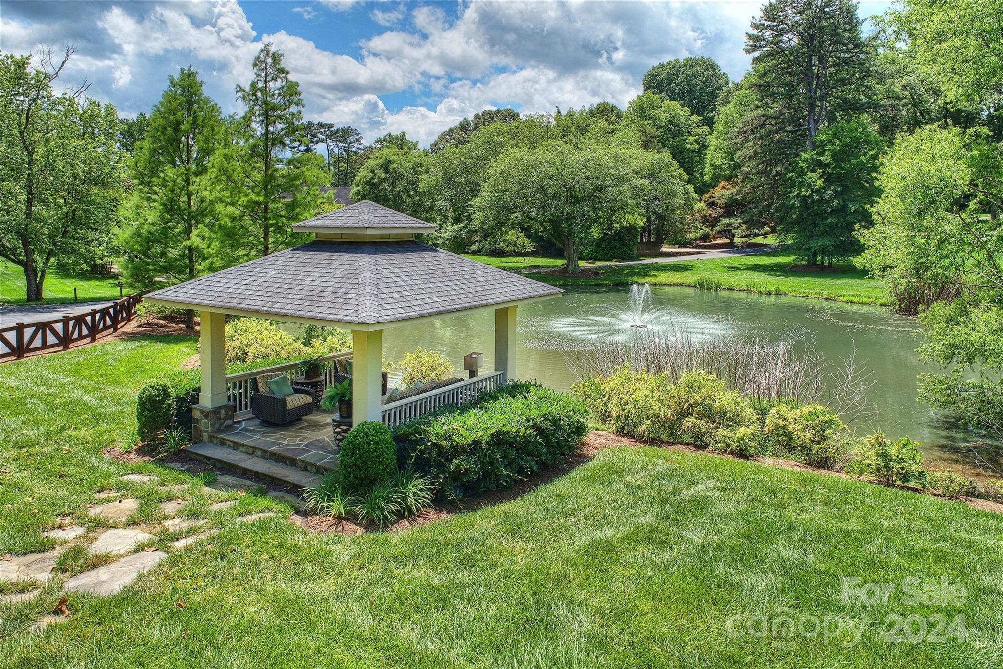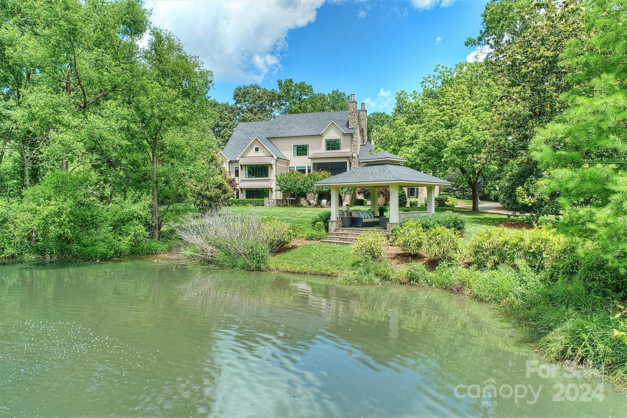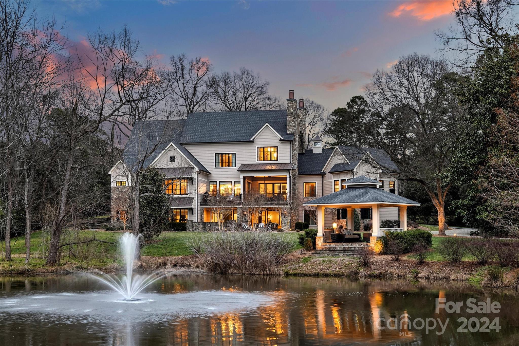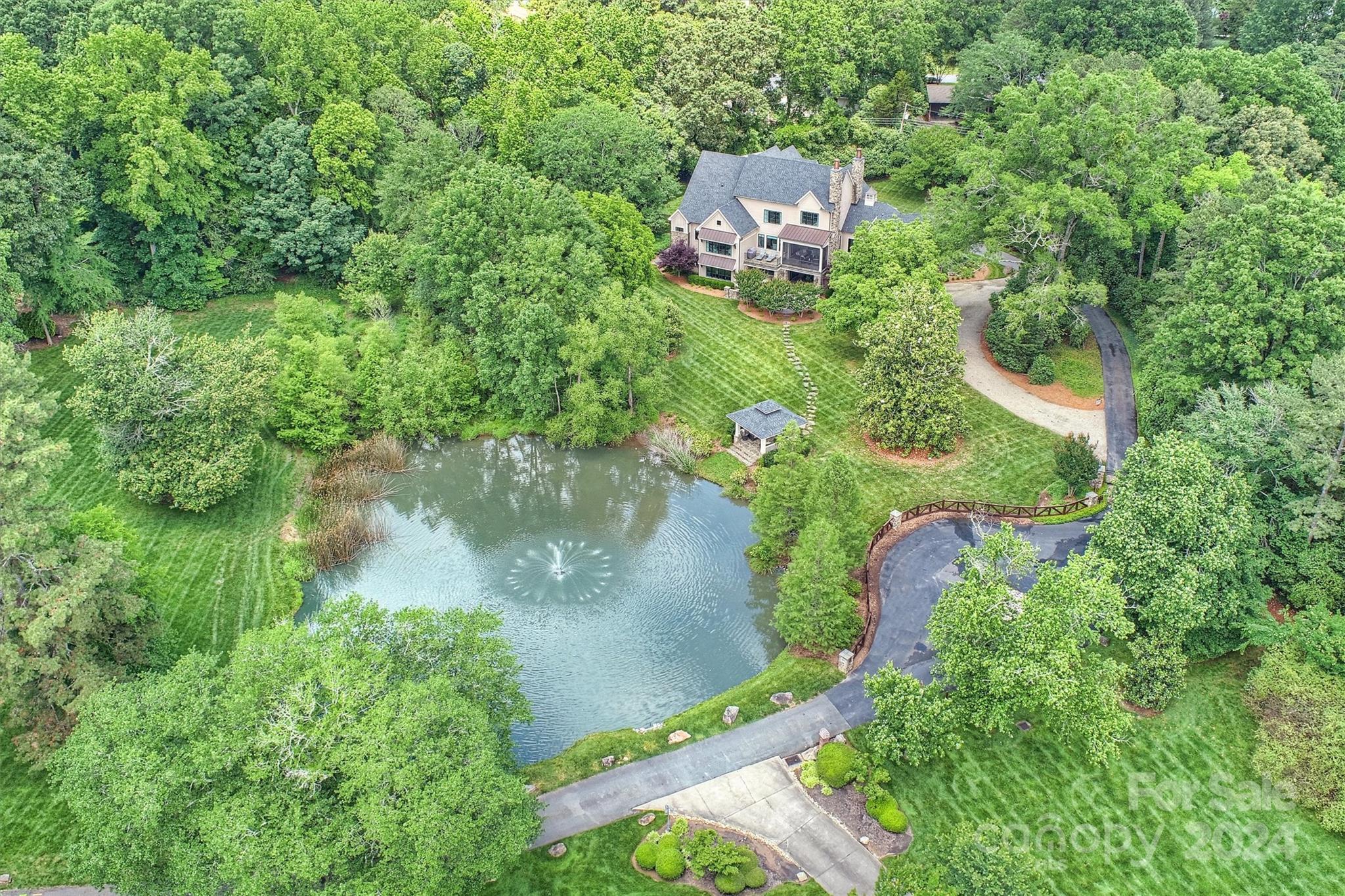 Experience a lifestyle of unparalleled luxury & tranquility in this masterpiece built by Grainda Builders with gated entry nestled on a 2.4-acre lot overlooking a picturesque pond 4 miles from South Park, 2 miles to Strawberry Hill Shopping Center & within walking distance to Providence Day School. Thoughtfully designed around utilizing the natural setting w/ the convenience of modern technology: Lutron lighting & shades, RTI touch panels: security, audio, shades & intercom, & 2 EV chargers. Retreat to the private cinema: 140” screen, 8 motorized seats, Sony 4K projector, Kaleidescape, madVR. Chef's Kitchen features a 10 ft island, Wolf 6-burner stove, Scullery & Wine Bar. Exceptional gym equipped w/ top-of-the-line exercise machines (included). Upstairs: 4 BRs, Loft & Bonus/Nanny Suite. Phenomenal lower entertaining space. Backyard oasis: covered outdoor dining, 8-person hot tub, screen porch w/ fireplace, firepit, gazebo, & pond. Pool Rendering in attachments; pool is not included.