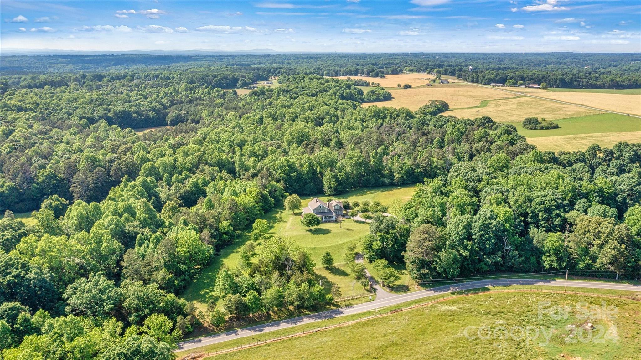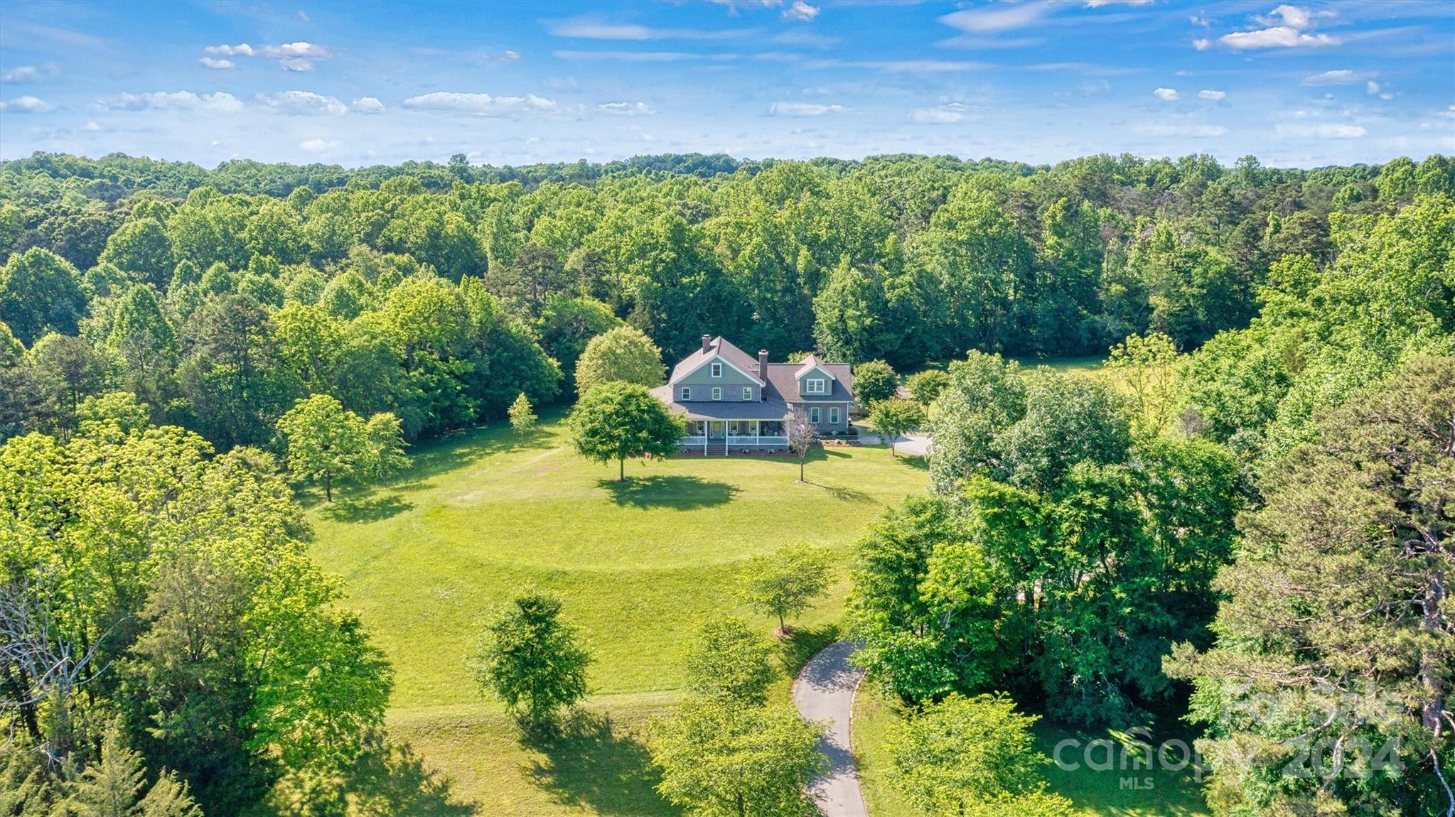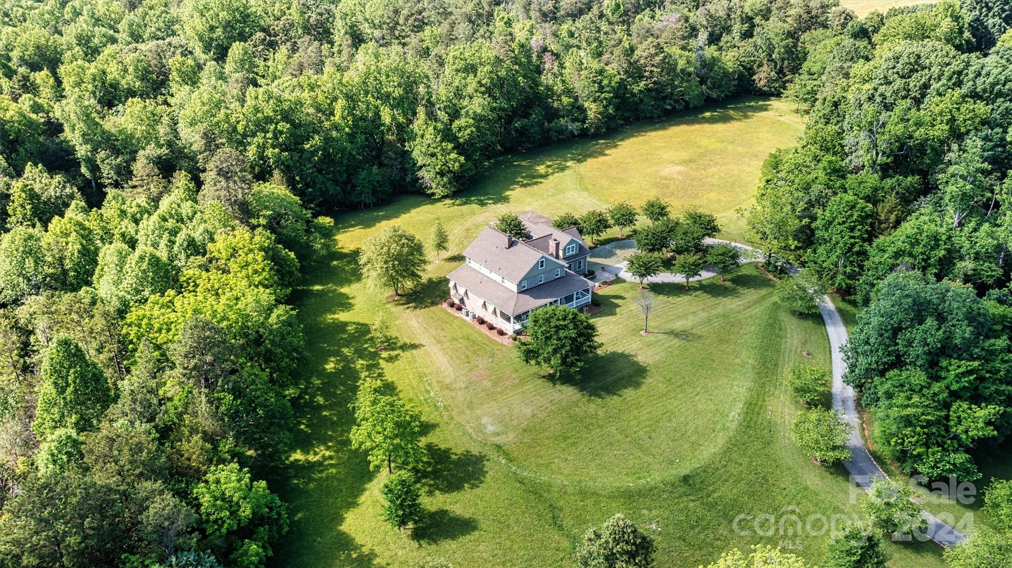 Breathtaking property! Custom built home perfectly designed with elegance and comfort. From the moment you walk in, you will notice all the extras that this home has to offer and get that warm feeling that a farmhouse brings. Nothing was spared in this home starting with the 10 ft deep wraparound porch. Beautiful 6" white oak wood floors. Real wood bead board. Country kitchen with island. 2 fireplaces. Luxurious primary suite. Separate office or library with French doors. Large screen porch. Laundry room with chute from second floor. On the second level you will find 3 comfortable bedrooms, 2 full baths, a den with wet bar and a bonus room. Walk right up to the 3rd level where you will find an attic that has been insulated and plumbed making it easy to finish this to livable space. This home sits in the middle of 11.6 acres and borders a creek. Gated entrance and winding driveway. Room for garden, outdoor toys and all your animals. Country living at its best!