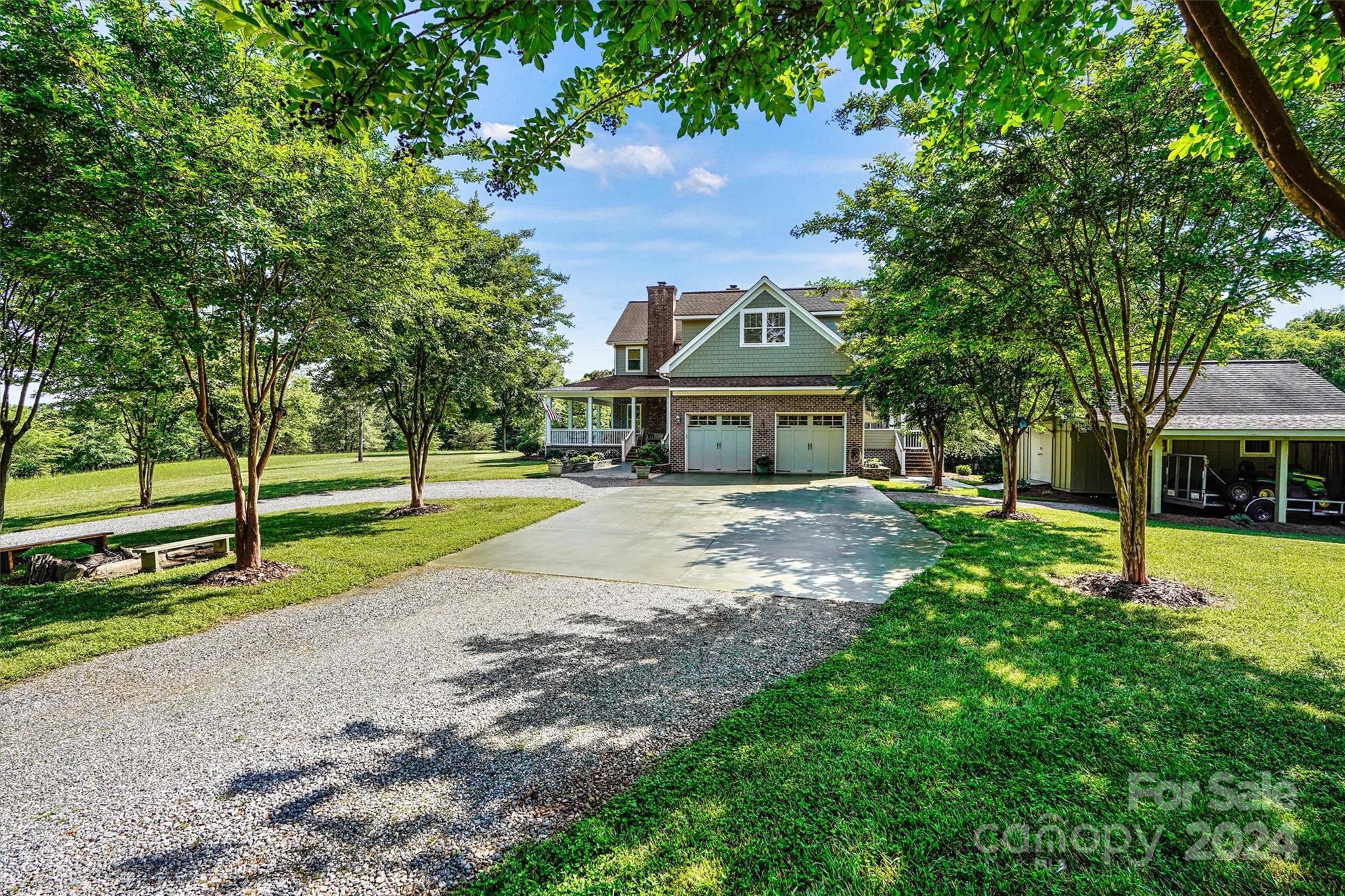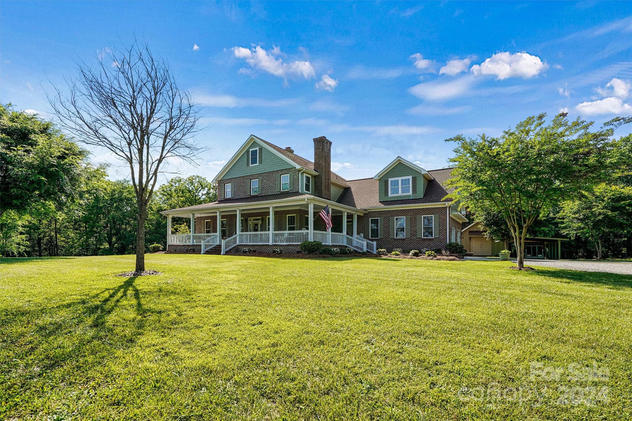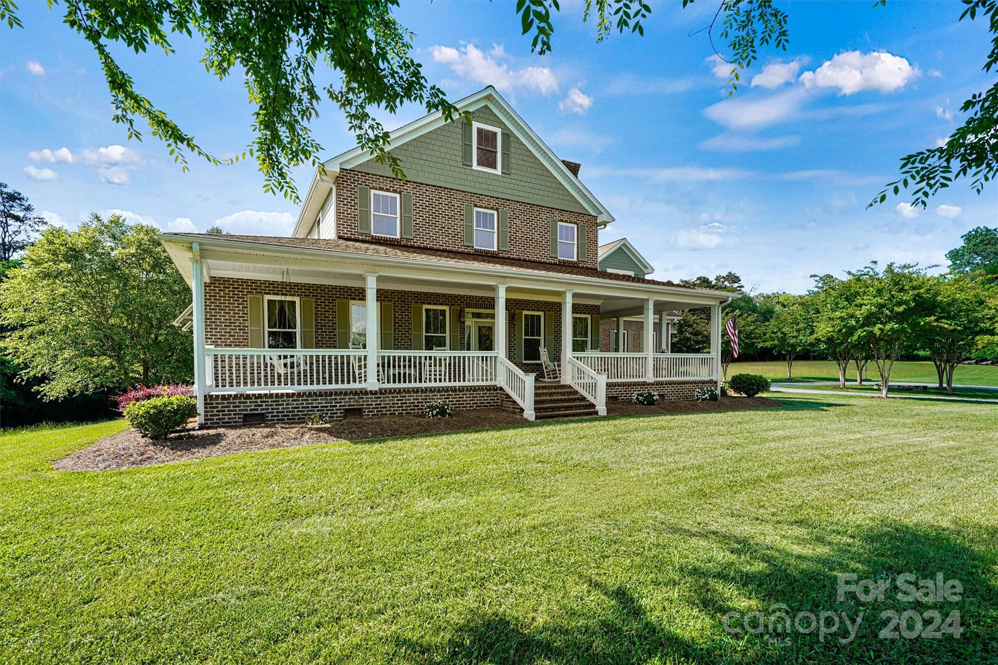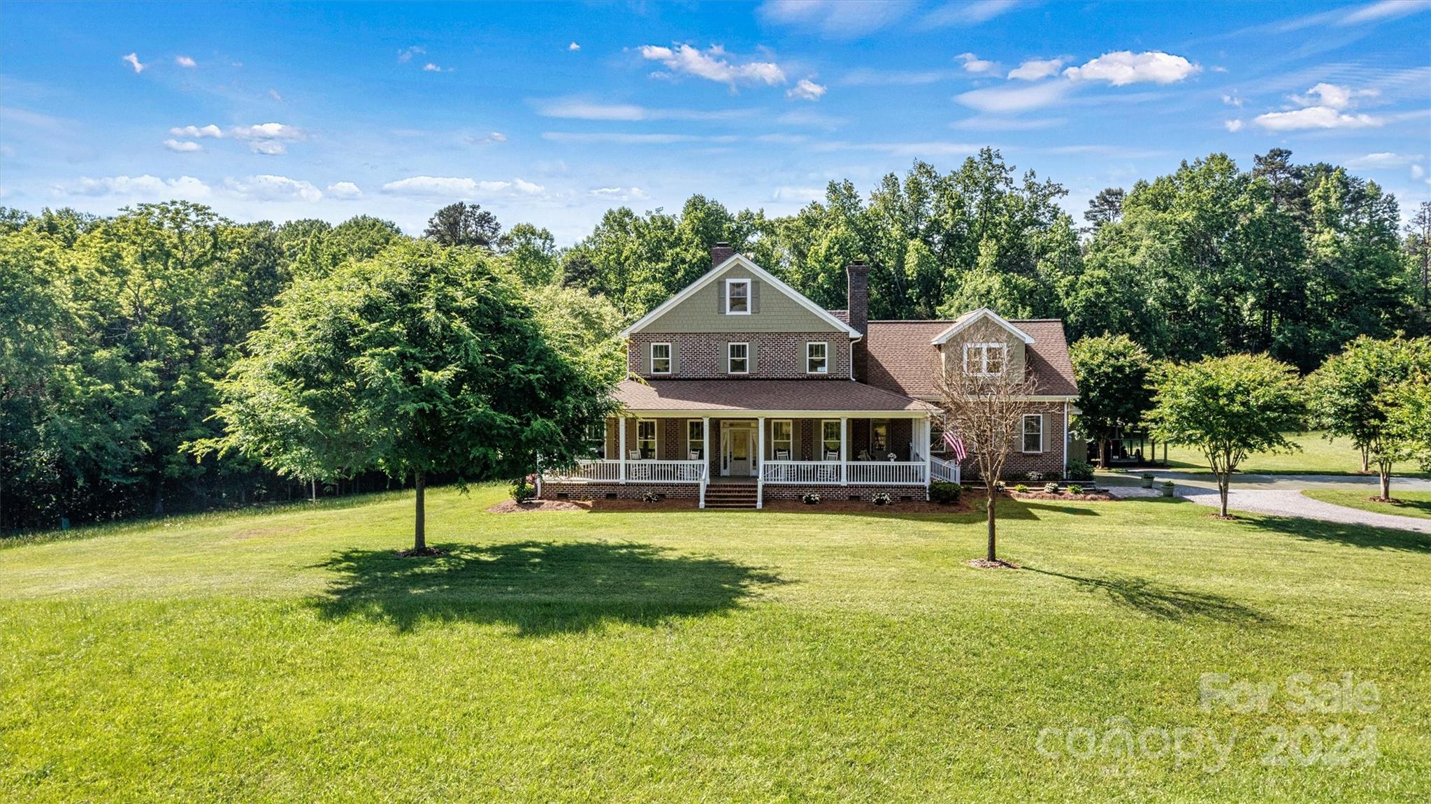 Breathtaking property! Custom built home perfectly designed with elegance and comfort. From the moment you walk in, you will notice all the extras that this home has to offer and get that warm feeling that a farmhouse brings. Nothing was spared in this home starting with the 10 ft deep wraparound porch. Beautiful 6" white oak wood floors. Real wood bead board. Country kitchen with island. 2 fireplaces. Luxurious primary suite. Separate office or library with French doors. Large screen porch. Laundry room with chute from second floor. On the second level you will find 3 comfortable bedrooms, 2 full baths, a den with wet bar and a bonus room. Walk right up to the 3rd level where you will find an attic that has been insulated and plumbed making it easy to finish this to livable space. This home sits in the middle of 11.6 acres and borders a creek. Gated entrance and winding driveway. Room for garden, outdoor toys and all your animals. Country living at its best!