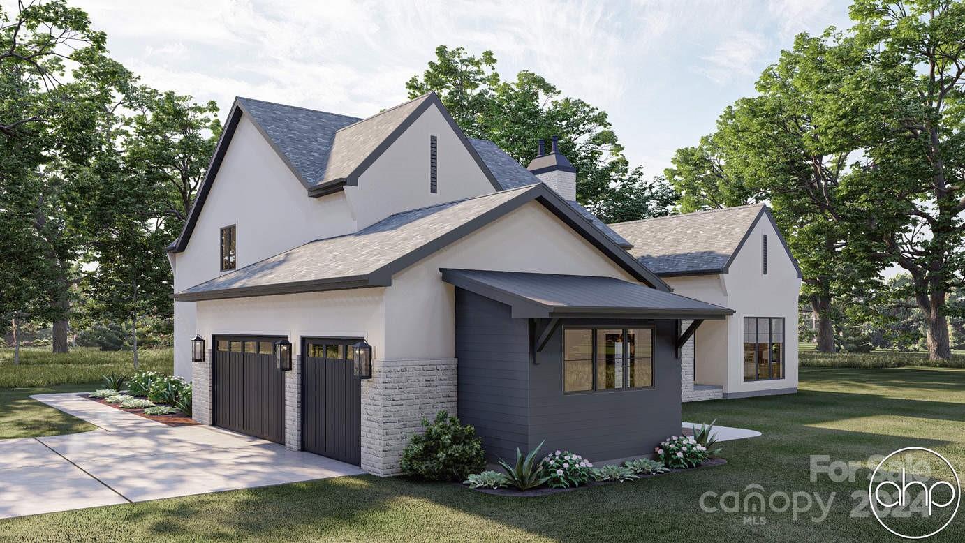 This stunning Modern Cottage style house plan showcases excellent curb appeal with its exterior that combines stucco, brick, and metal accents.Immediately inside the front doors, you'll find yourself in the 2 story entry way. Dual sets of French doors also lead into the large great room. Great room lies under 2-story ceiling and is warmed by fireplace. The great room opens up to rear covered porch through large quad sliding glass door. The dining room and kitchen are wide open to the home's floor plan. The kitchen includes tons of counter space, walk-in pantry, large island, and an oversized refrigerator. On the left side of the home you'll find the amazing primary suite. Primary BR under a soaring 15' trayed ceiling and has its own door to rear covered patio. a cozy library with built-in bookshelves. Second floor features 3 additional bedrooms and loft. Each bedroom has its own walk-in closet. Back on the main level, the home features large side load 3-car garage with potting shed.