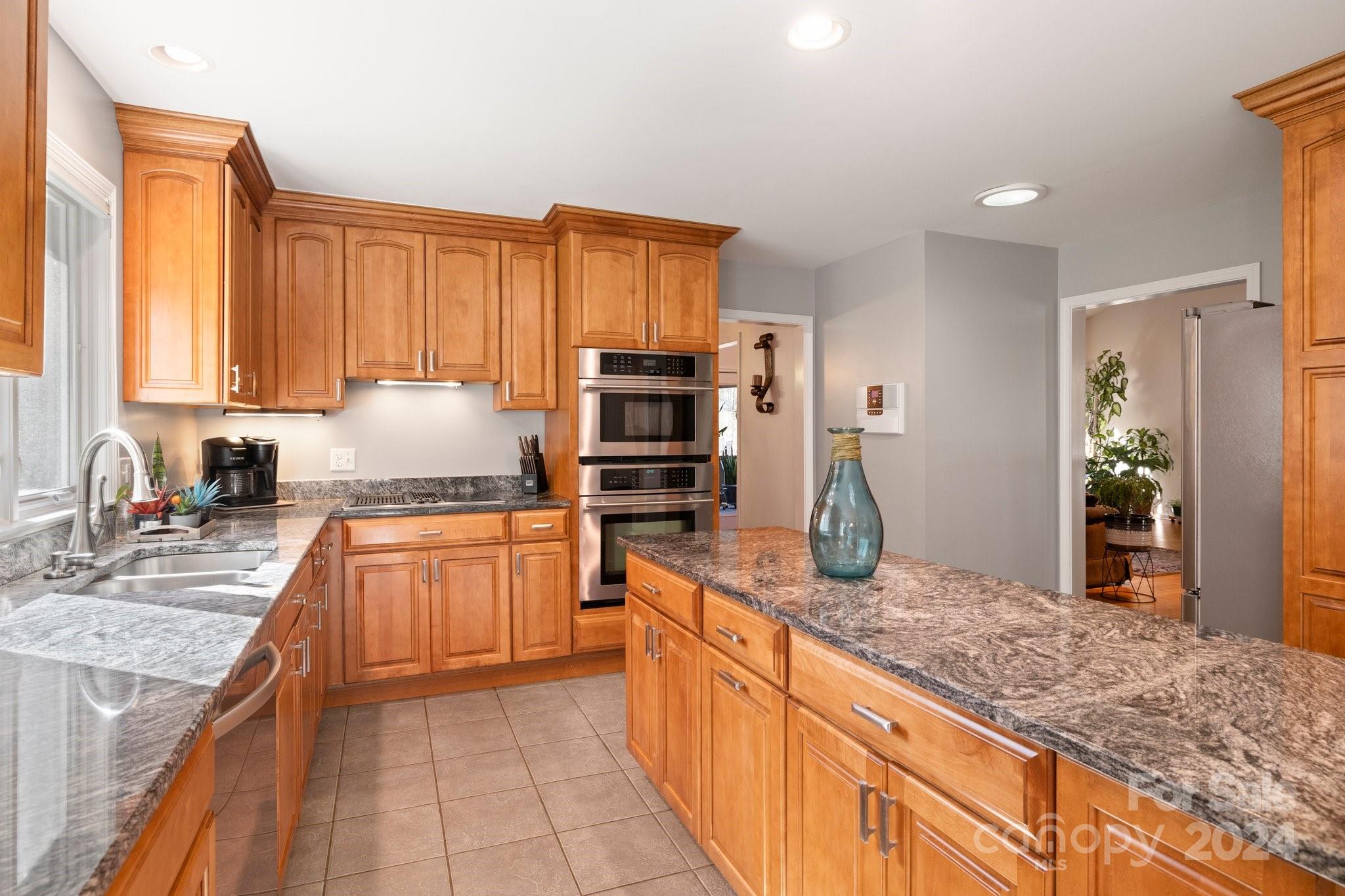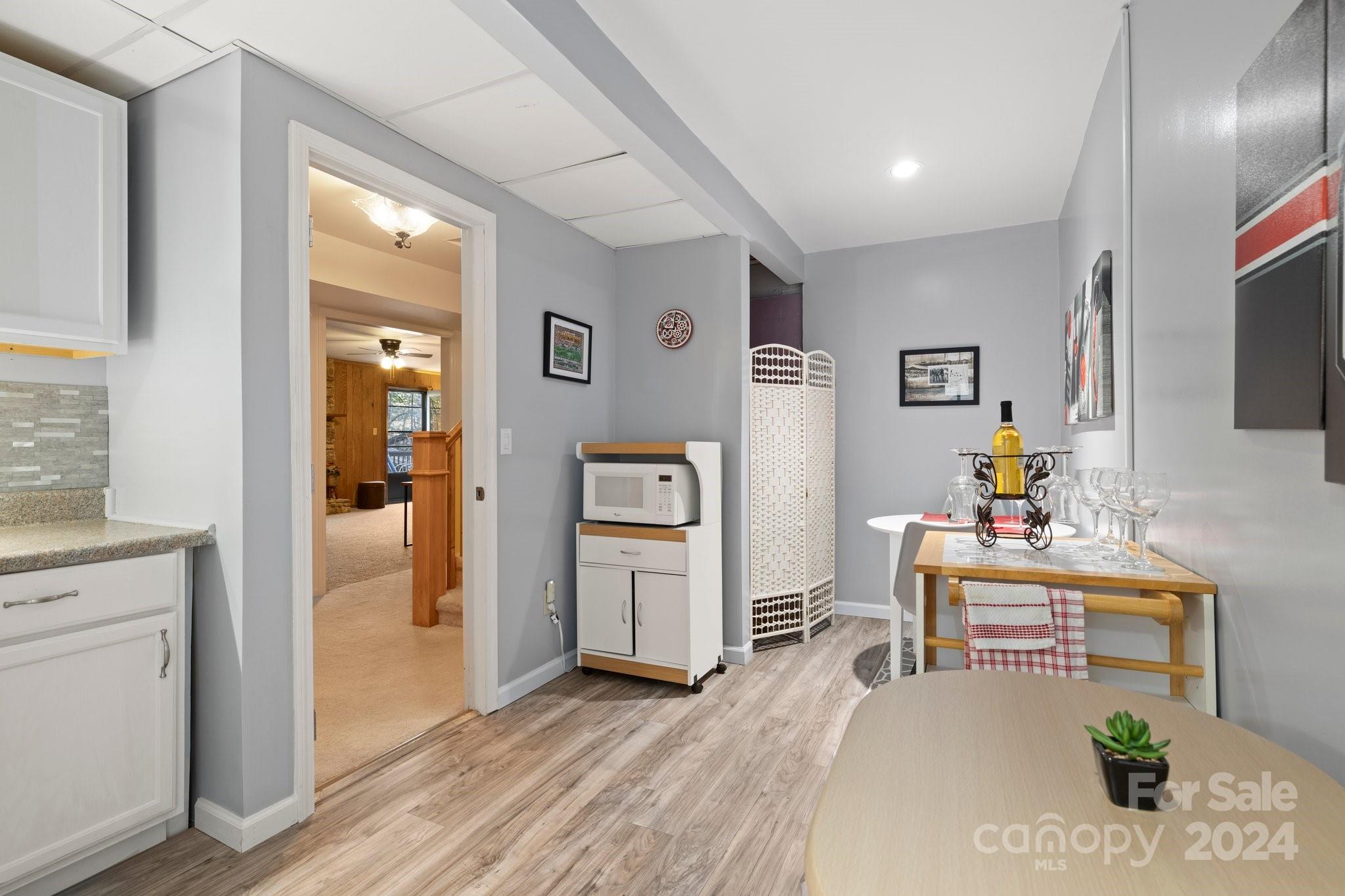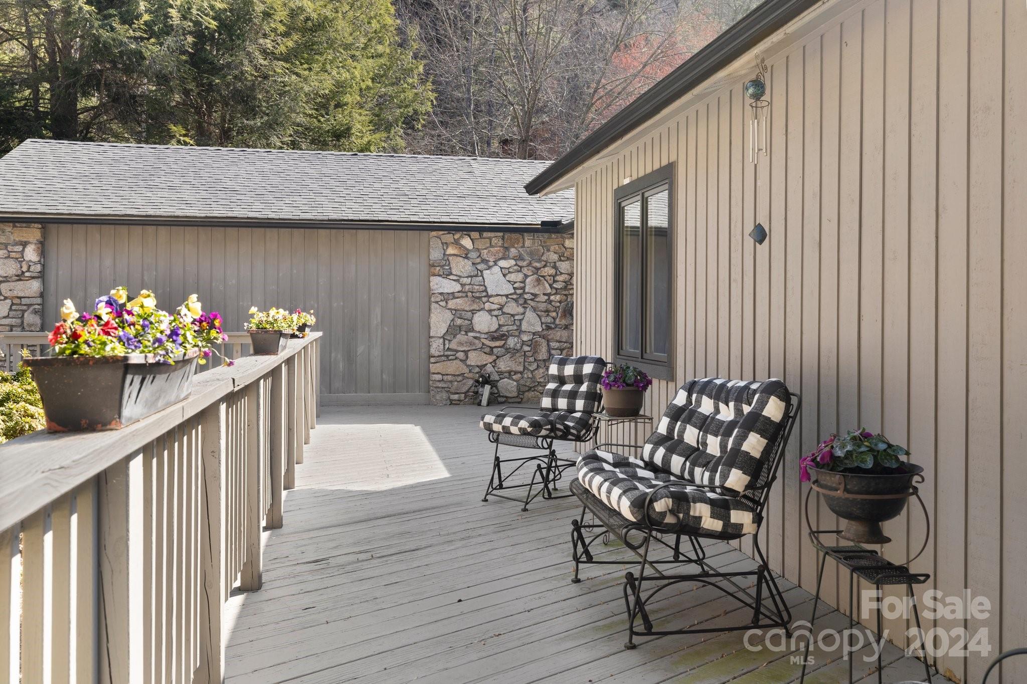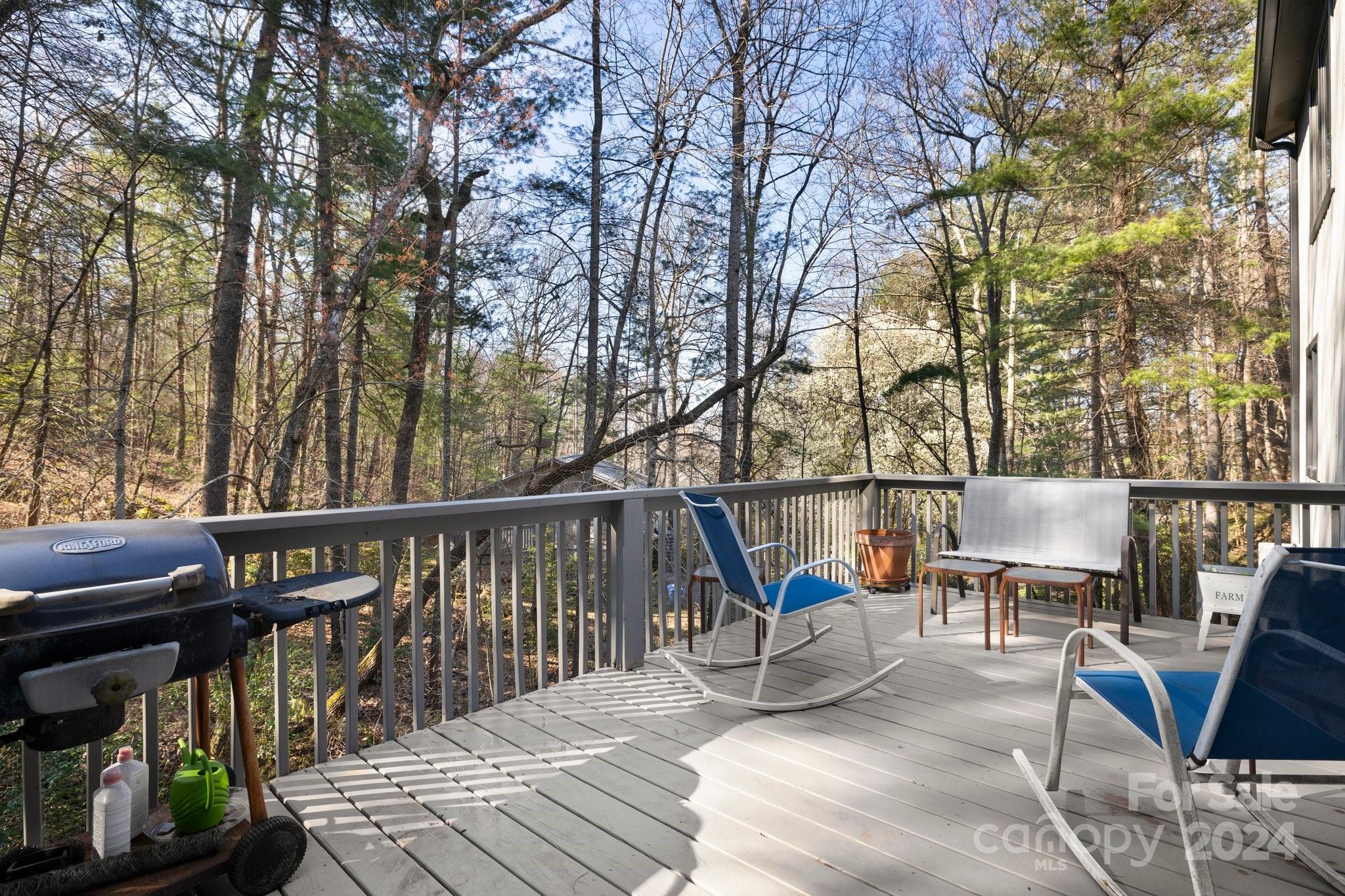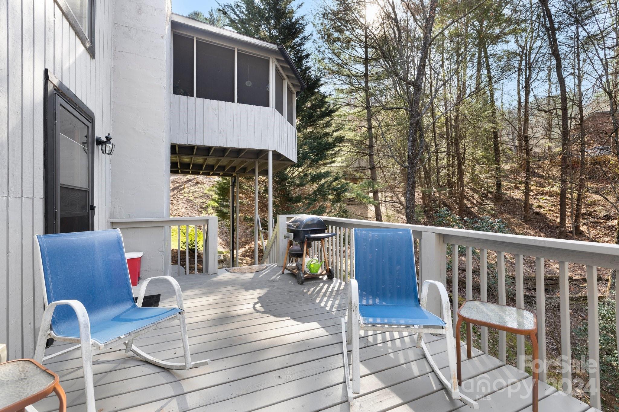 Meticulously maintained with smart updates and renovations, this spacious home is nestled on a lovely wooded lot, creating a private and peaceful setting. The zero-entry main level offers true one-level living, while the lower level with private entrance, second kitchen and spacious family room with fireplace is the ideal space for guests or multi-generational living. Wonderful updated kitchen with tons of cabinets and counters will make the home chef happy! Grand living room with fireplace can accommodate a large crowd of family and friends for entertaining. Wonderful outdoor living spaces include a sunny front and back porches as well as an enclosed porch for rainy days. In the coveted South Asheville neighborhood of Ballantree, with easy access to the Blue Ridge Parkway, Biltmore Park shopping and dining, schools, Biltmore Estate and Village and Downtown Asheville. No damage from Helene!