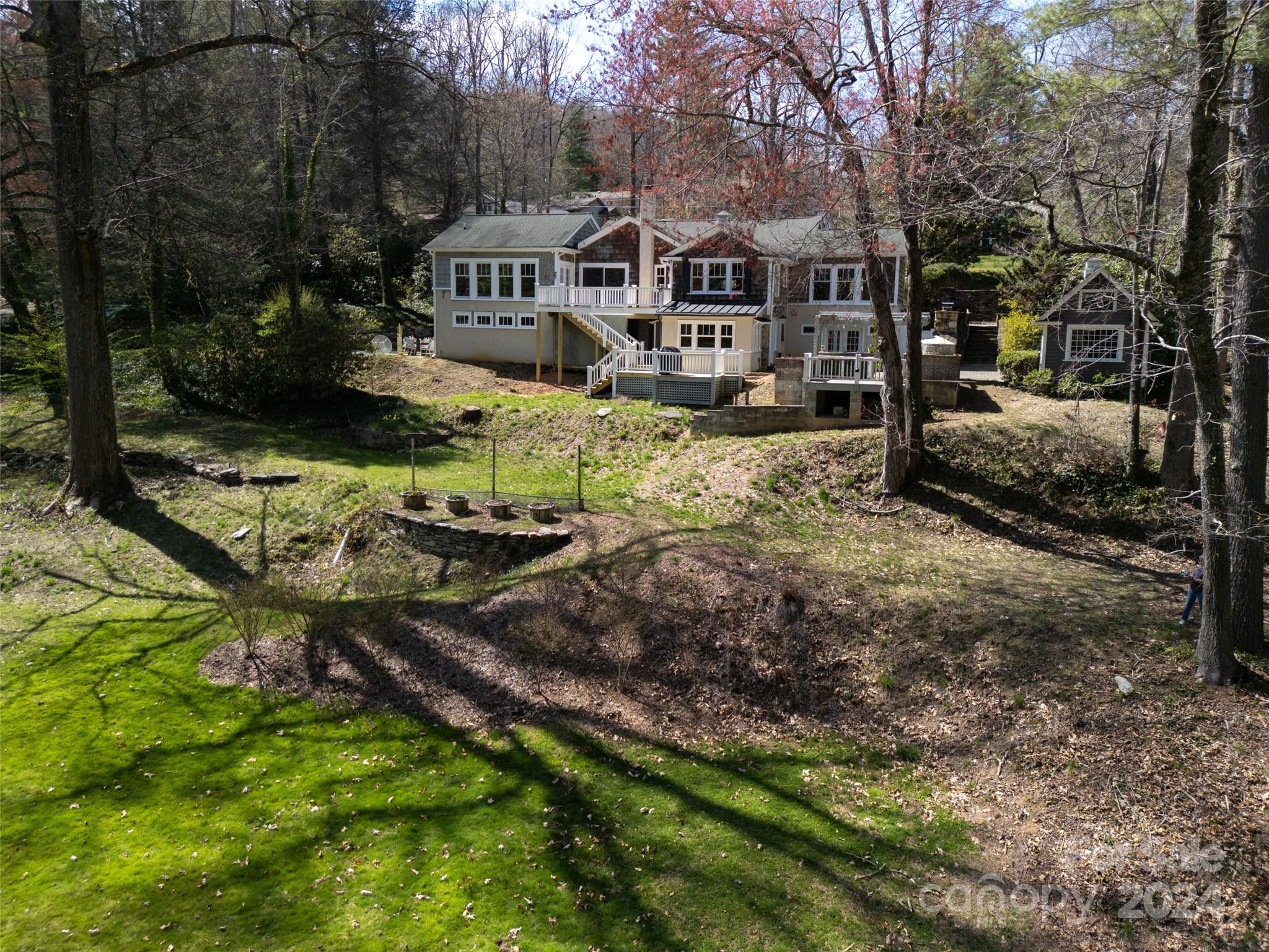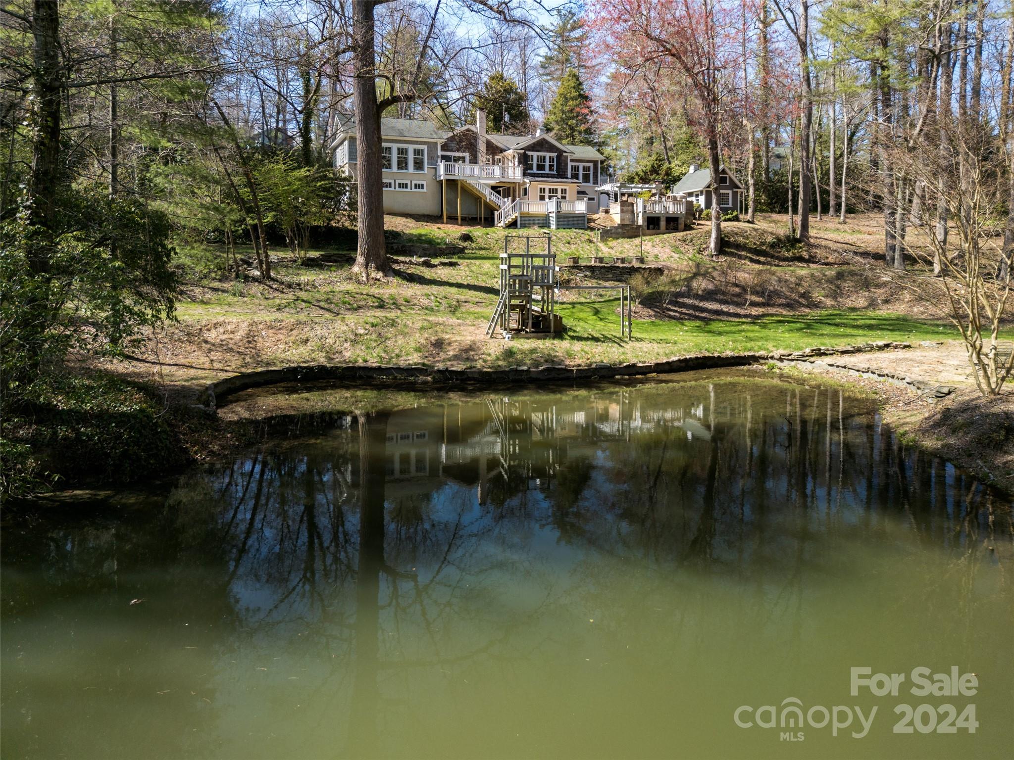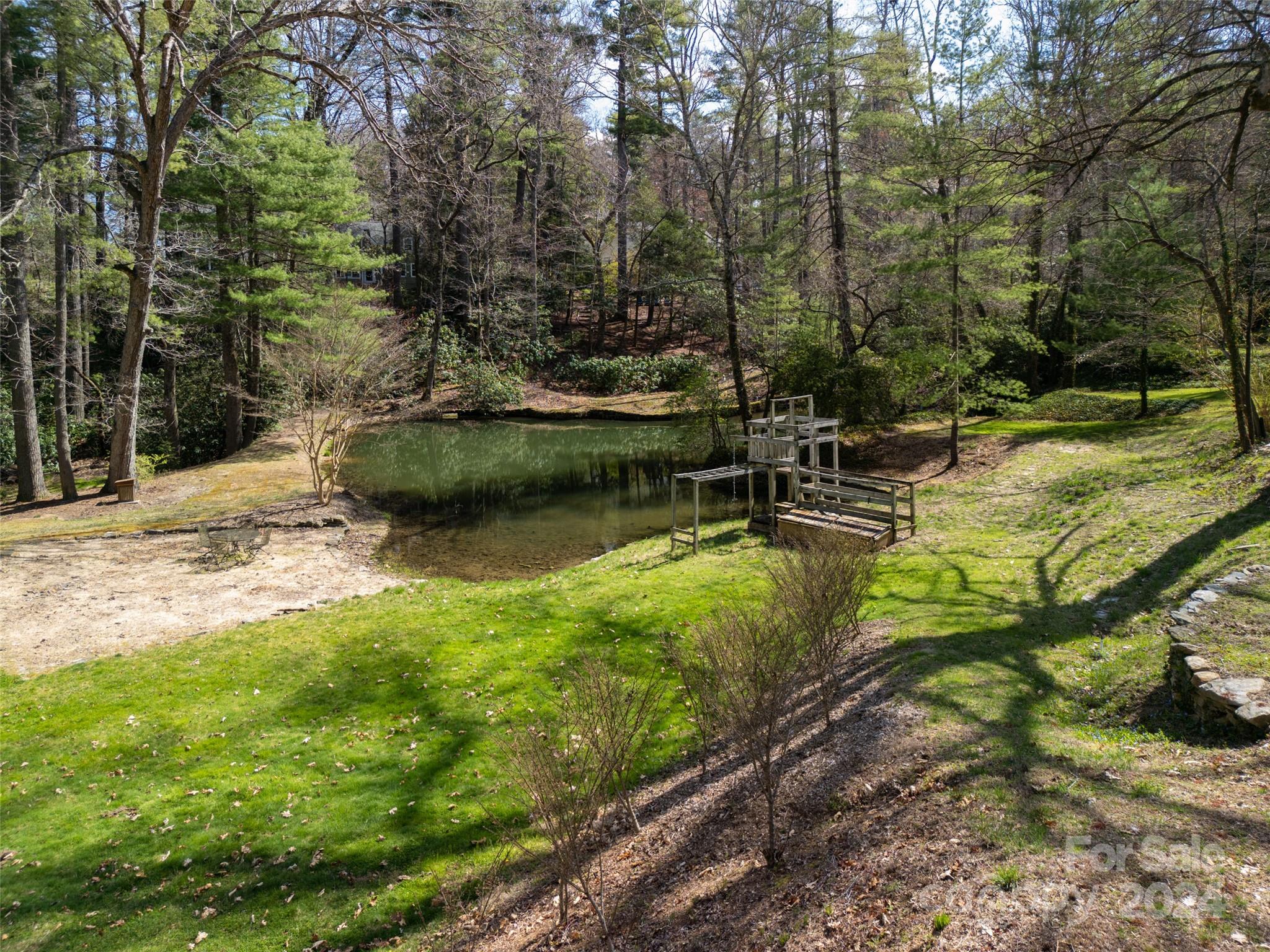 With its prime location and unparalleled surroundings, this property presents a rare opportunity to own a slice of mountain paradise. This quintessential Laurel Park home is on 3.77 pristine and mostly level acres complete with its own spring-fed pond. Light filled and spacious, this 4 bedroom, 3 bathroom home has everything you need for day-to-day living on the main level. The lower level walks out to a beautiful stone fireplace, brand new decking, and spacious back patio with a built-in smoker and pizza oven awaiting your finishing touches. The unfinished basement area has 1400 square feet ideal for creating the workshop of your dreams.