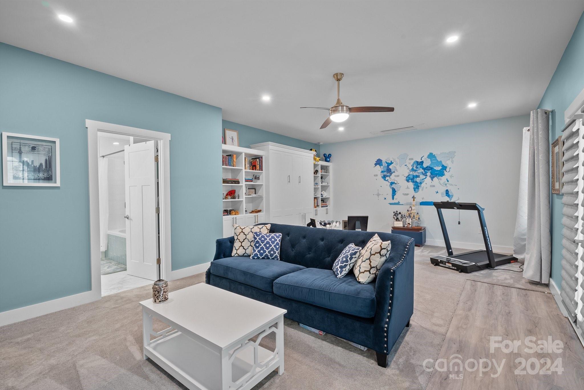 Custom-built home with all the BELLS & WHISTLES nestled on a serene Cul-de-sac with wooded backdrop. Built-in shelves with Murphy bed in Den. Upgraded bathrooms with custom accessories. Chef's kitchen boasts an induction stove, island w/bath seating, & ample storage including huge pantry. Theater equipped with a 135” Acoustically Transparent Screen, Epson Projector, and Dolby Atmos/DTS-X 7.2.4 speaker system, with additional wiring for future upgrades. Whole house network by Ubiquiti, with 2 High Speed Access Points & 24 Port Switch. Home security includes 2 Night Vision Capable Cameras and Ring Alarm System & Doorbell. Custom SW paint, upgraded lighting, & darkening window shades throughout. Home includes generator, laundry room upgrades, WiFi-enabled ceiling fan, latch gate with pet door, gas stone fireplace, large decks, instant hot water heater with recirculating lines, concrete block fire pit, gas line for grill, in-floor outlets, hot tub outlet on deck, & whole home dehumidifier.