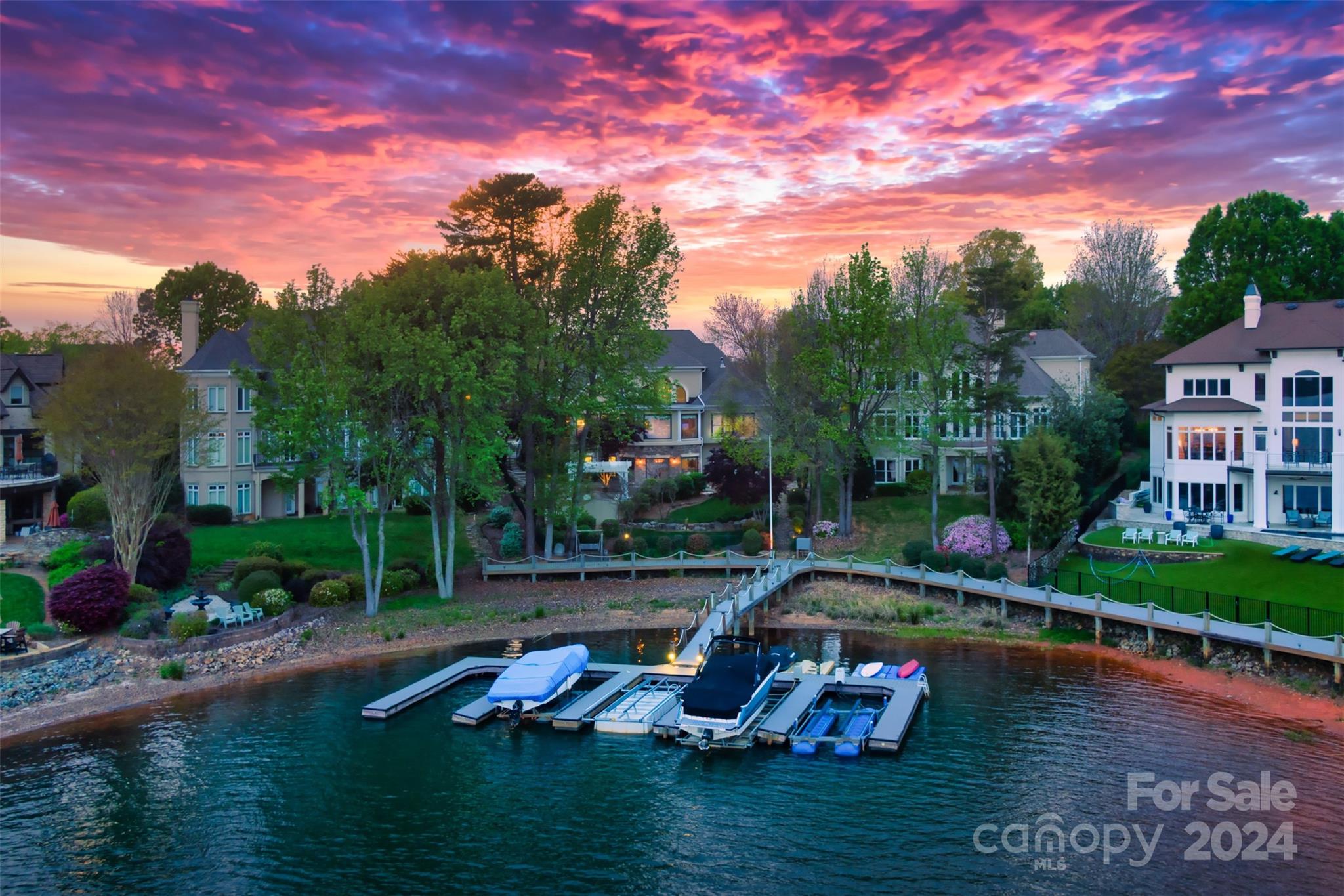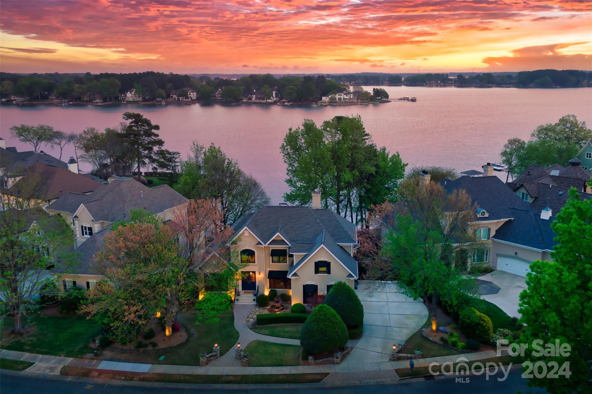 Preliminary Pool approval by the PPOA. Stunning waterfront home nestled in The Peninsula, offers a luxurious retreat across three levels. Primary suite on main for convenience and accessibility. A sunroom is perfect for natural light and scenic views. Updated bathrooms, refinished hardwood floors and fresh paint throughout. 3 fireplaces providing ambiance to the living spaces. Lake level offers a fully equipped kitchen and bar, ideal for entertaining and enjoying leisurely evenings by the water. An updated second primary suite ensuring comfort & privacy for guests. Access to pergola where you can relax and take in the breathtaking lake views. Immaculate landscaping complementing the natural beauty of the waterfront setting. Deeded boat slip to access water activities & recreation. All new windows and doors for energy efficiency. 3 new furnaces, new water heater, new central vacuum unit, new interior door hardware, new exterior lights. Newer roof and AC in 2017/2018.