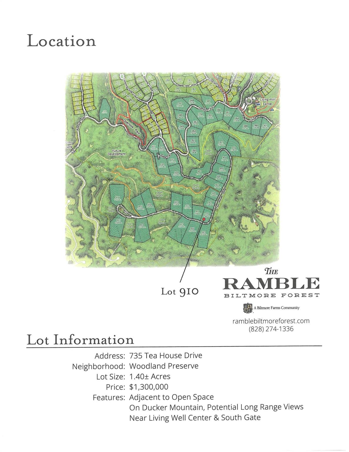 Perched along Ducker Mountain's ridge, the long-awaited Tea House homesites from The Ramble are now being released. With an ideal balance of nature, community, and location, these special properties offer quiet luxury near the heart of Asheville. With possible views of Little Pisgah, Couch and Rich Mountain, and/or Downtown Asheville, Sentinel stands watch over the moving topography of Western North Carolina. Its elevation from Tea House Drive, along with its gentle slope to the rear, invites you to build your dream home on an inspiring backdrop of forest and skies. Property taxed TBD.