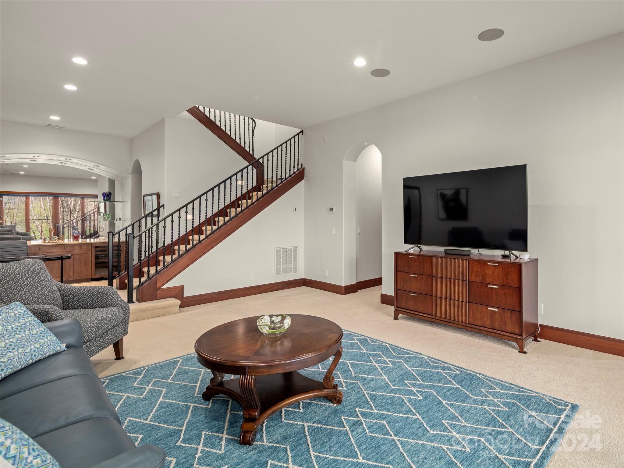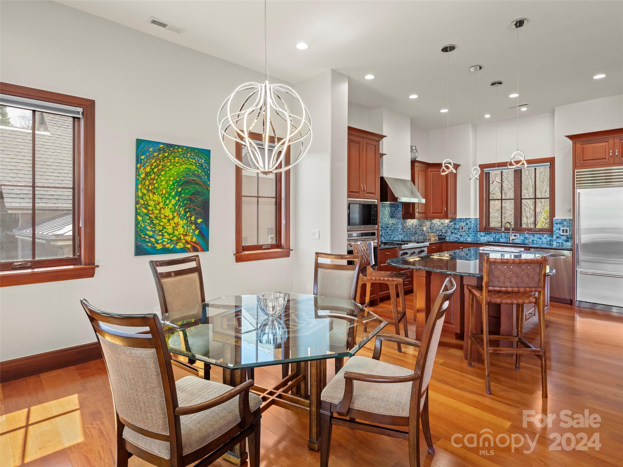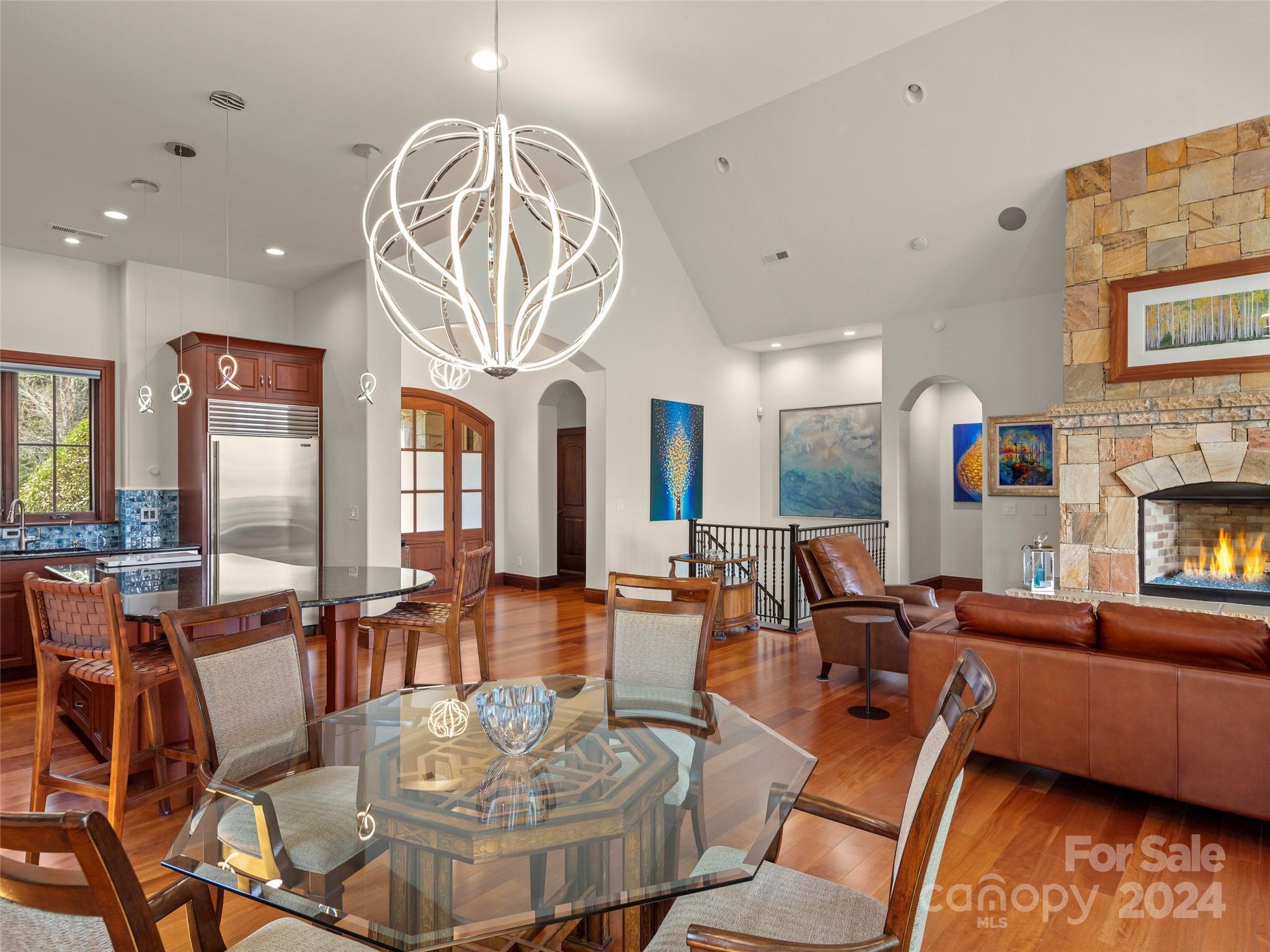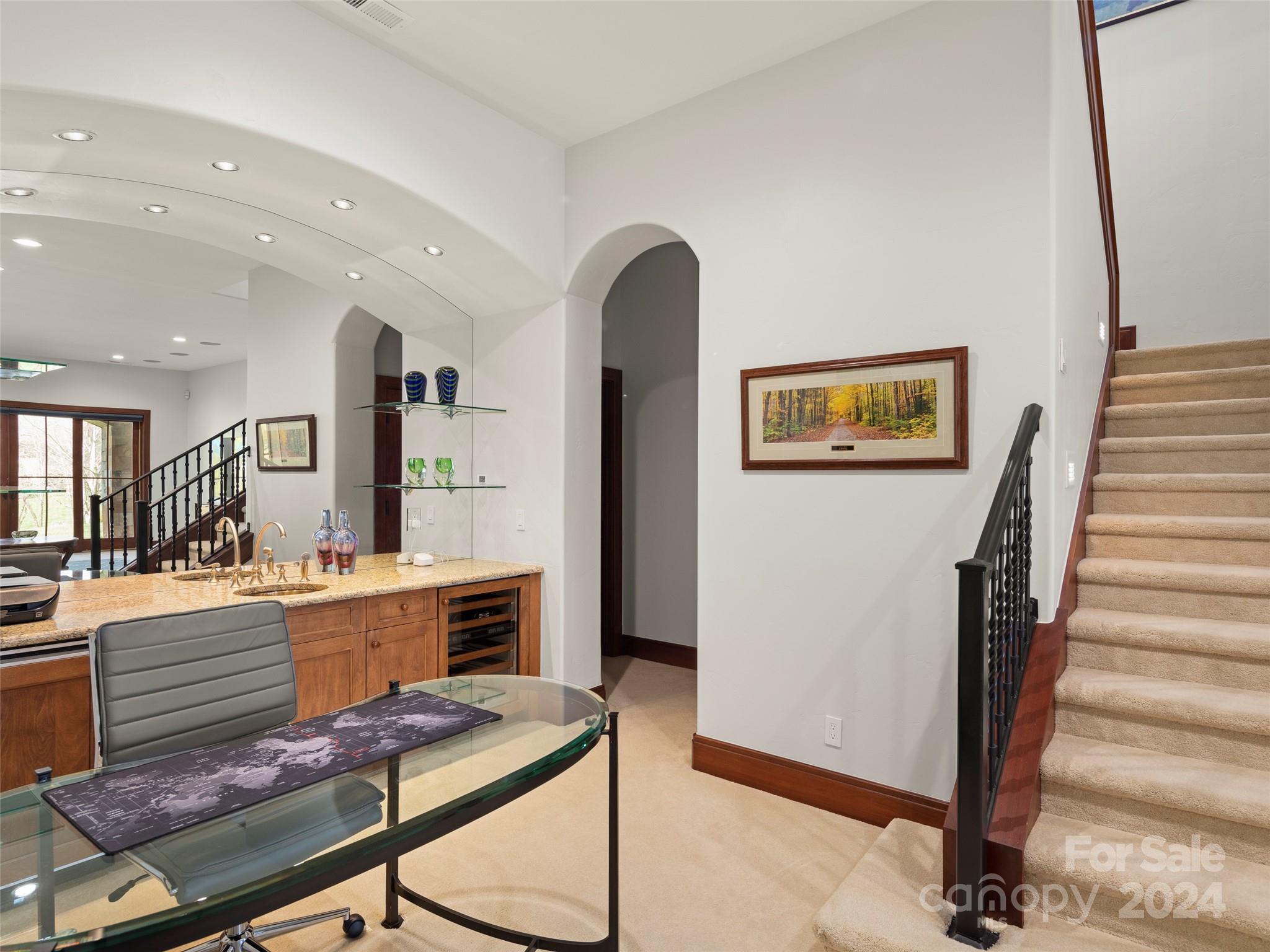 Nestled in The Meadow in The Cliffs at Walnut Cove, this landscaped community features a mix of townhomes and single-family residences surrounded by beautiful water features, lush vegetation and accent lighting. Unique among its peers, this home presents a blend of luxury and tranquility where every room is a showcase! From the main living area with retractable doors for indoor/outdoor living, to the all-season sunroom offering captivating views of the picturesque surroundings. The heart of the home, the kitchen, is adorned with solid mahogany details and illuminated by modern LED lighting, centered around a beautiful, oversized island. This townhome offers gracious living designed for comfort and elegance, with high ceilings that amplify the sense of space. The lower level boasts a versatile bonus room, two beautifully appointed guest suites, and multiple outdoor living areas. Friends and family alike will be captivated by the warm and welcoming atmosphere. Membership available.