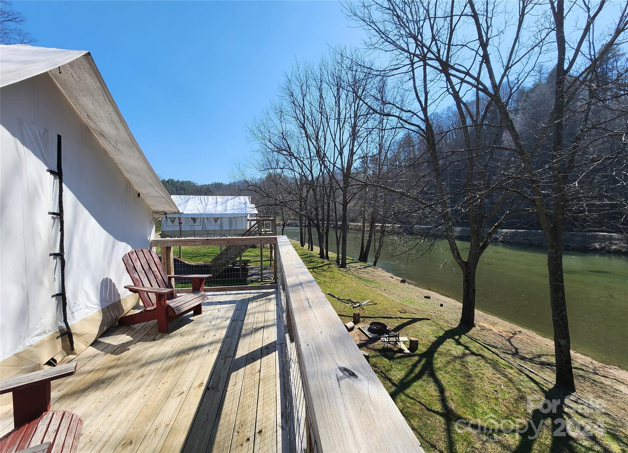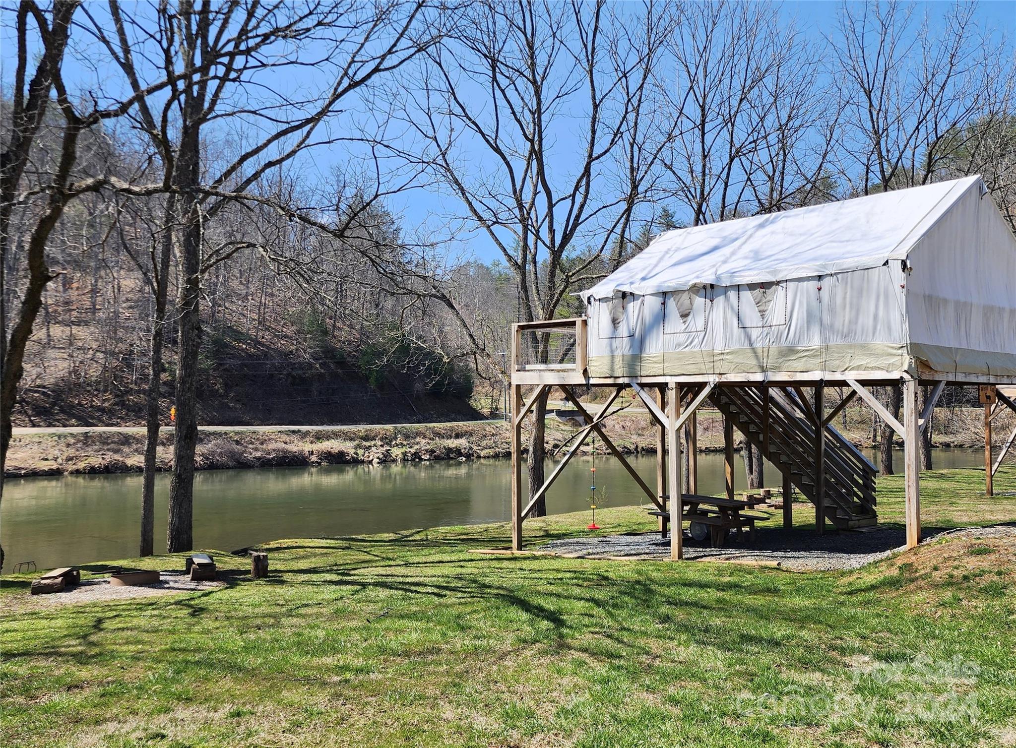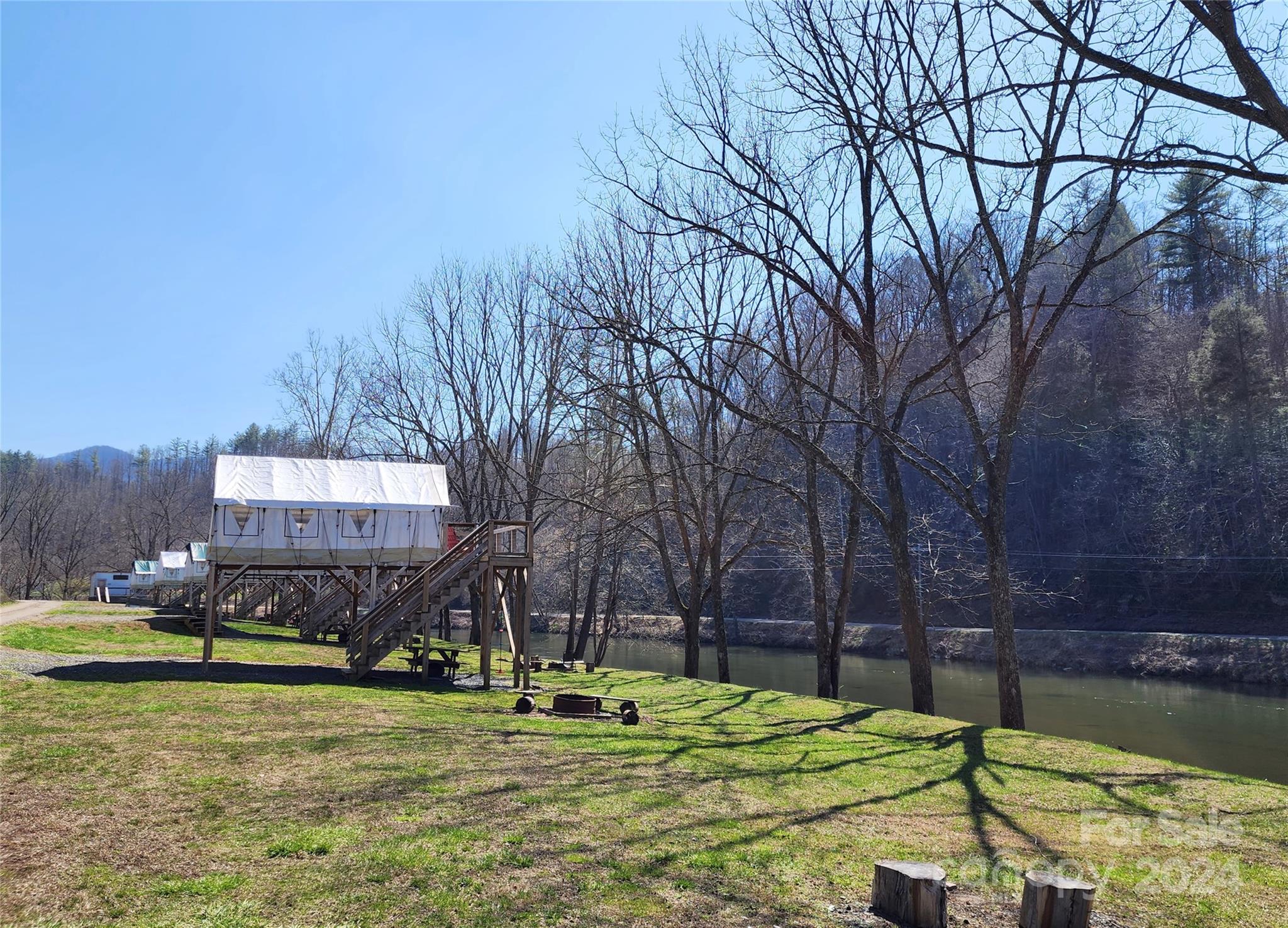 Incredible 60 acre mountain oasis, fabulous riverside glamping camp on 1,000' of the Toe River + an adorable 2/2 Cabin. Drive up to the picture perfect cabin overlooking the river camp for a beautiful view. Continue up above the cabin to an open field that is an incredible building site with gorgeous mountain views. Up the mountain towards the back of the property you will find another home site with power, water & septic in place. Follow the trail beyond that & hidden just around the bend is the most enchanting mountain holler with endless atv trails all over the property.. Get lost in the woods among lovely trees, multiple springs, creeks & ridge lines! The possibilities are absolutely endless at this property. You could expand the glamping tents, add in tiny houses or tree houses! The trails could be great for bike or atv trail riding! The River Camp is ready for you to take over operations THIS summer with 6 furnished glamping tents + a full bath house! Dreams do come true!!