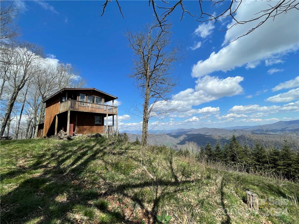 Arguably the best view anywhere in Western NC! These 50 +/- acres have a eastern slope giving way to a view spanning over 4 counties making for breathtaking sunrises. The original structure was built in the 80s as just a place to get away. The two story addition was built in 2000 and the middle connecting the two was constructed in 05-06. While the home has no power, there is a generator to power the lights and also the pump for the water system. Water is collected from a spring in a reservoir and pumped to a smaller holding tank above the home creating a gravity fed system. There can be no "drive-bys." There are two locked gates and the road up is currently ATV only. Must be accompanied by a Real Estate Agent.