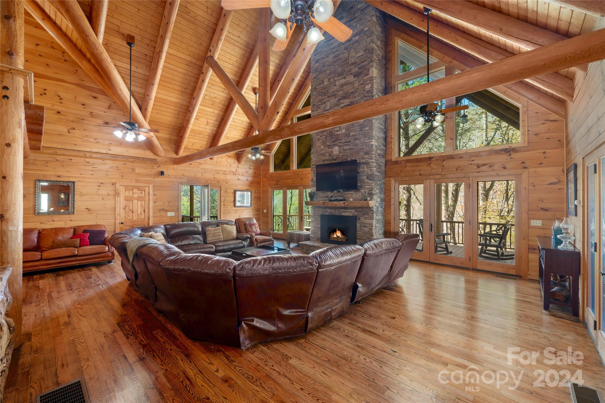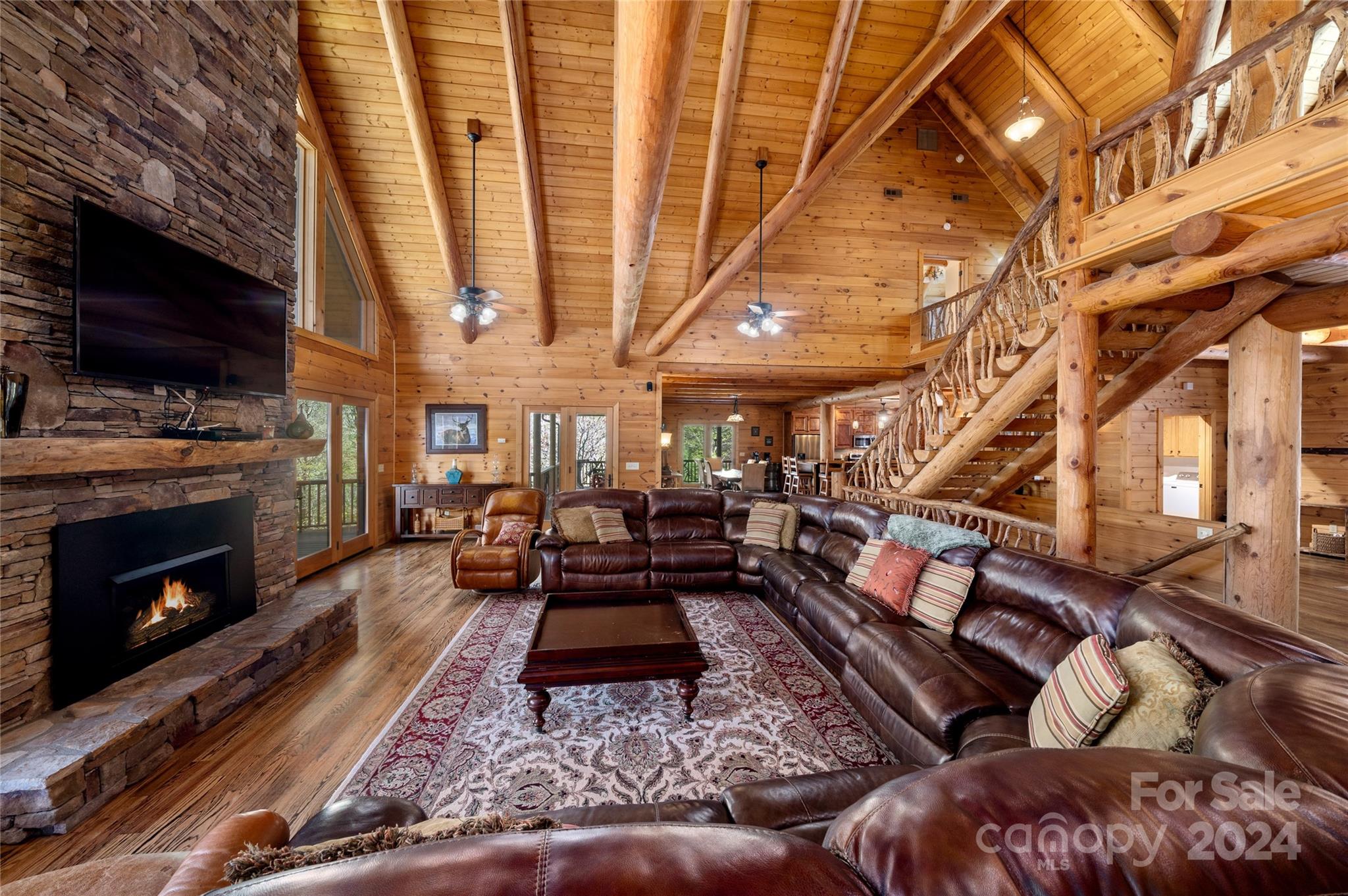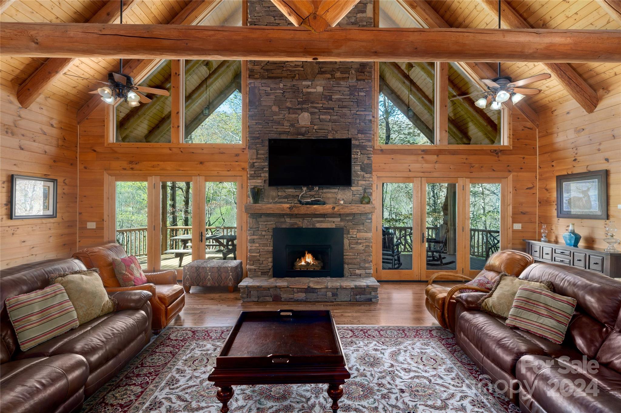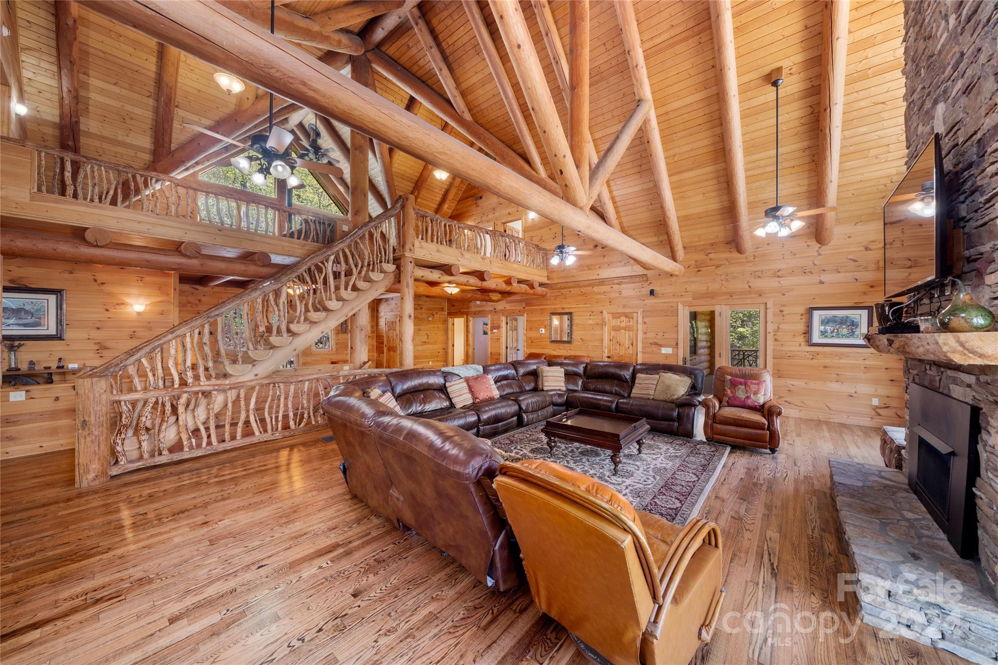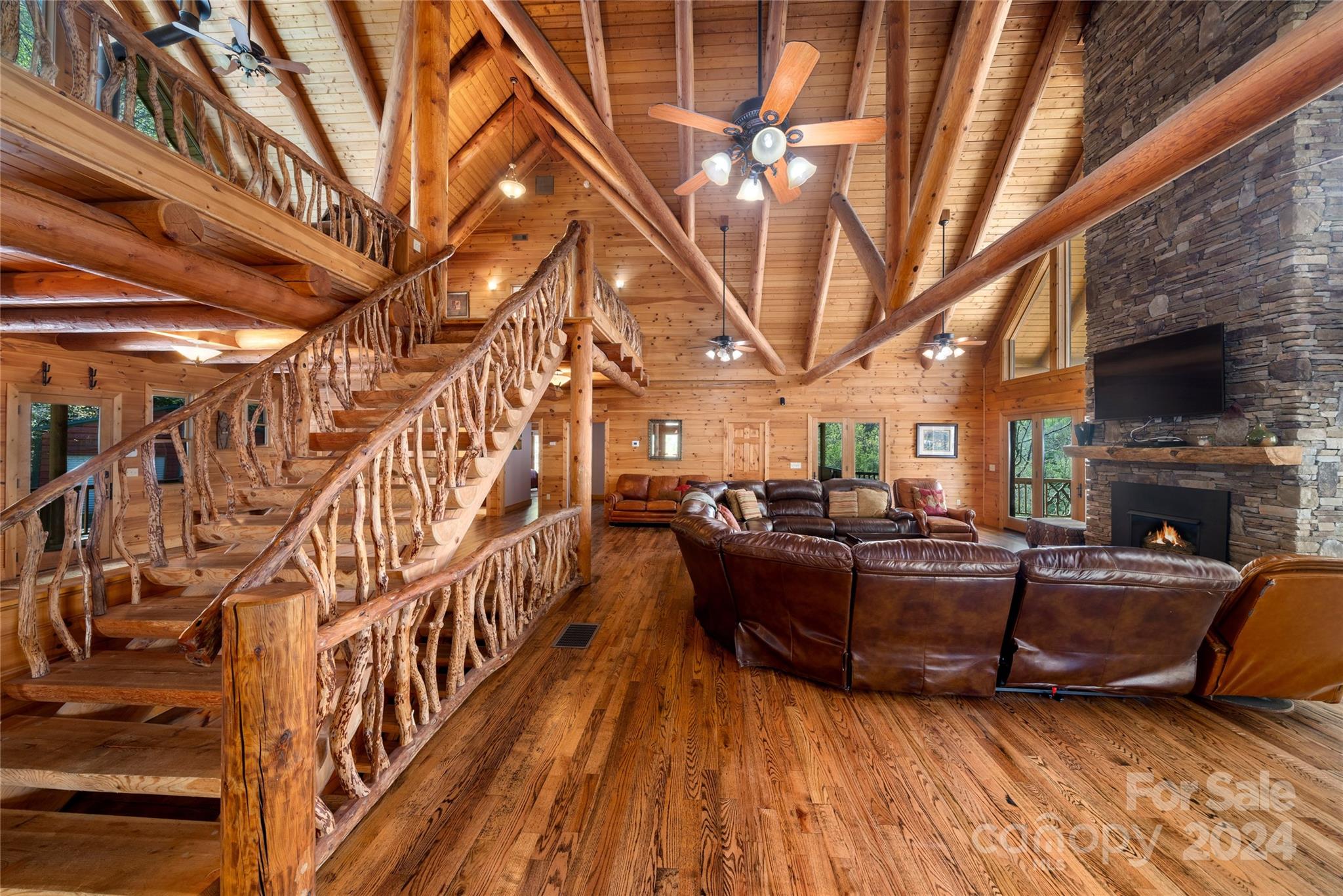Secluded Compound on 16 Unrestricted Acres.. prepped with a Mountain Log Lodge featuring Large Timber-framing, dramatic architecture, soaring ceiling. 7 sleeping areas/5.5 Baths (on 4 BR Septic) Plus 4 park models could be rentals (w/septic systems). Available ready-to-rent with income averaging $90k. Pasture with sheds.. Two natural creeks, 'Safe Room' Bunker, Mountain Views. Fire pit and man made WATERFALL next to the Hot Tub. The 30'x24' great room can accomodate everyone around the fireplace. Kitchen, Dining, 2 bedrooms with Jack n Jill bath, powder room, laundry on main level. Over 2500 SF of wrap-around porches and decks for outdoor living. The Loft offers 'birds eye view' gathering space or private sanctuary with wood burning stove, Primary bedroom, en-suite bath & tile shower, 2 guest rooms with full bath. Lower level has Billiards, work out and media seating areas, 2 Bunk rooms plus 2 Full baths. Ride 4-wheelers to Great Smokies and Blue Ridge Parkway. Seller's Home Inspection