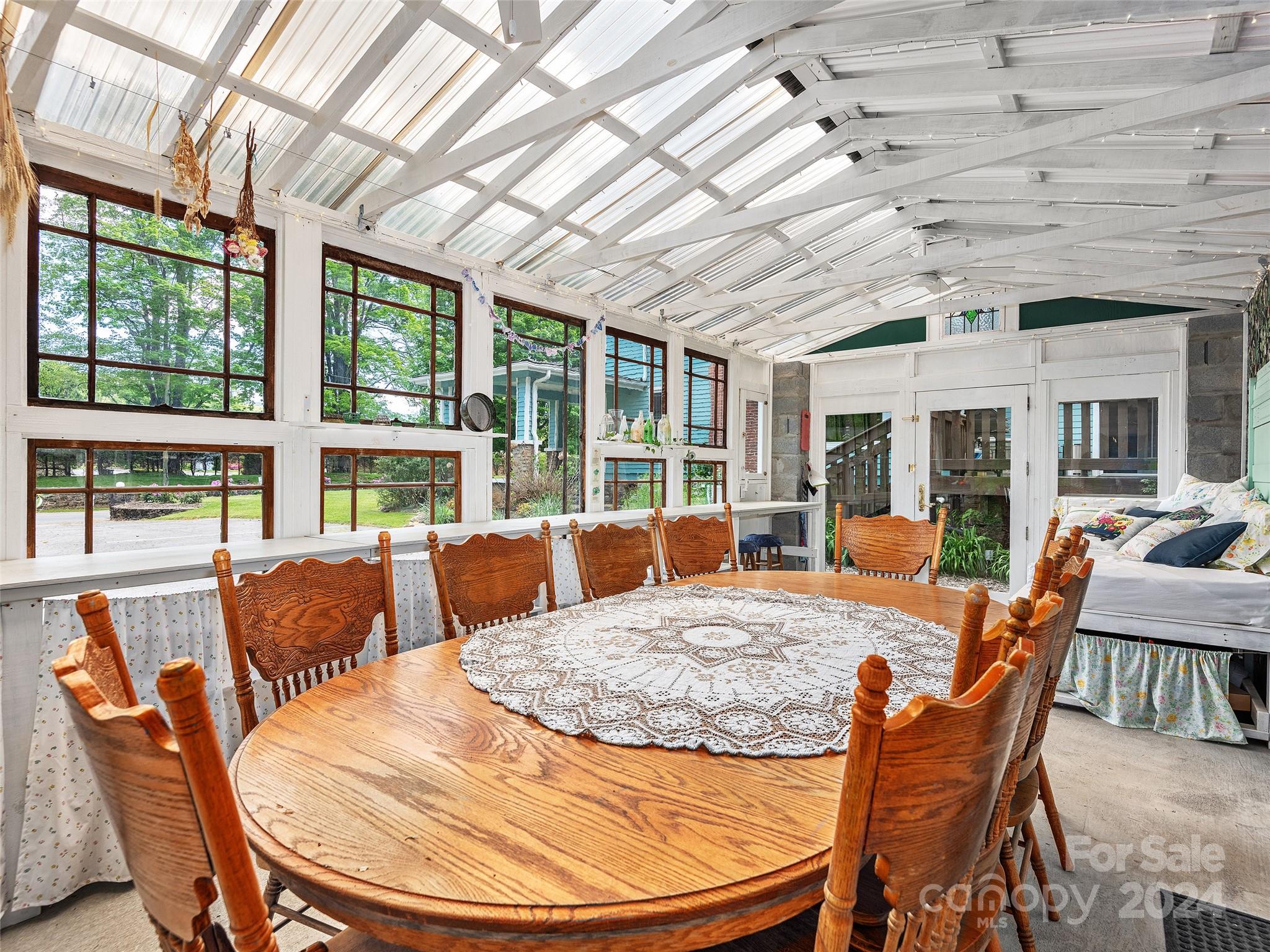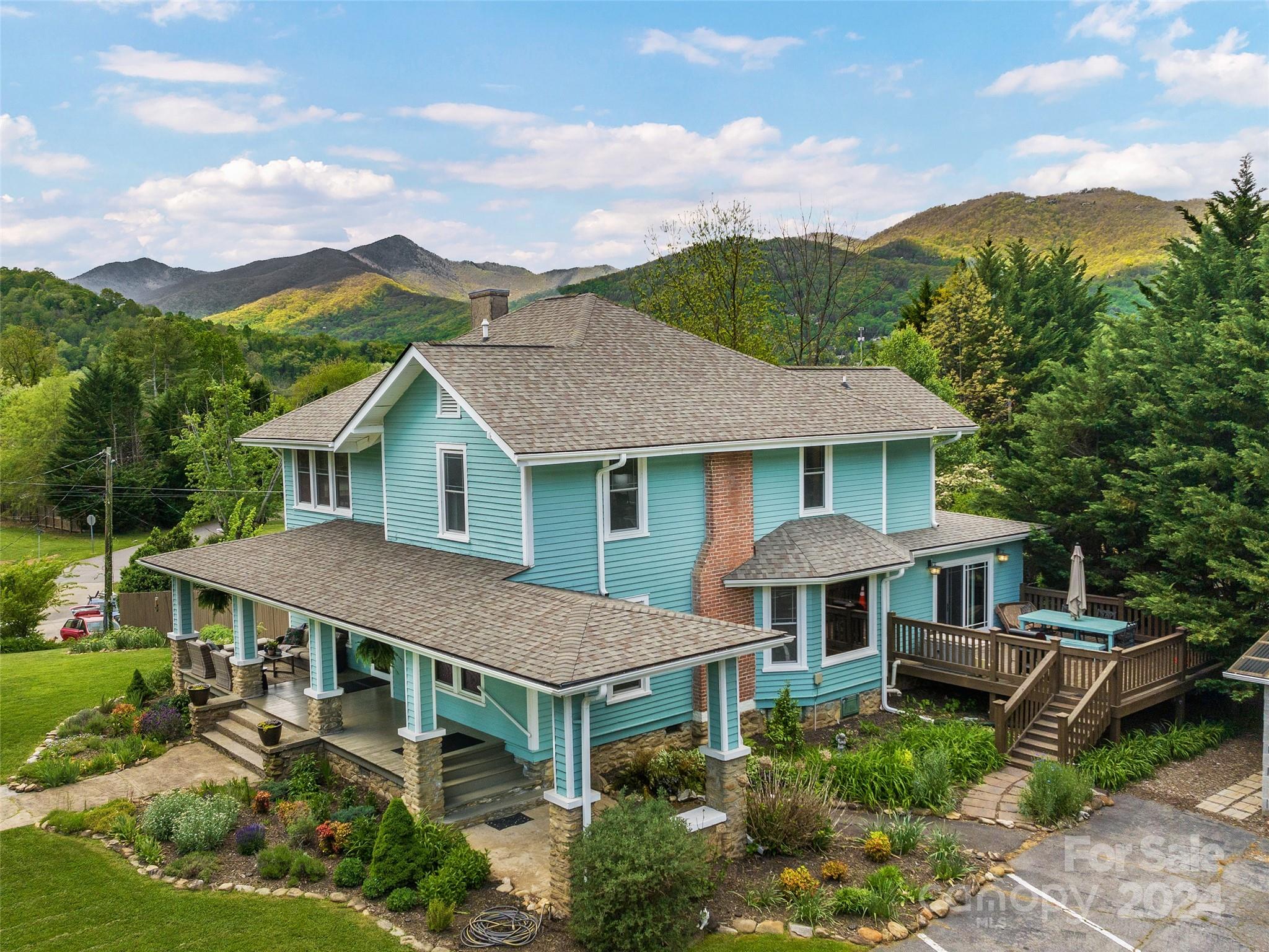 Discover this historic & renovated home designed by architect Richard Sharp Smith, who assisted in designs for the Biltmore Estate. Upon entering the house, you will see original oak wainscoting, wood floors, built-ins in dining room & pocket doors. High ceilings & light fill most of the rooms. The custom kitchen has been updated w/granite C-tops, coffee bar & wet bar. This home seamlessly blends the grandeur of the past w/modern comforts. Discover the epitome of space & versatility in this 5-bedroom, 5.5-bath home that offers seasonal mountain & city views. Nestled in the center of Waynesville, this property provides a convenient escape while being minutes from golf, shopping & dining. The house sits on just under an acre with plenty of parking & a custom greenhouse. Must see to appreciate all that this property offers!