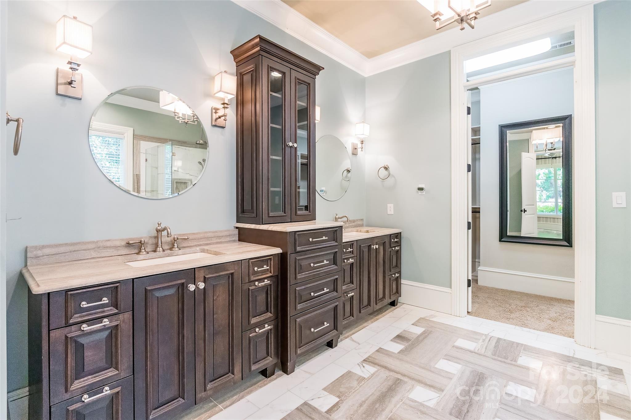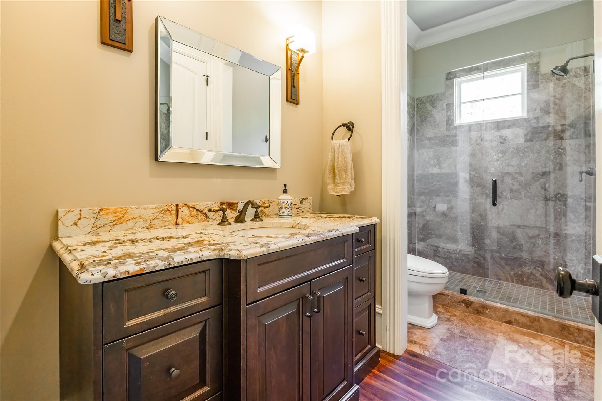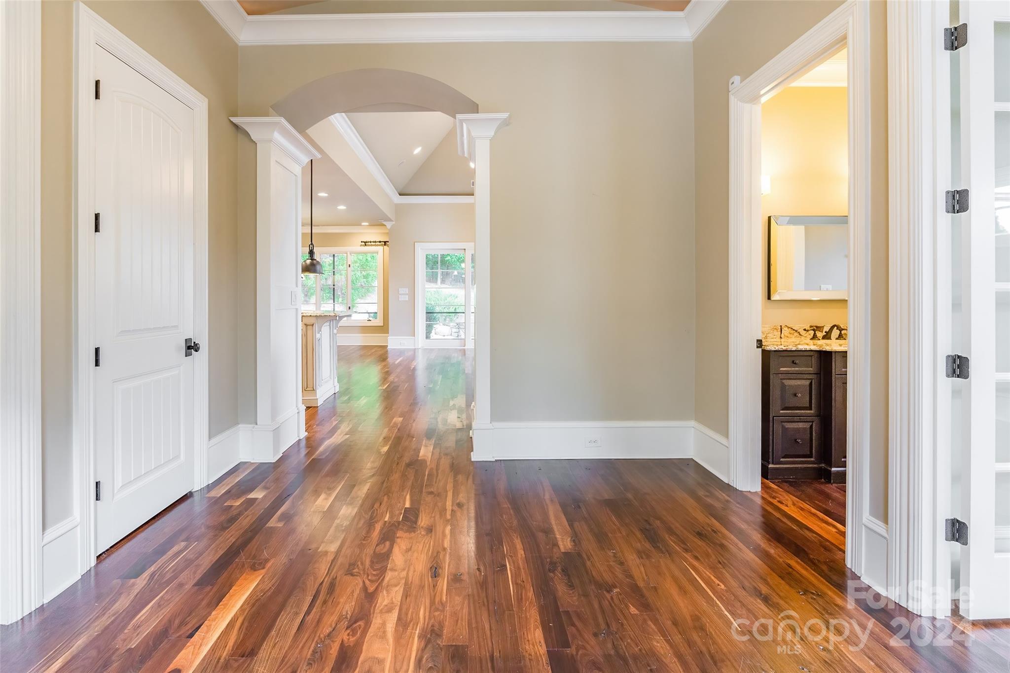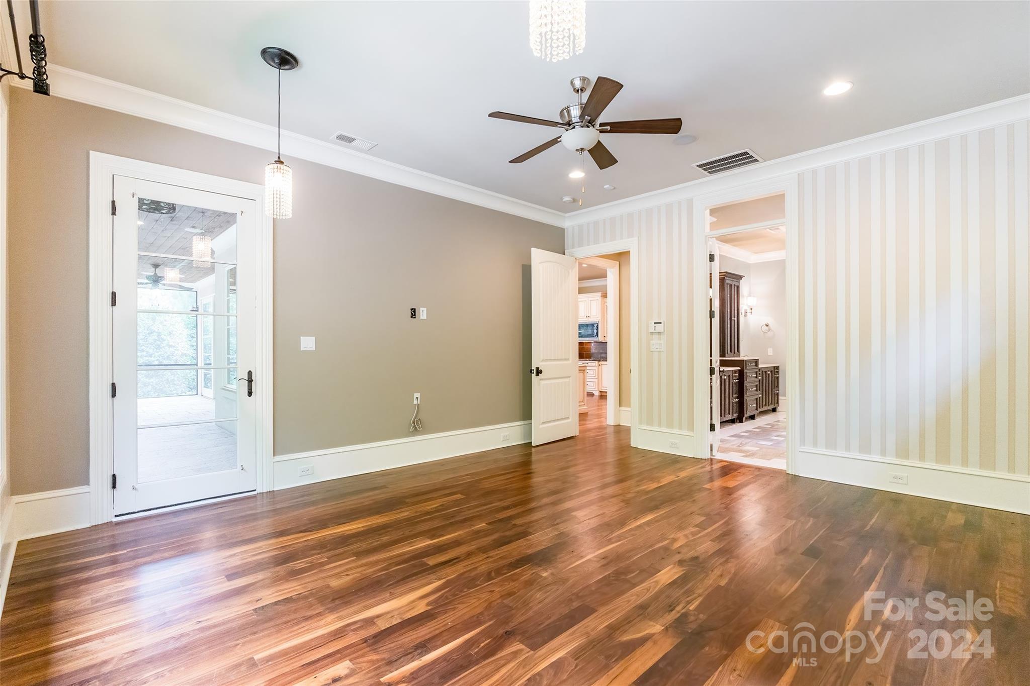 Prepare to be captivated by this extraordinary custom home! Meticulously crafted inside and out, you'll first notice its stunning exterior from the moment you step out onto the brick-paver driveway. As you enter, you'll be greeted by the timeless elegance of walnut floors that flow through the main living areas. The chef's kitchen, with stunning granite/marble countertops, top-of-the-line Wolf 6 burner gas stove, & Sub-Zero built-in refrigerator, is open & airy—effortlessly connecting to the great room & dining room. Retreat to the deluxe owner's suite on the main level with ensuite bathroom, complete with a jetted bathtub. 2nd primary bedroom also awaits with its own ensuite spa! The thoughtful layout was designed with 10ft ceilings to maximize natural lighting as well as emphasize your privacy. Outside discover a lush private oasis: the covered porch overlooking a fenced yard with irrigation system. Nestled within a gated cul-de-sac in a highly desirable, amenity-rich community!