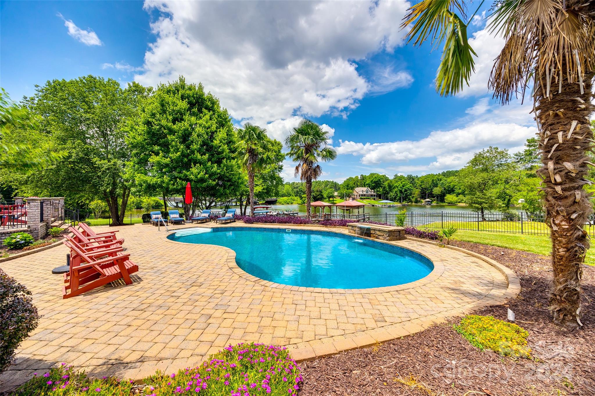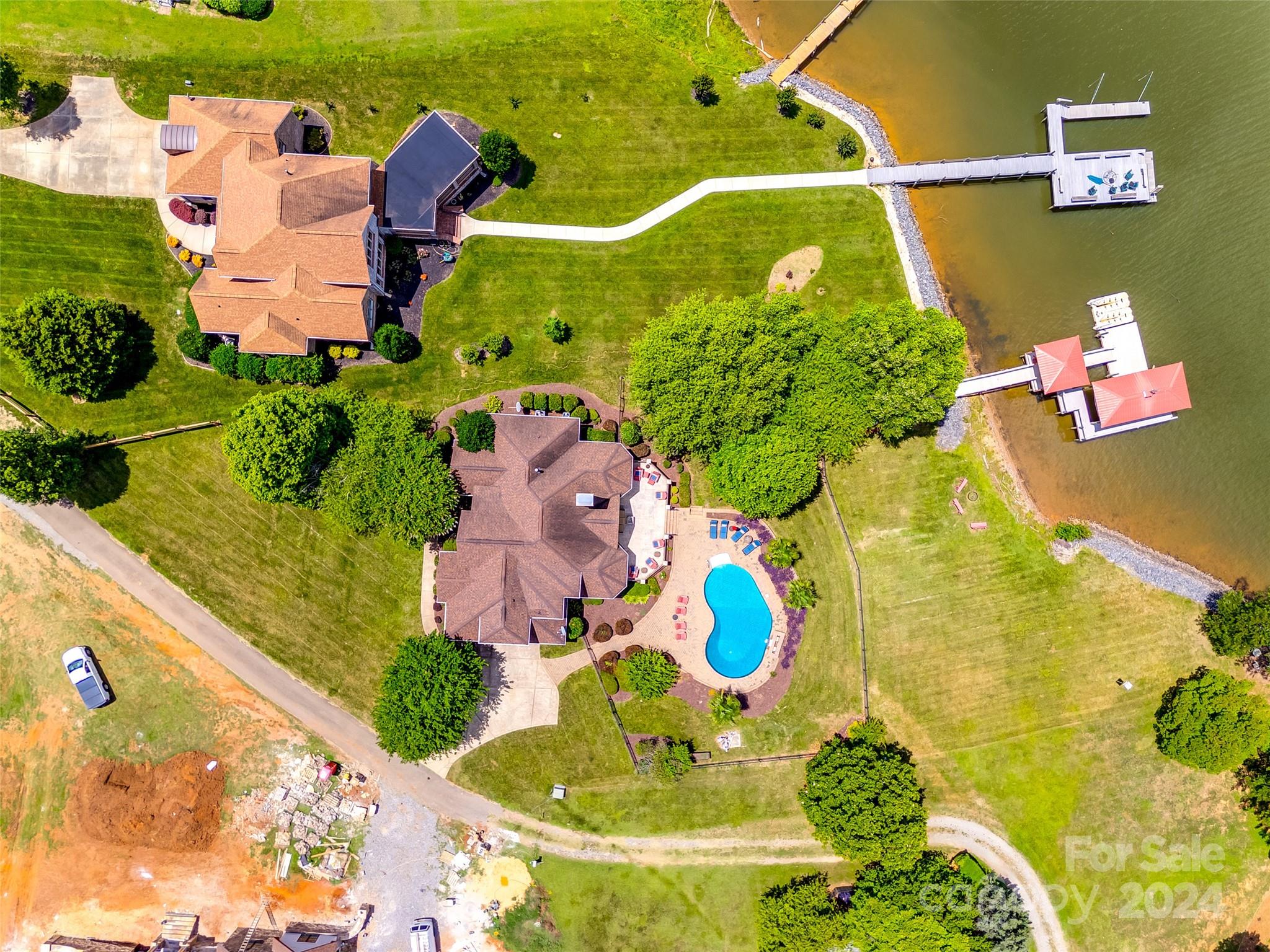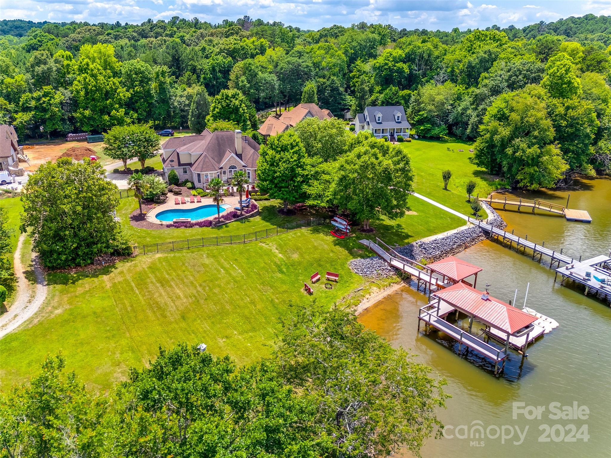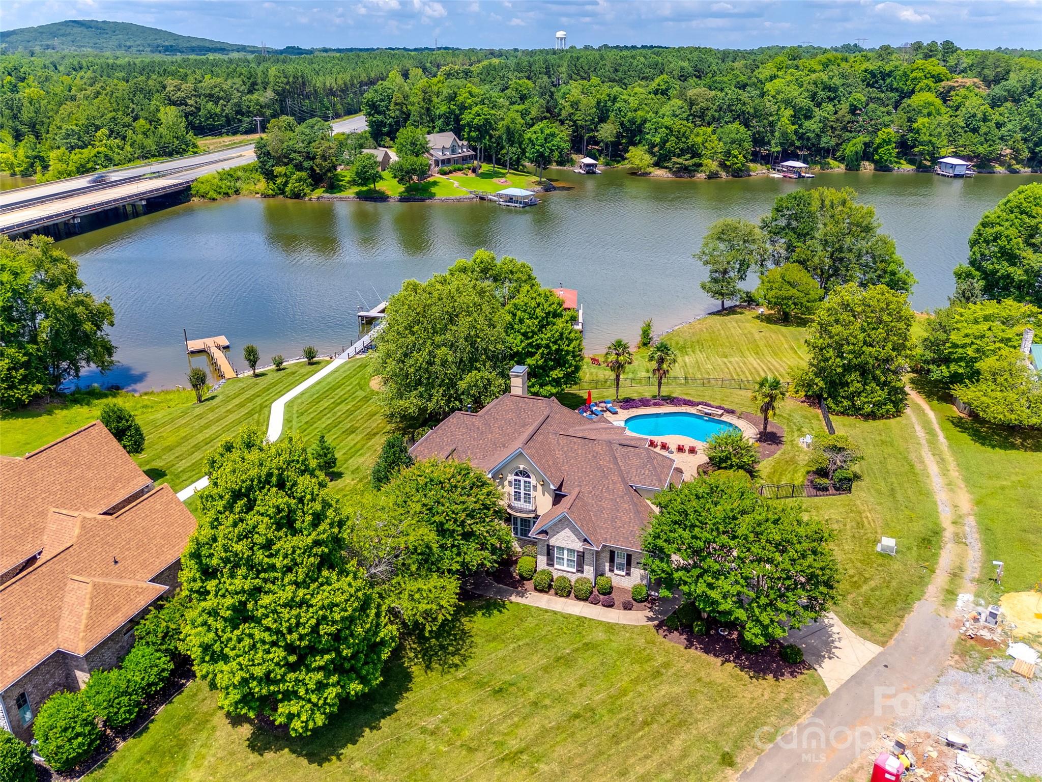 Indulge in waterfront living at its finest with this stunning home located in the highly acclaimed Clover School District. Boasting 200 feet of pristine shoreline on Lake Wylie and no HOA. This elegant residence offers a main-level primary suite and office, adorned with beautiful hardwood floors. The open-concept living area provides breathtaking water views and seamlessly integrates indoor and outdoor spaces. Step outside to enjoy your private saltwater pool or embark from your covered dock featuring a boat lift, floating dock, and personal watercraft lift, ensuring effortless lake access. Home features a freshly painted interior, new upstairs carpet, a tankless water heater, encapsulated crawlspace, and newly renewed termite bond with Orkin, enhancing both comfort and efficiency. For added convenience, refrigerator, washer, and dryer to convey. Don't miss the opportunity to own this exceptional property!