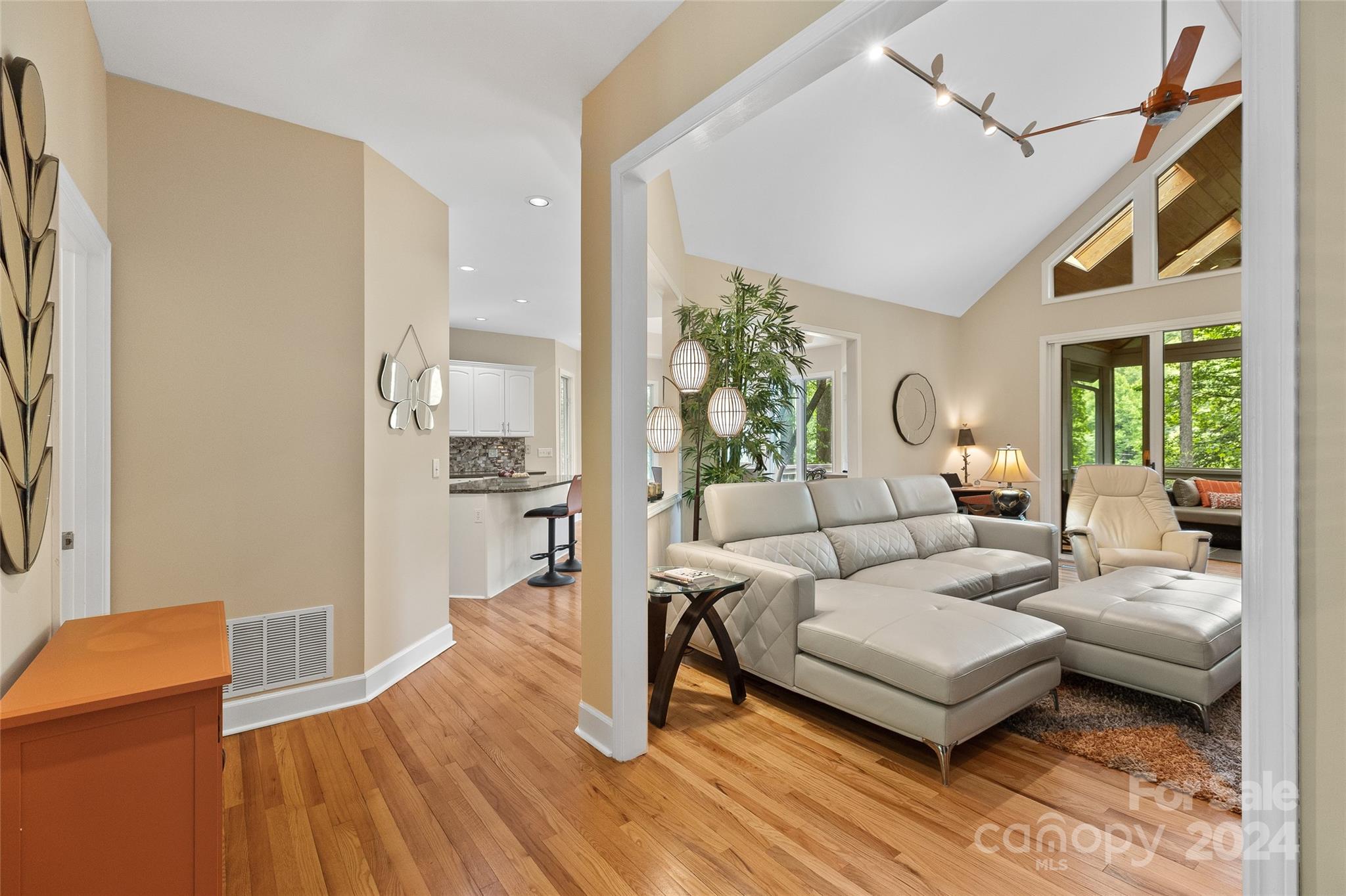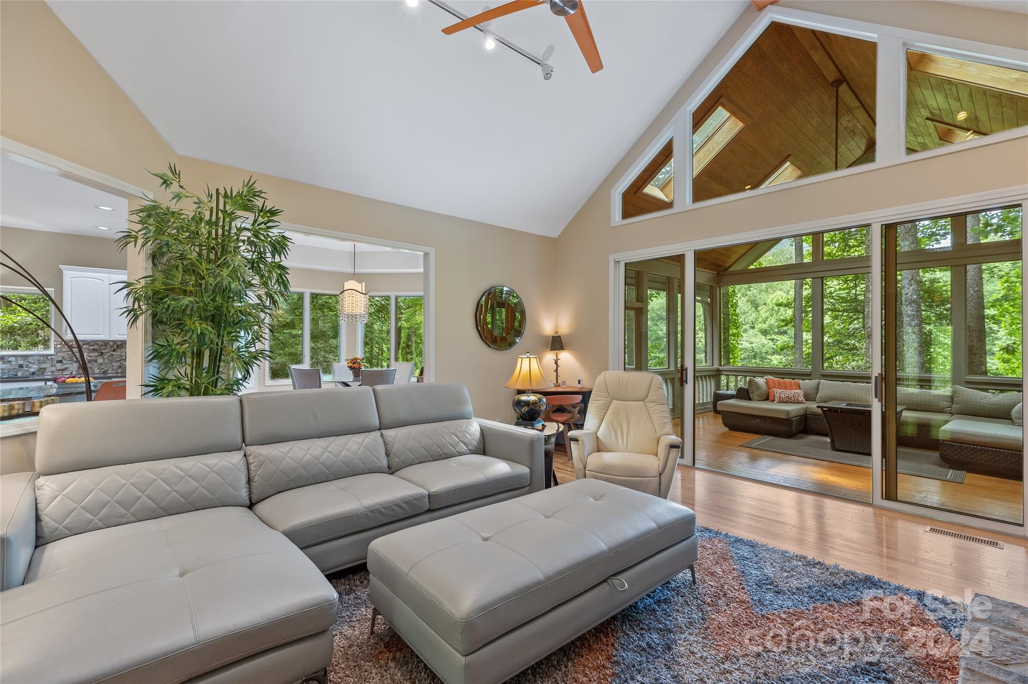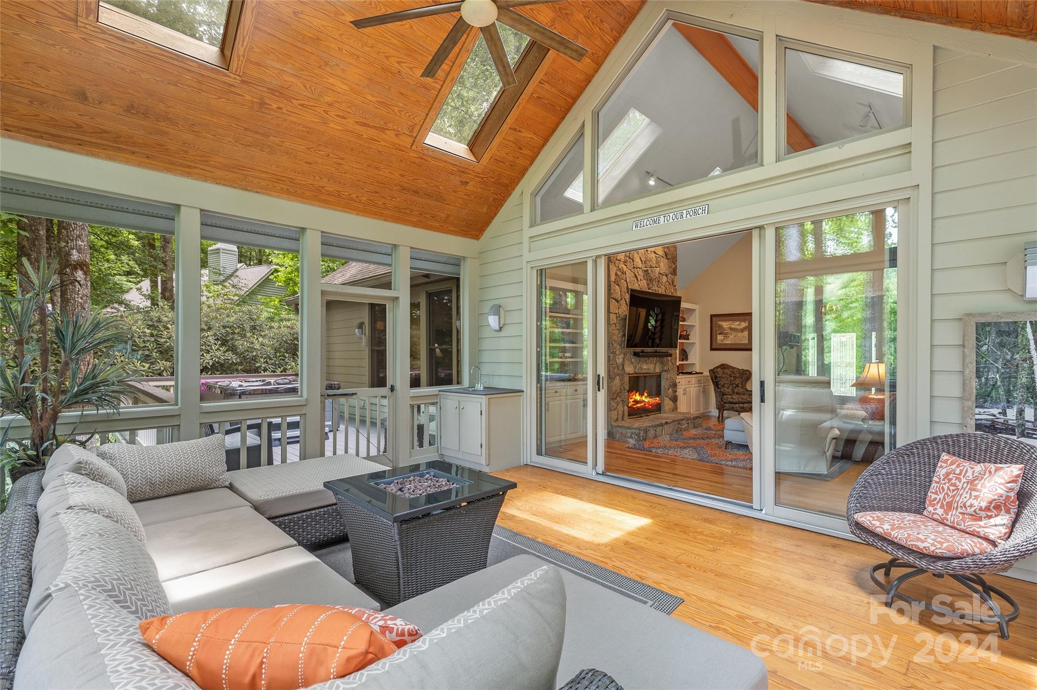 From the moment you enter you know you are in a special place. Not often do you encounter such a light, bright home for under $900K. There’s an outstanding view of Hogback Mountain and it’s located on the 6th hole of the Burlingame CC golf course. All on one level, this impeccably maintained home features wood floors, a rock faced gas fireplace and a spectacular screened porch that must be seen to be appreciated. There are 2 decks, one for grilling and one for the hot tub. Featuring a roomy primary suite with 2 separate closets. In the kitchen, there’s a large breakfast island and a charming dining room with an octagonal ceiling surrounded by oversized windows. There are two additional bedrooms and bath plus a spacious laundry room with a utility sink and extra storage closet. The grounds are low maintenance with access stairs blending nicely with the mountain environs. Country Club memberships are available but not required.