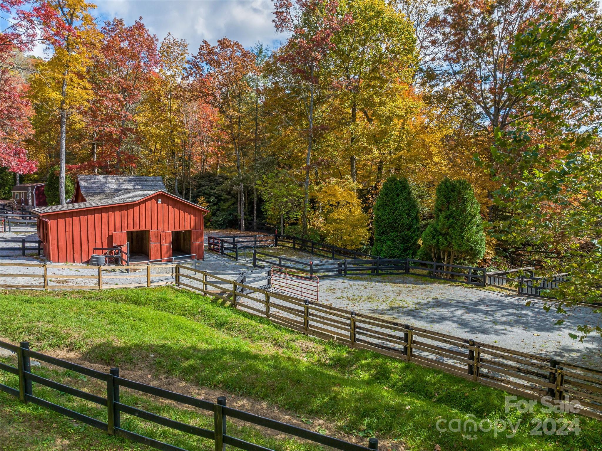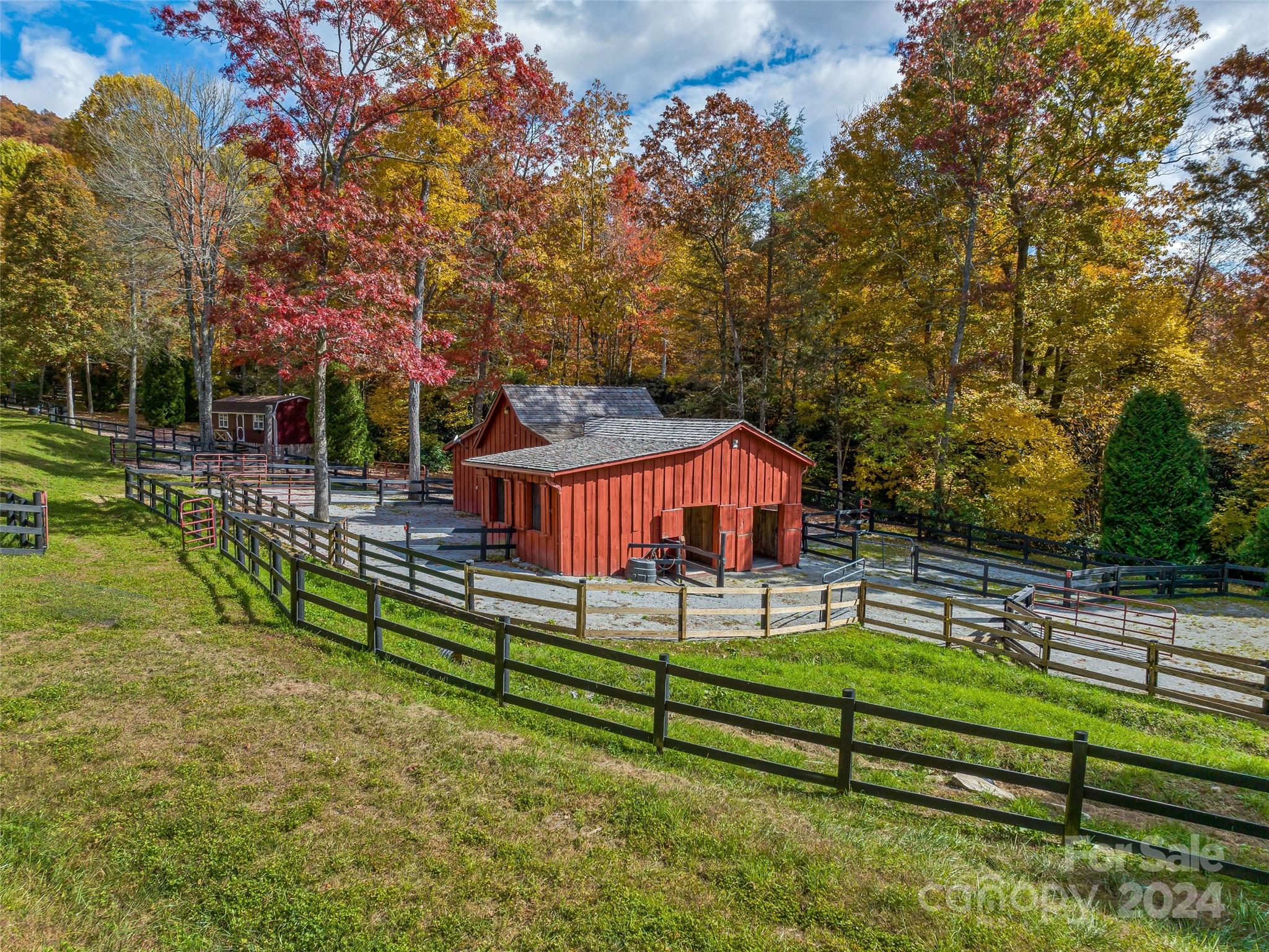 Introducing “The Ridges of Steel Creek” - 149.2 Acres comprised of 22 lots a truly exceptional luxury property nestled within the picturesque landscapes of Brevard. Perched majestically at 3,600 feet elevation, this property with approximately 150 acres of maintained land offers unparalleled serenity and natural beauty, with mountain views that stretch as far as the eye can see. The post-and-beam cabin (offered furnished) features Adirondack rough cut siding, pine floors, modern appliances, and fireplace, but the real magic lies in the surrounding land. This captivating estate includes 40 acres of grasslands and pasture, horse barn, a picturesque waterfall and creeks, and provides endless opportunities. Additionally, there's a 5,500 SF workshop on the property with kitchen, bathroom and laundry facilities. Several run-in sheds and ability to subdivide. Bordering Rich Mountain Conservancy, and is in close proximity to DuPont State Forest and Headwaters State Park. 11 miles to Brevard.