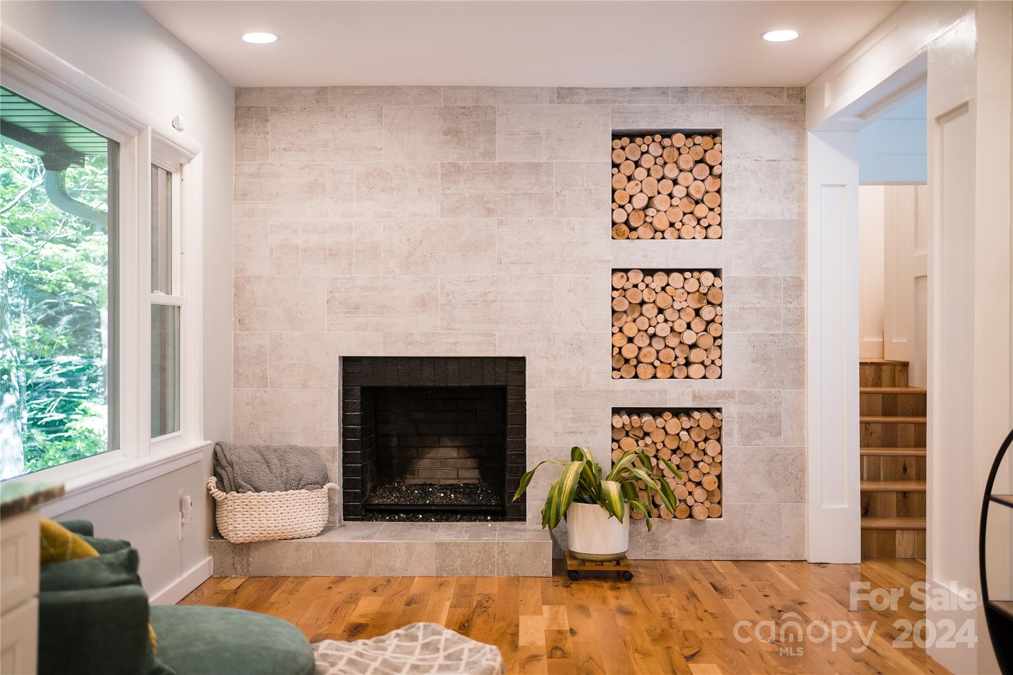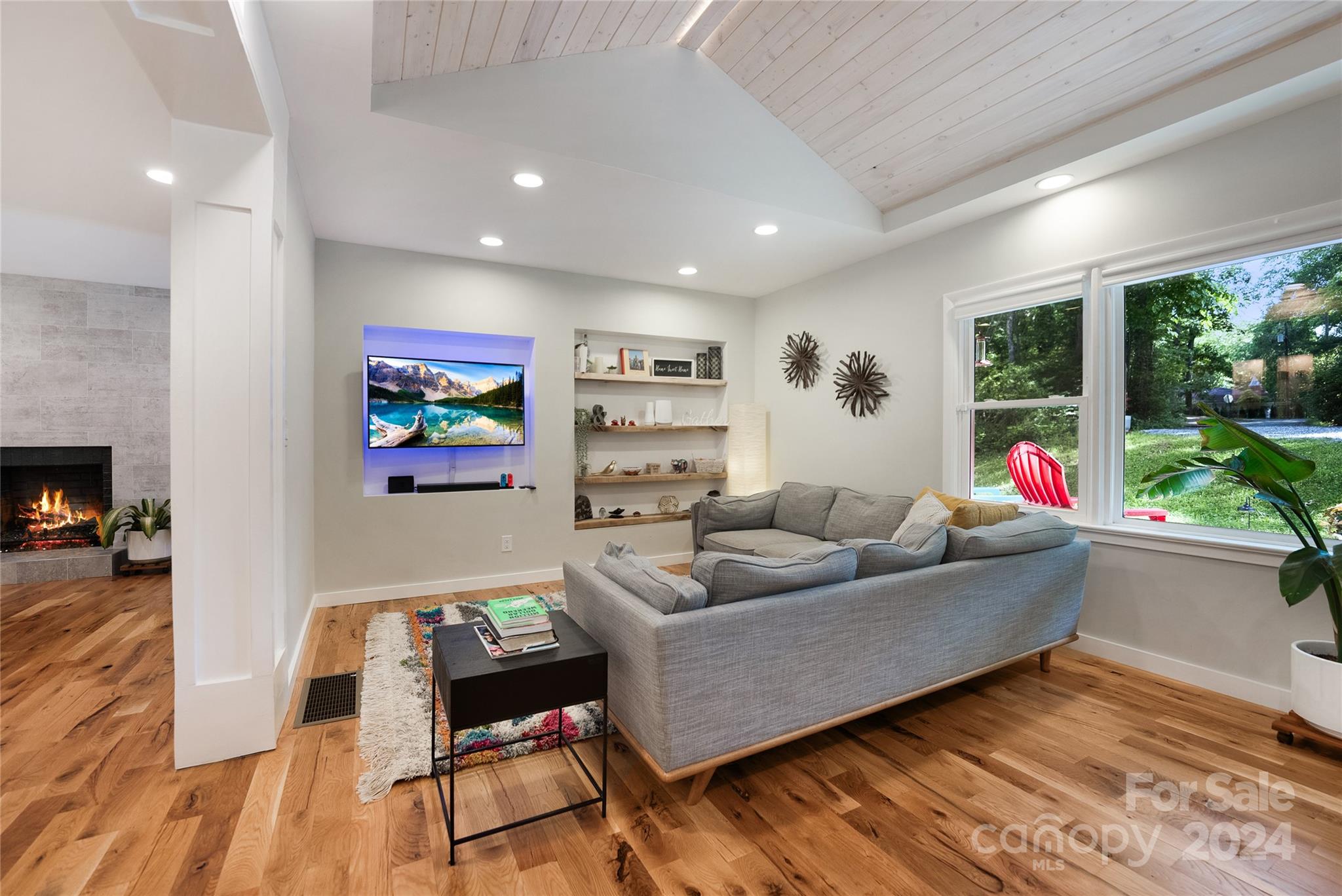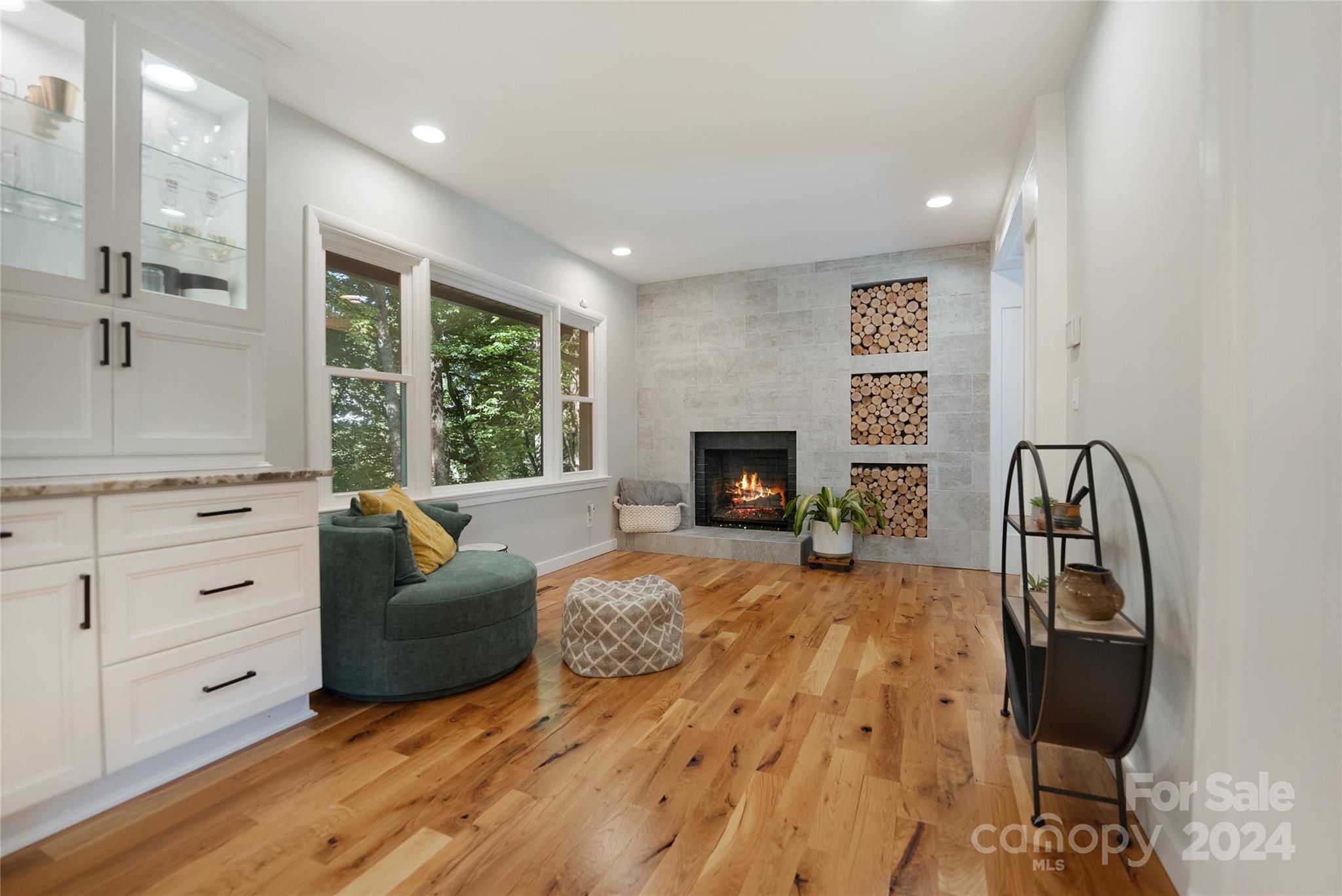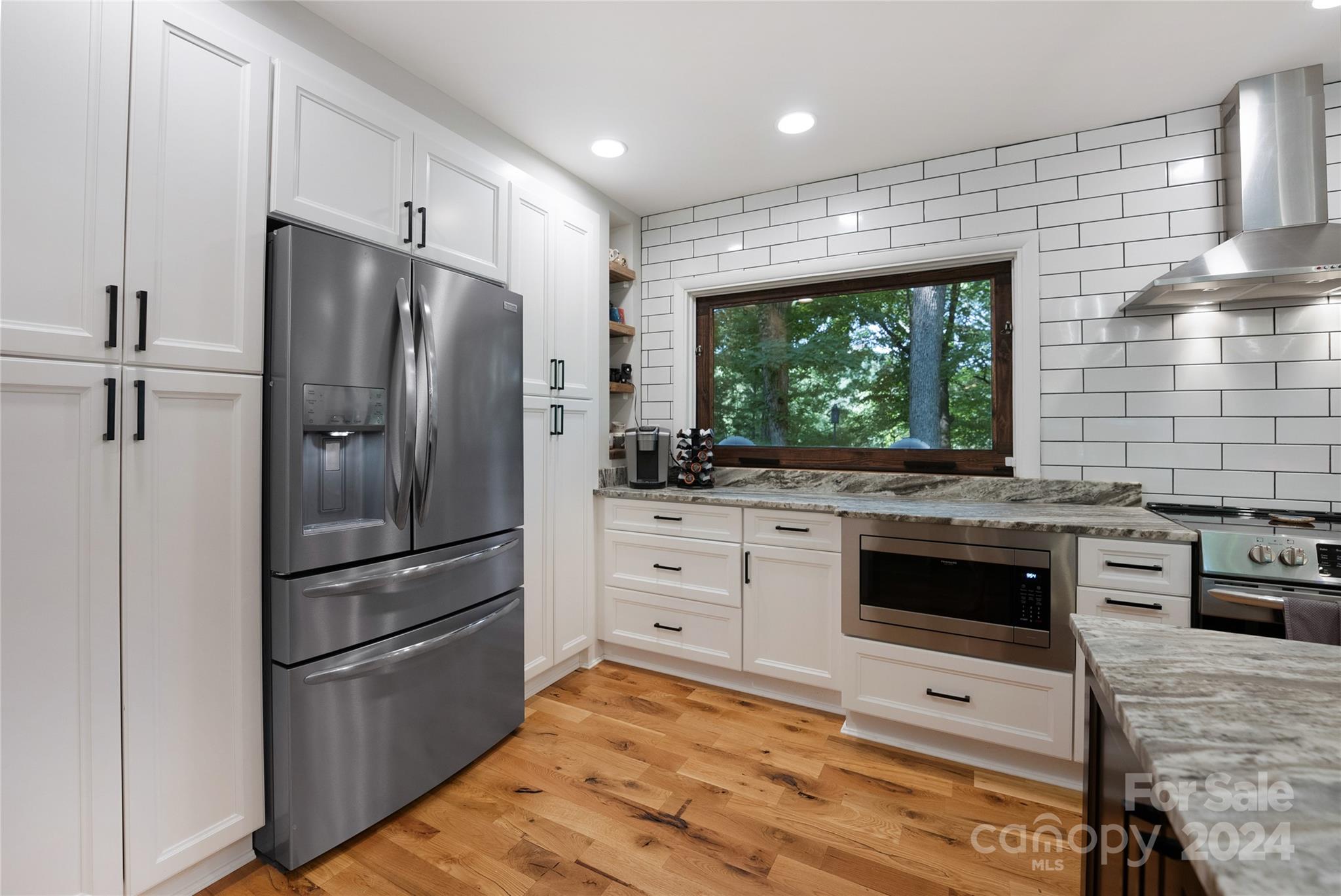 This expertly updated home sits just above the Waynesville Country Club on a wooded lot offering both the feeling of privacy with the convenience of all that Waynesville has to offer. The custom design captures the character you want in the mountains without sacrificing the modern accents / amenities you want. Through the entrance you'll find a light filled great room with a dream kitchen, oversized island with prep sink, built in fridge surrounded by cabinets galore. Cozy living room, dining space, and separate sitting area with fireplace and stunning accent wall. Upstairs there is an incredible primary suite with an oversized shower with Bluetooth speaker system, double shower with additional rain shower-head, free standing tub and coffee bar. Down the stairs find two additional bedrooms and a separate bath and continue down again to a wonderful daylight great room currently utilized as an office / music studio accessible from inside or through a separate entrance to the driveway.