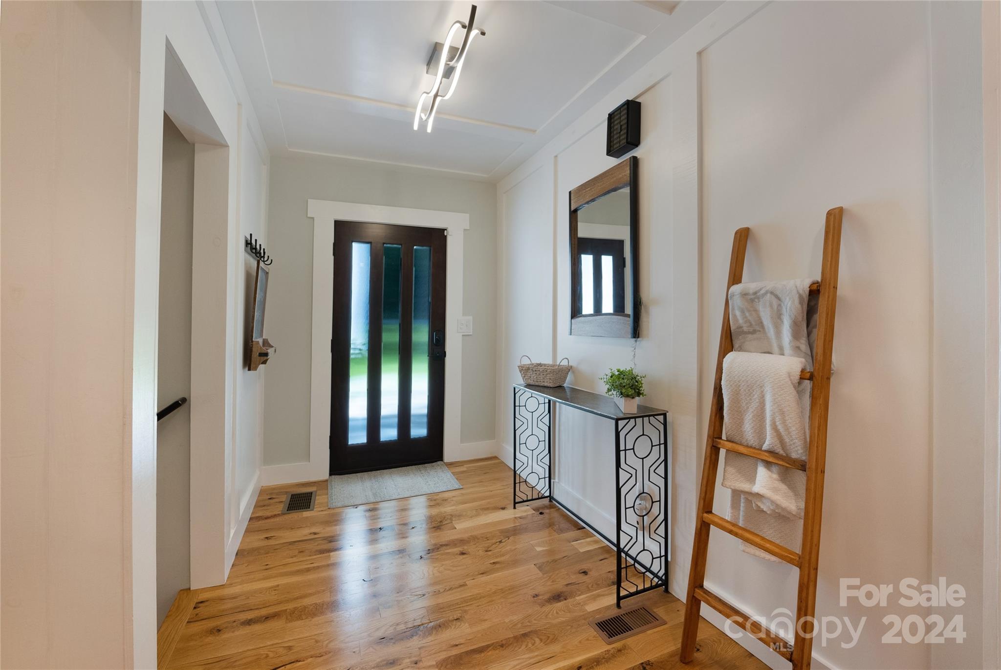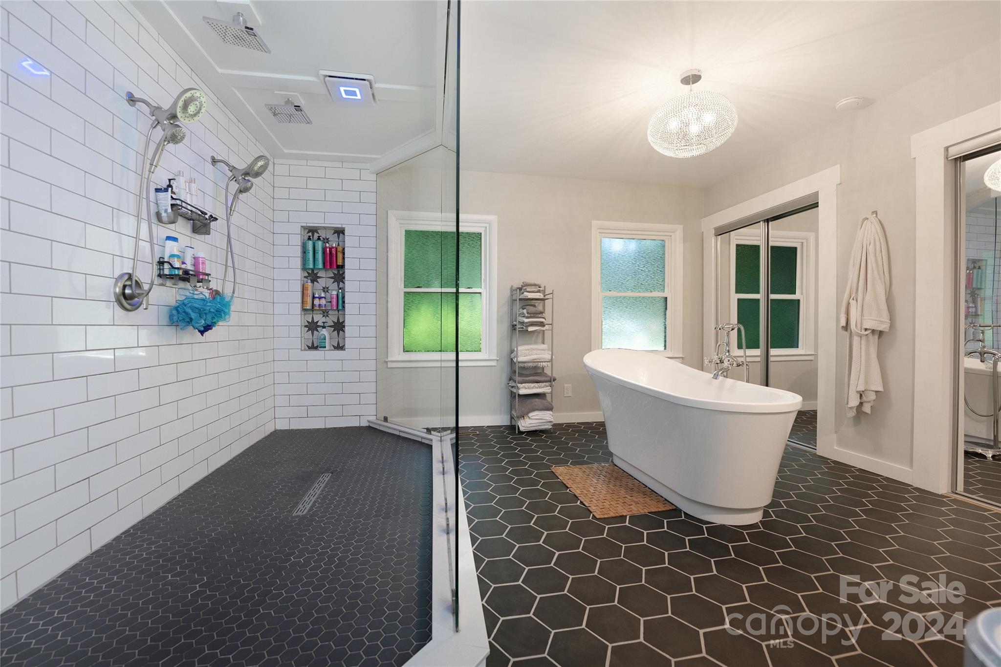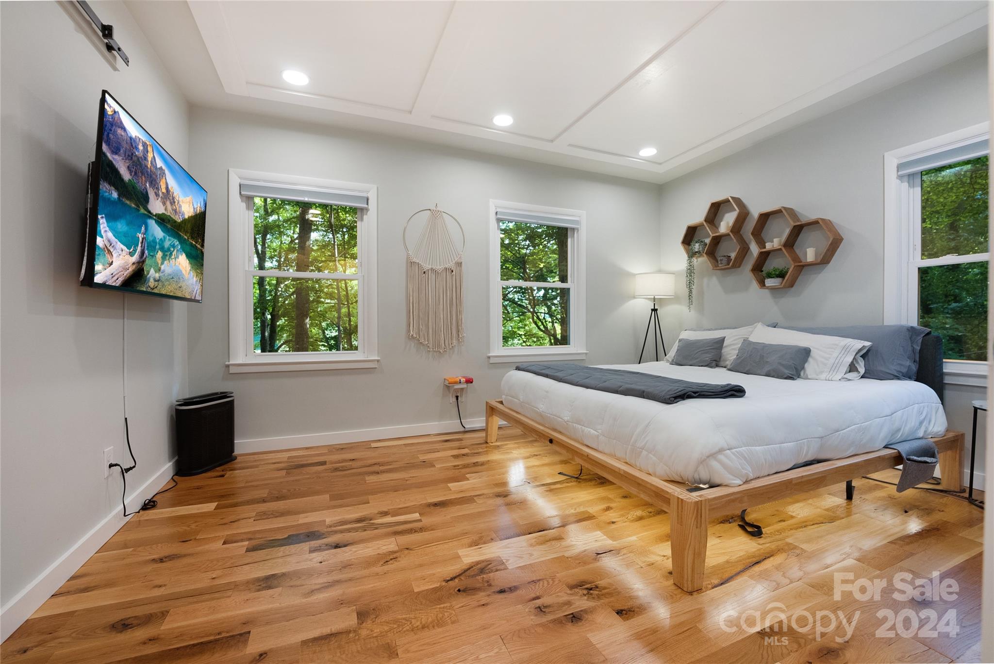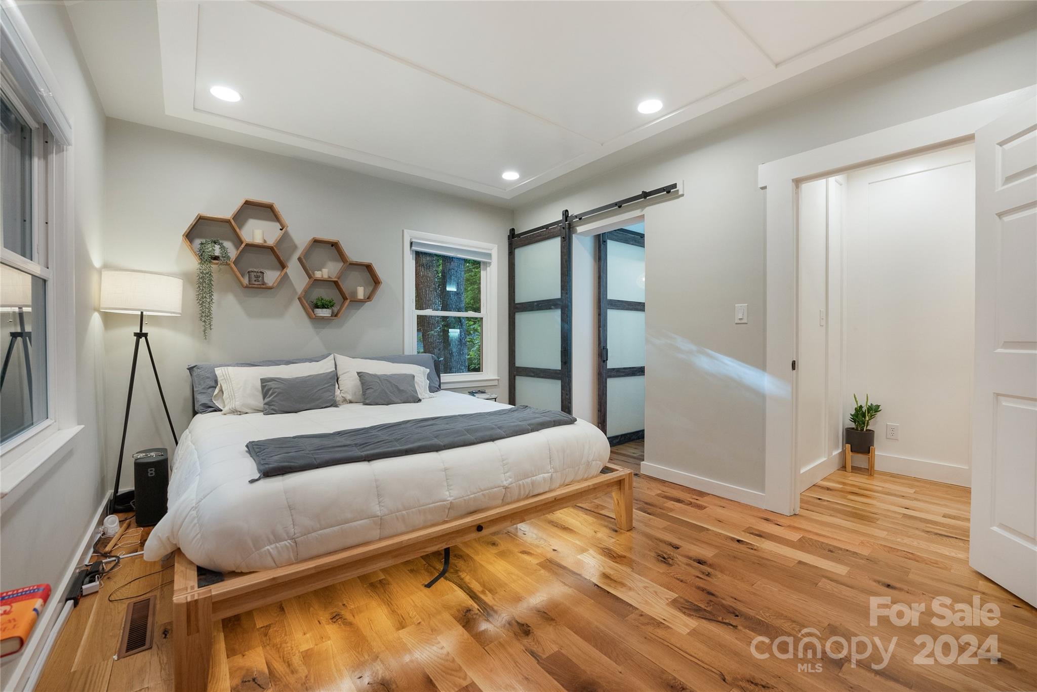 This expertly updated home sits just above the Waynesville Country Club on a wooded lot offering both the feeling of privacy with the convenience of all that Waynesville has to offer. The custom design captures the character you want in the mountains without sacrificing the modern accents / amenities you want. Through the entrance you'll find a light filled great room with a dream kitchen, oversized island with prep sink, built in fridge surrounded by cabinets galore. Cozy living room, dining space, and separate sitting area with fireplace and stunning accent wall. Upstairs there is an incredible primary suite with an oversized shower with Bluetooth speaker system, double shower with additional rain shower-head, free standing tub and coffee bar. Down the stairs find two additional bedrooms and a separate bath and continue down again to a wonderful daylight great room currently utilized as an office / music studio accessible from inside or through a separate entrance to the driveway.