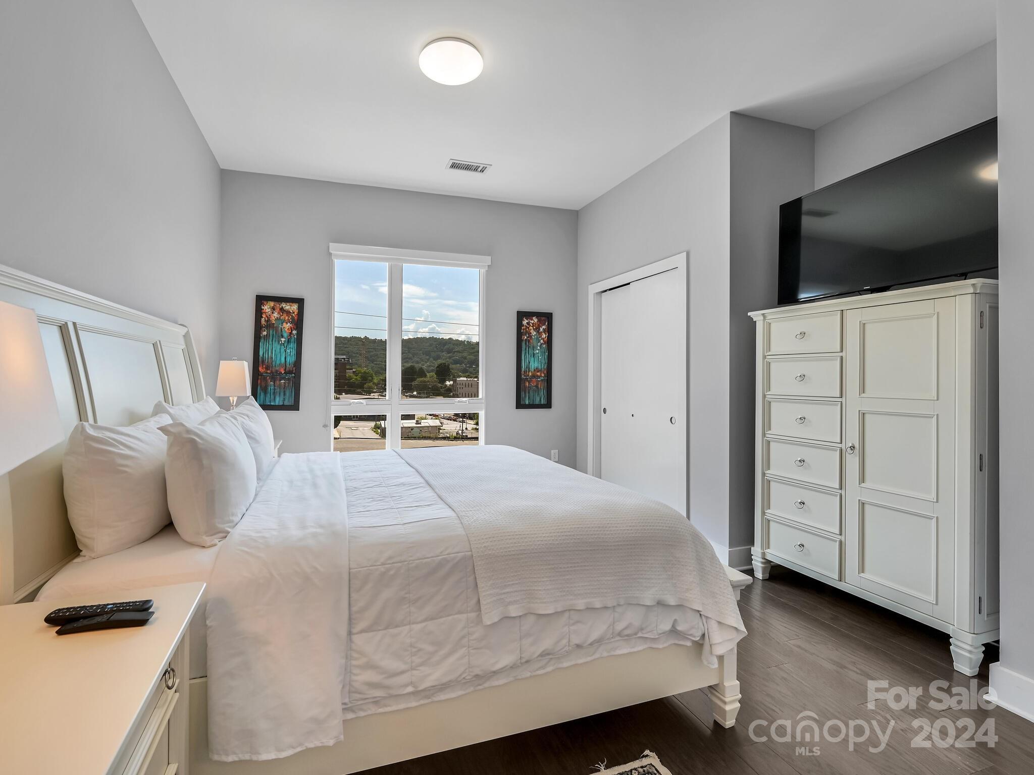 Permitted STR. Luxury 2 Bedroom 2 bath condo, Income Producing, fully furnished. Located in the central part of downtown and in the south slope. Convenient to all of downtown, near breweries and shopping. Watch the beautiful sunrises from your private balcony. It features open floorplan, wide-plank wood floors, breakfast bar, modern kitchen, quartz counters, s/s Bosch appliances, tiled shower,/floors, additional storage room, 1 deeded parking space in the secured parking garage, low utility costs, low HOA dues. Purchase unit furnished and continue to rent it out short term with professional mgmt. 7 story bld- 39 units. Let it pay for itself. Close by are live theater, music venues, and art galleries and breweries. STR and VRBO. Building has excellent history as a vacation rental. Condo is well appointed with modern furnishings. Large balcony overlooking the great city of Asheville. Two generously sized bedrooms. Seller is motivated