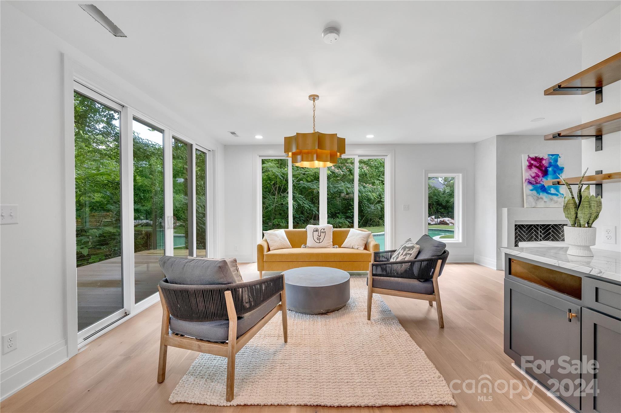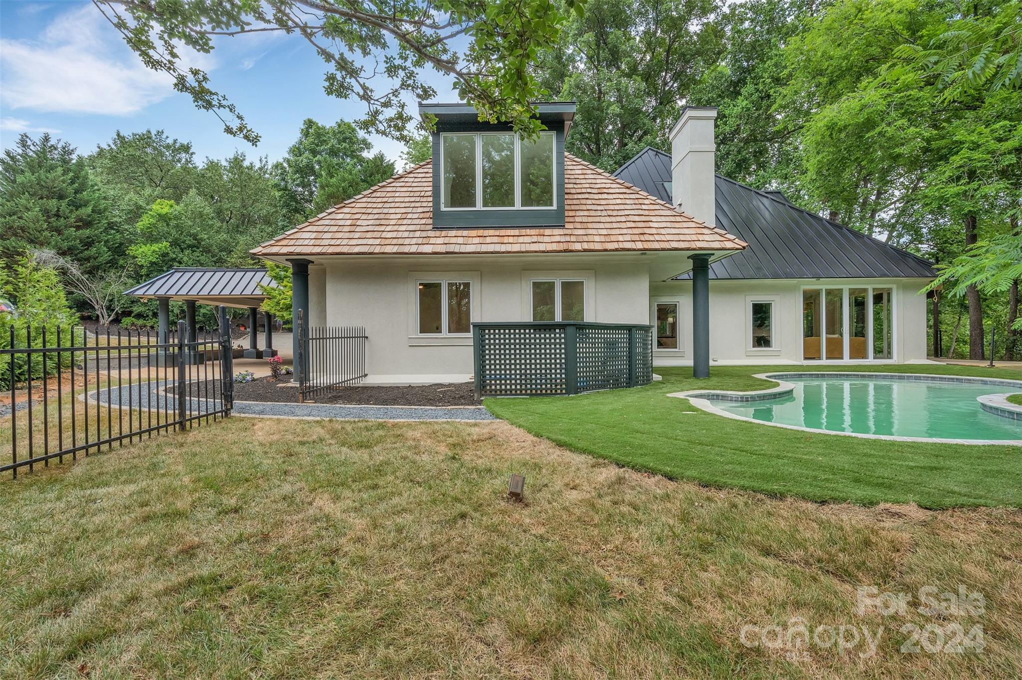 Welcome to your own slice of paradise in the city. From pond views, in-ground swimming pool w/ turf surround, a built in fire pit and oversized upper and lower decks. An entertainers dream with open plan living, Wolf and Sub-Zero appliances and large sliding doors seamlessly connecting in and out living spaces. Wide plank white oak floors and cabinets, custom quartzite counters, giant island, scullery, wine room, sauna, and second living up. Primary on main has pool and pond views, spa like bathroom w/ his and hers wash closets, and large customizable closet. 3 additional ensuite bedrooms, new metal and cedar roof, stucco Isokern gas fireplace. This newly renovated home is truly a must see, spend your summer in outdoor luxury. Located in Eastover with some of the areas best schools, dining, shopping, and minutes to Uptown.