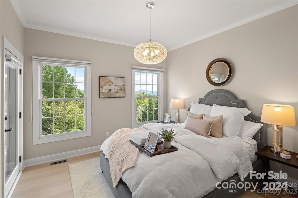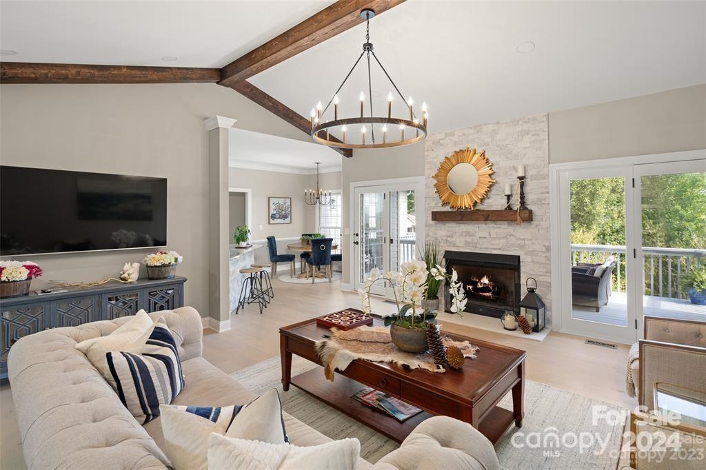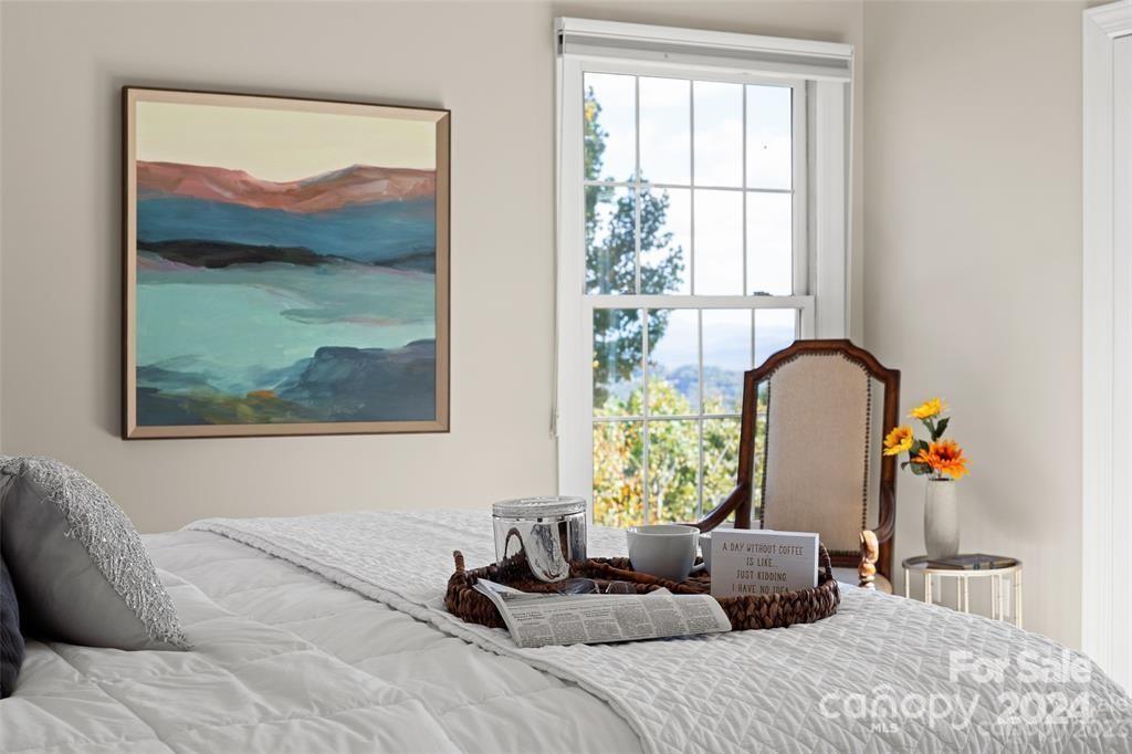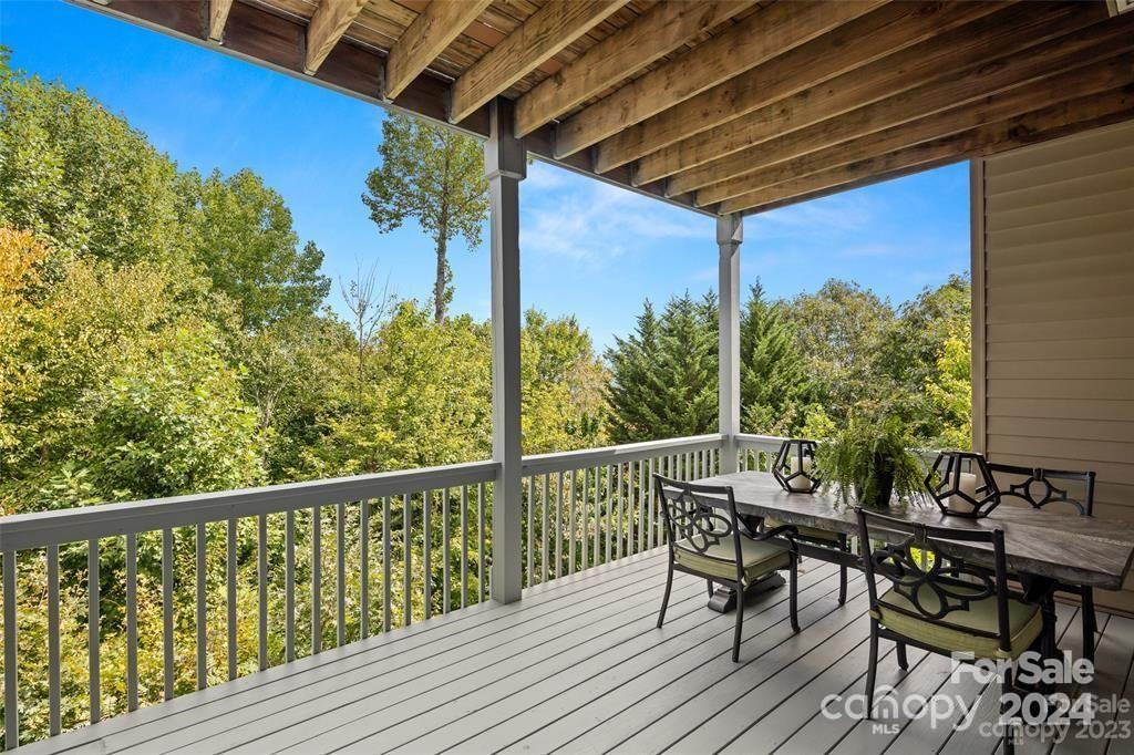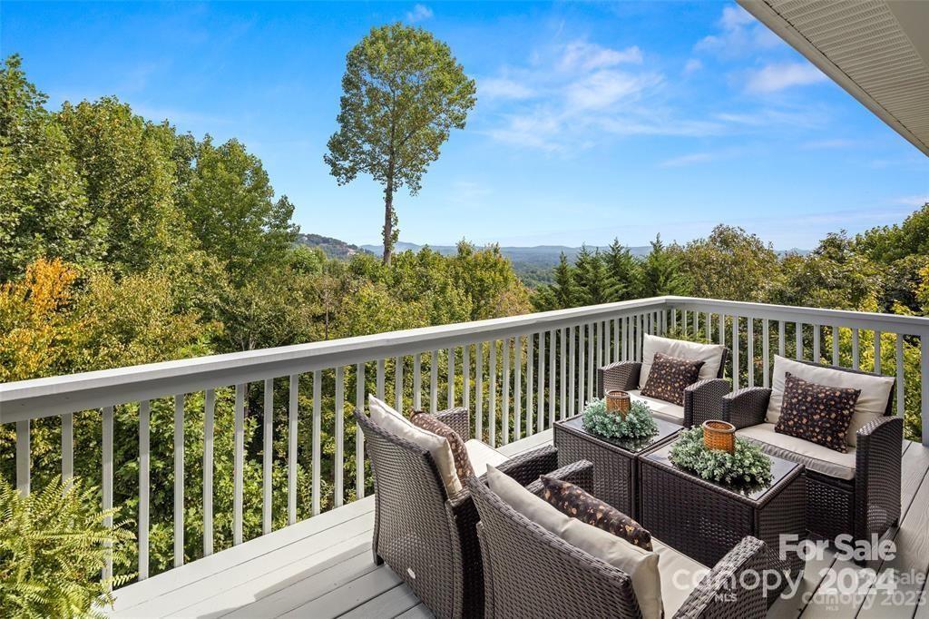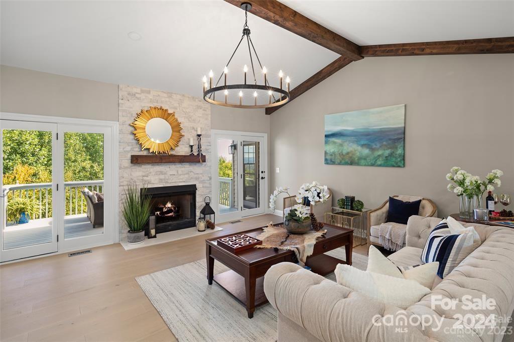 Welcome to 301 Governors Drive located inside the guard-gated subdivision of prestigious Carriage Park! This 4b/3ba luxury home is sited atop one of the highest points in the area offering breathtaking panoramic views. Renovation completed in 2024 - a design of modern mountain chic meets casual flair. Enjoy fresh mountain air from 2 refinished upper and lower-level terraces. Main level exudes easy-living: includes the magnificent great room with marble gas fireplace and custom wooden beams, large dining room, 2 guest rooms and guest bath, laundry room, and luxurious primary suite. Lower level features a large family room, kitchenette, bedroom and full bath, bonus room, and a new wine room behind the "secret" bookcase/door. New roof is being installed Nov 2024. Carriage Park is conveniently located 8 miles from the Asheville Airport and just minutes from charming downtown Hendersonville and offers tennis and pickleball courts, walking trails, ponds, and clubhouse with indoor pool.