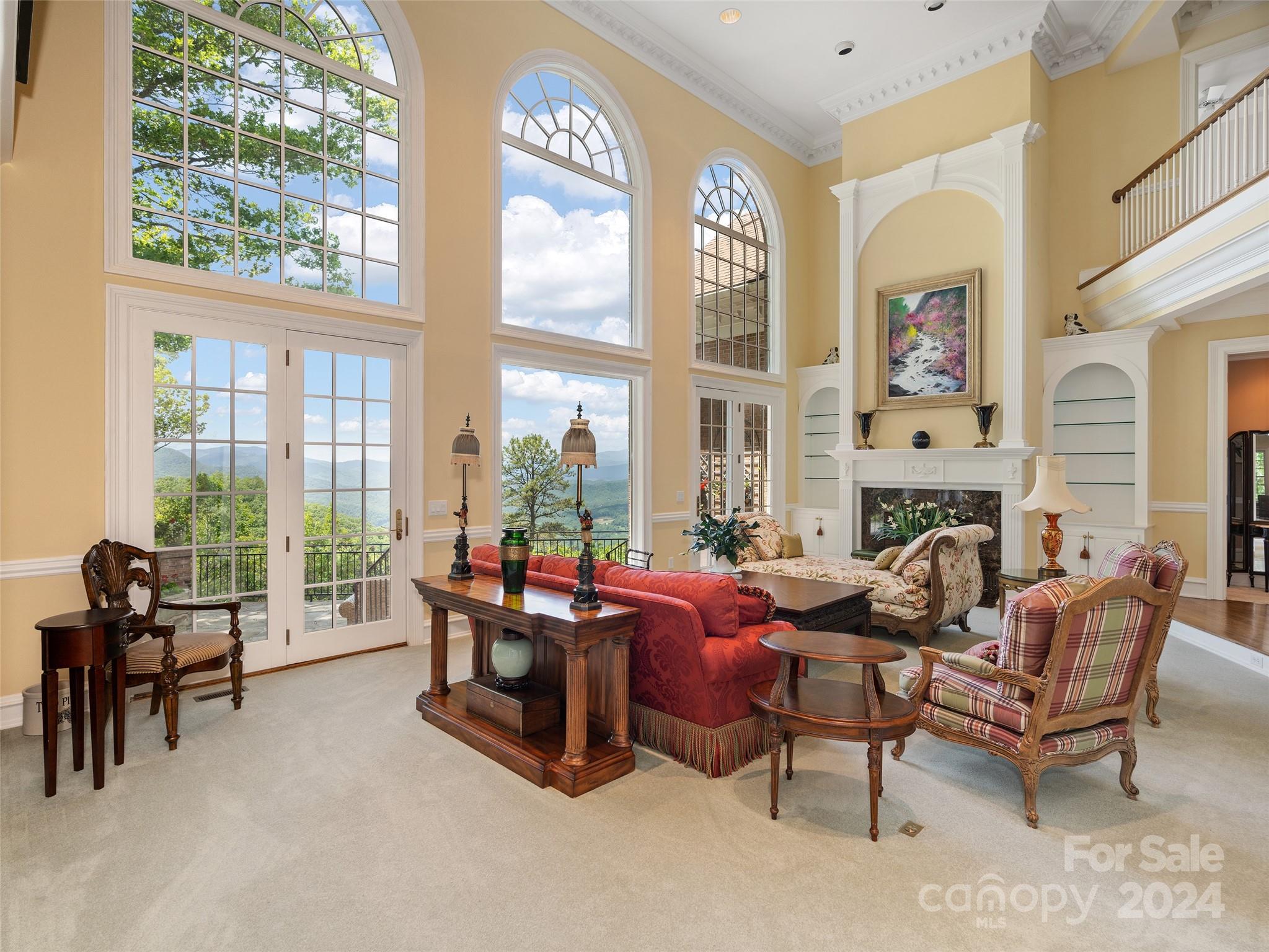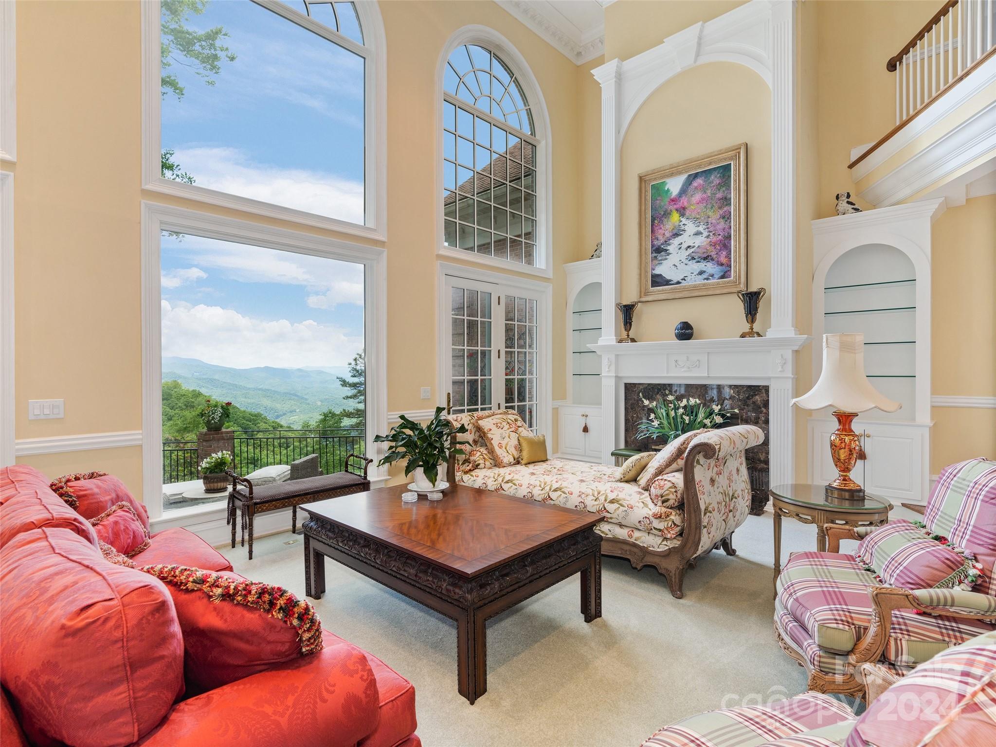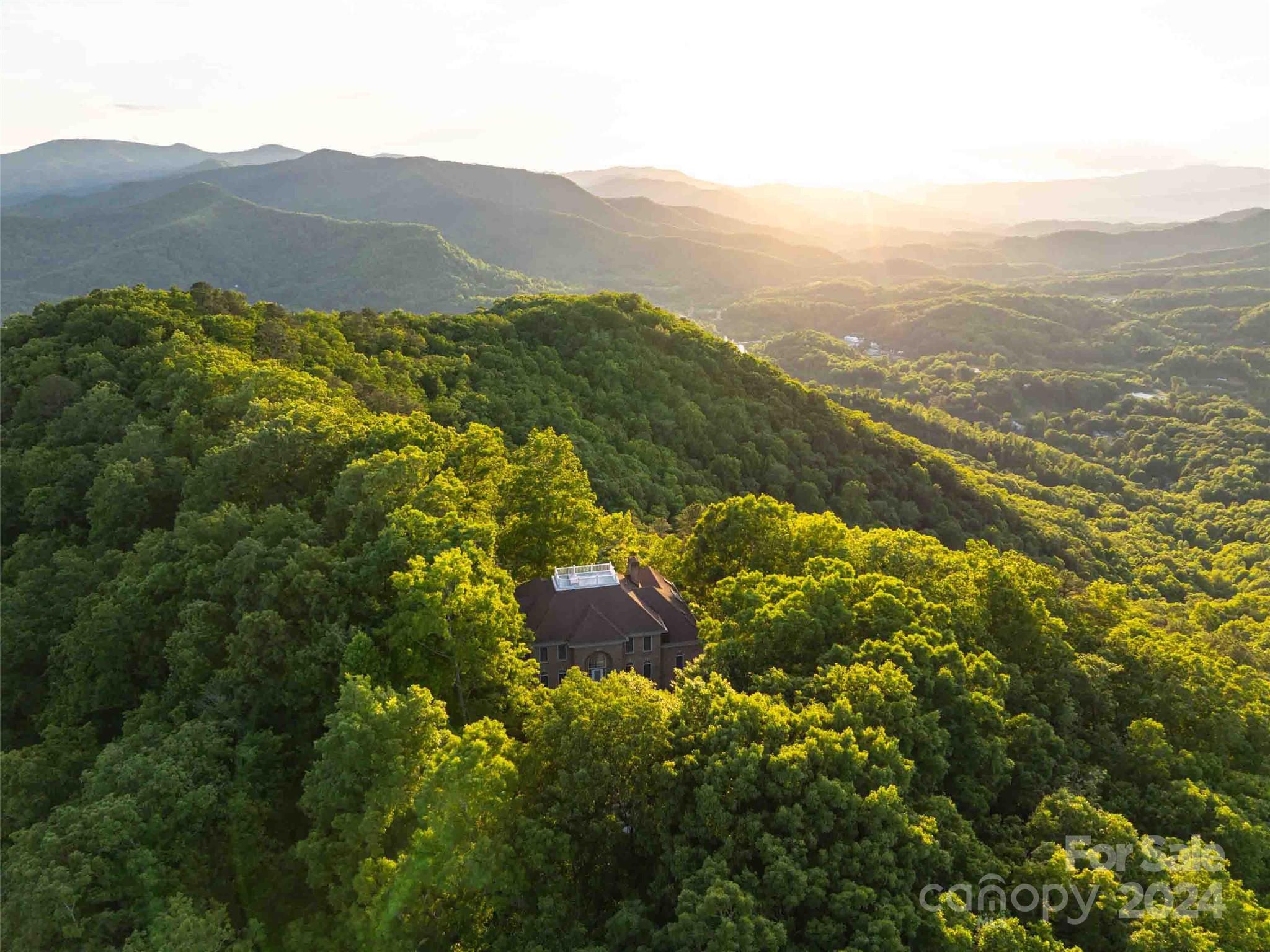 Welcome to "Two Pines," an exquisite, gated, and private mountain retreat w/endless views of the Great Smoky Mountains & downtown Sylva, NC. This property offers +/- 155 ac.(90% of land outside city) of beauty with stunning mountain & city views. A grand foyer leads to a sunken living room & formal dining room with a discreet bar. The chef's kitchen features granite countertops & a breakfast nook. The primary suite boasts a backlit tray ceiling & luxurious amenities, with four additional en-suite bedrooms. The 7,400+ sq ft of living space includes a family/game room with a bar & a four-level elevator for easy access. Outside, enjoy the private pond with a gazebo & fire pit. The home, built with 12-inch soundproof walls, ensures peace. A wine room caters to connoisseurs, & a three-car garage offers ample space for parking and storage. This retreat combines luxury living with natural beauty as it is perfectly positioned atop the ridge, yet easily accessible by the gated paved driveway.