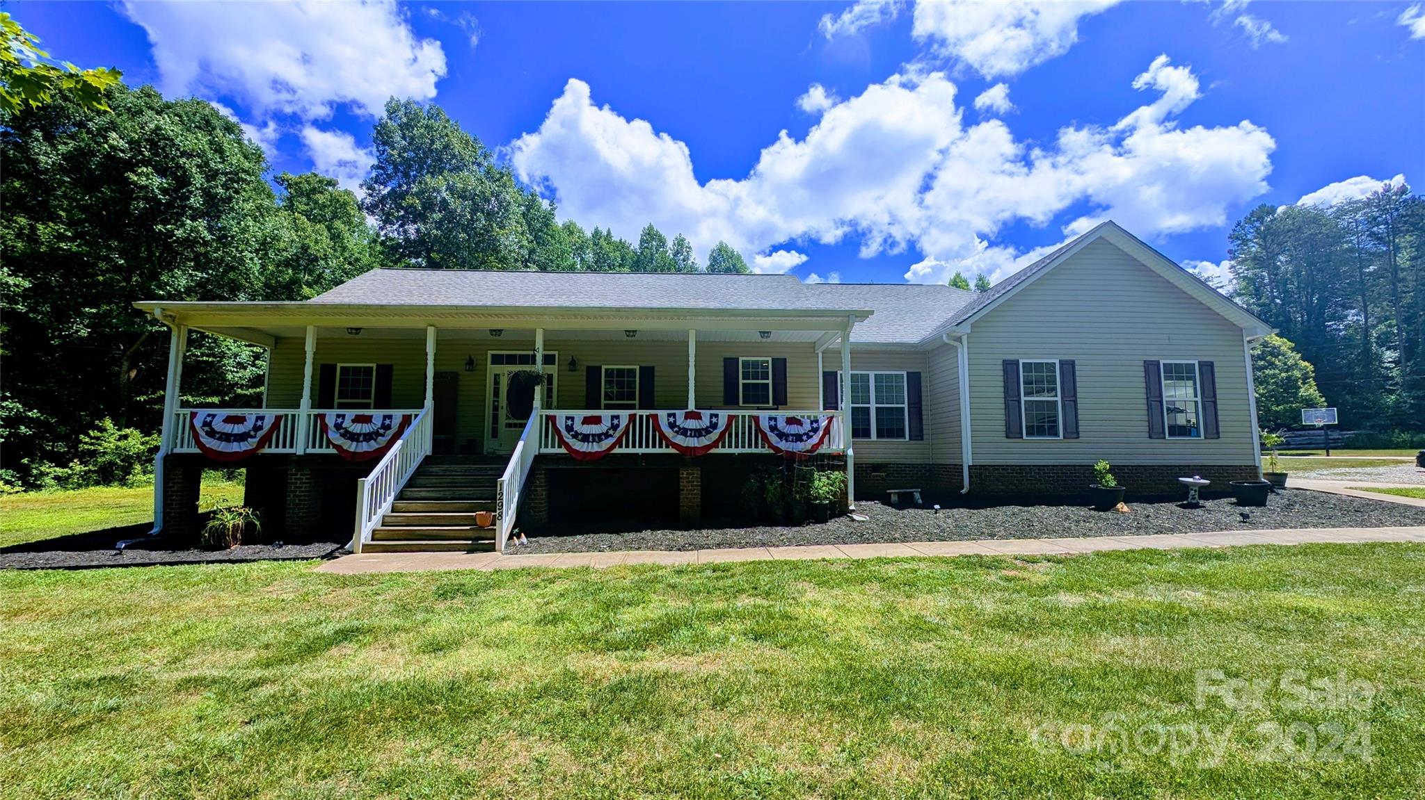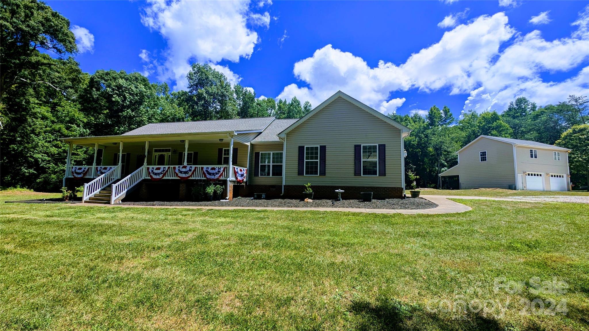 AGENT OWNED Come relax on the very large rocking chair front porch and enjoy nature's surroundings. This 3 bedroom, 2 bath home w attached 2 car garage sits on 12.74 acres. Enter to beautiful hardwood floors and a vaulted great room with a cozy fireplace. The kitchen features 42" cabinets with granite counter tops and large breakfast bar. Large master bedroom with a trey ceiling and his & hers closets. Master bathroom features dual sinks and dual shower heads. A serene creek runs the perimeter of the property! Brand new septic tank installed 7/25 now supports ALL 5 bedrooms. Food plots planted attracts the deer and turkey. Trails to walk or ride run through the entire property. Endless possibilities exist in the 2 car detached garage located next to the main house, recently finished w/ 2 bedrooms, 1 bath, laundry, and kitchen above. Outbuildings include a large barn (5 stalls and hay racks), storage shed w/ 2 garage doors, and 2 fenced in pastures so bring your animals! JUST REDUCED!