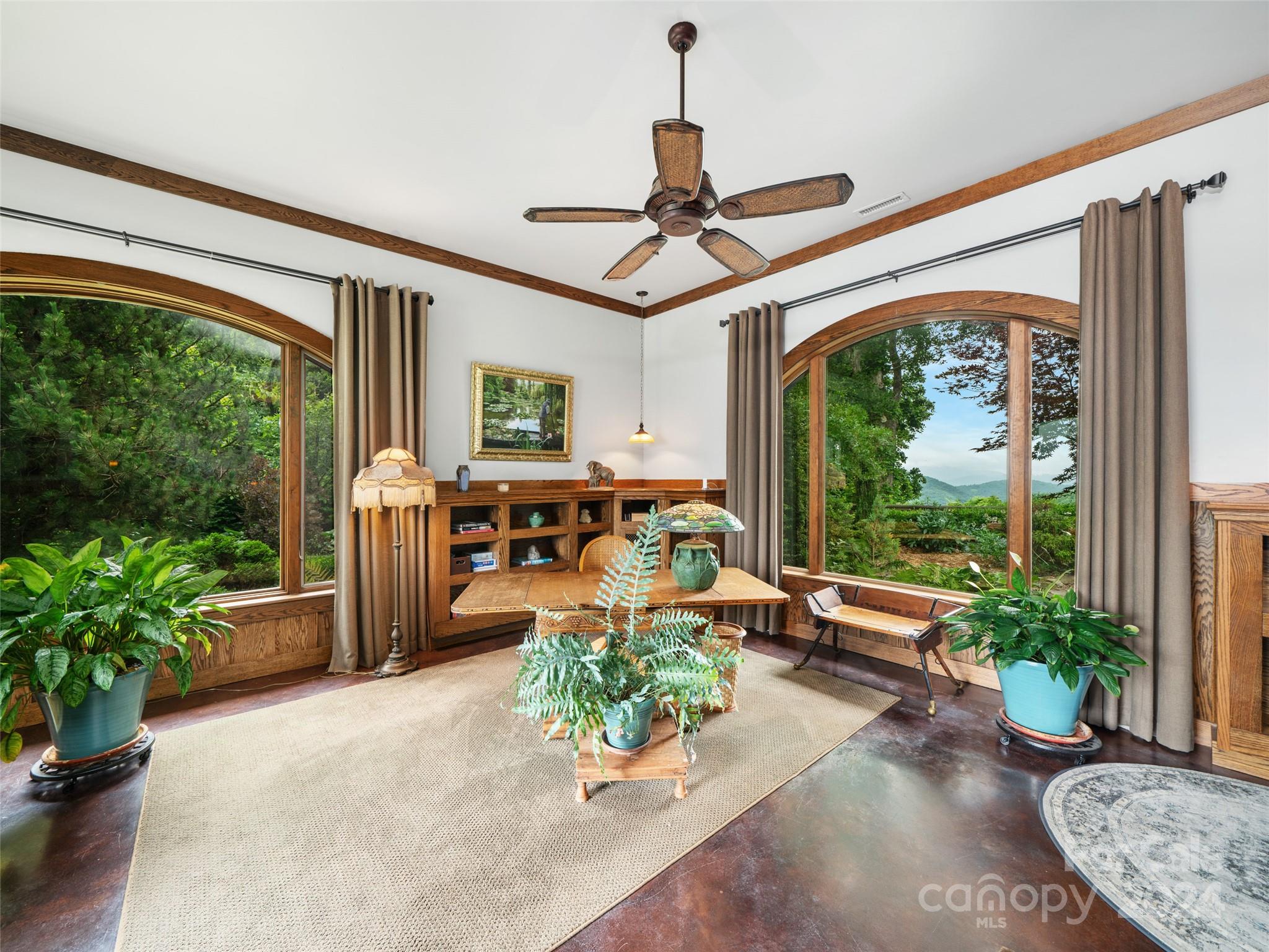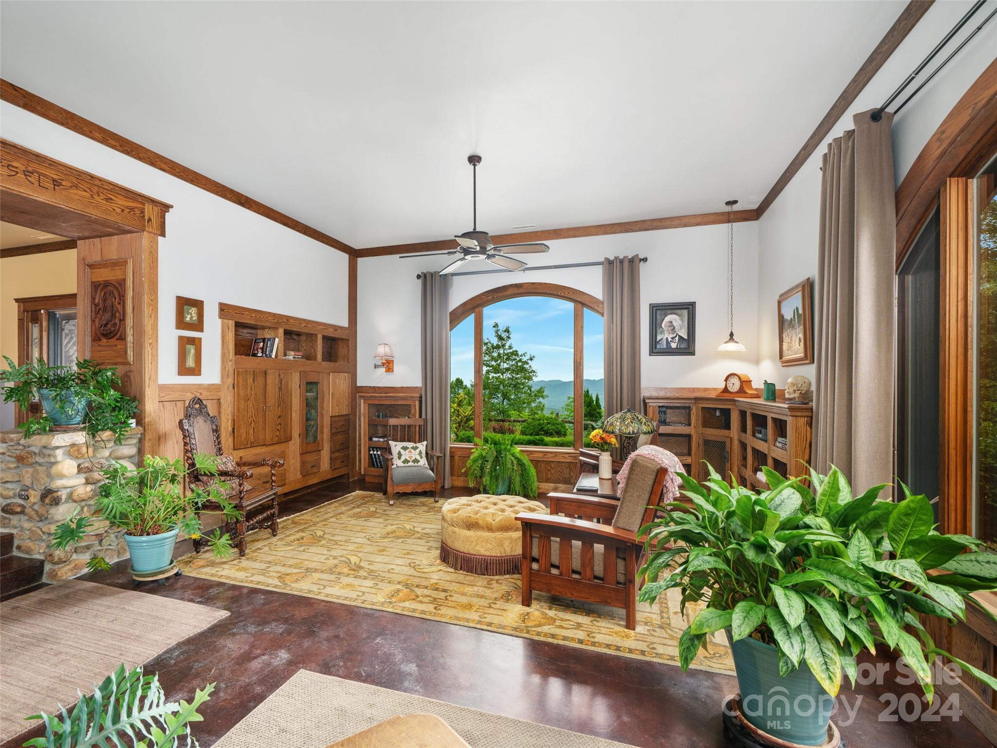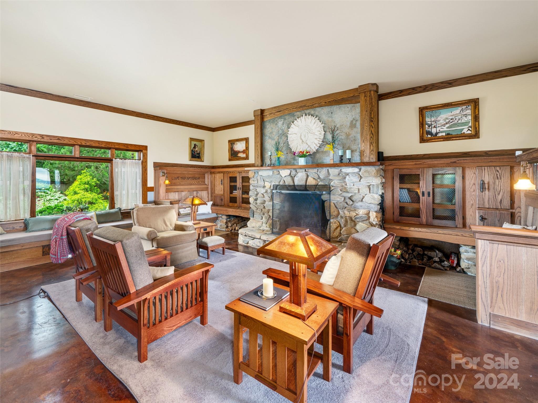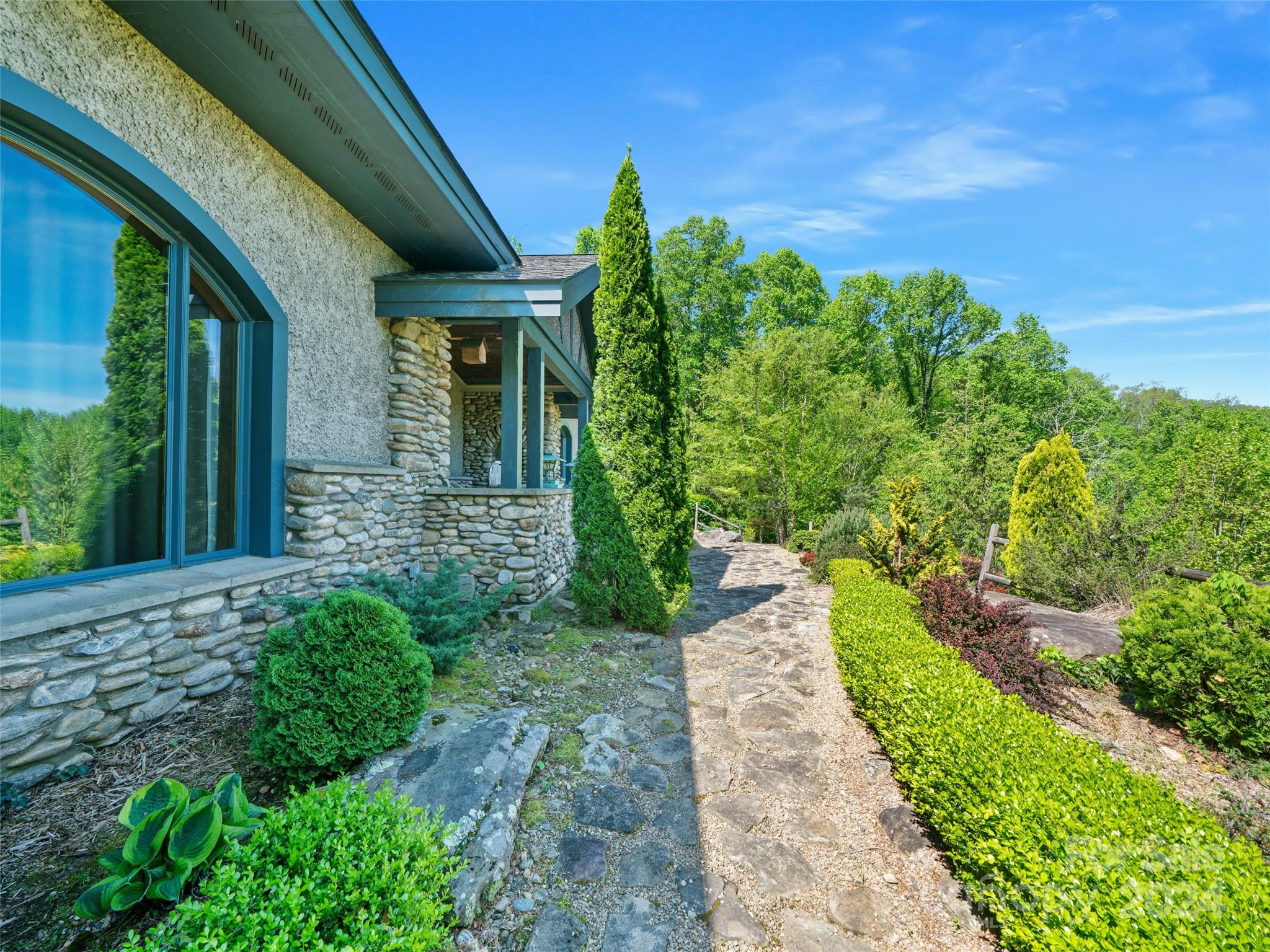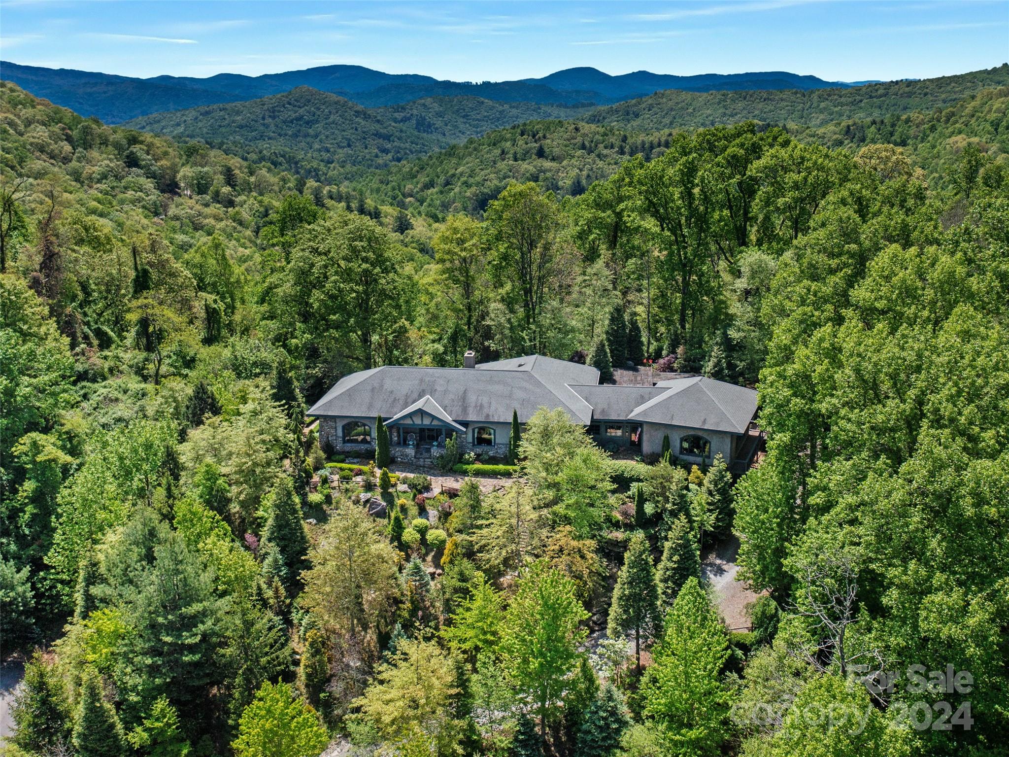 Discover a haven nestled on 3 acres of pristine land, offering sweeping mountain vistas and a luxury home reminiscent of the historic Grove Park Inn. Crafted with meticulous attention to detail, this custom-built residence exudes the timeless charm of the Arts & Crafts movement, seamlessly blending with its natural surroundings in a secluded mountain setting. Custom finishes adorn every corner, with hand-built Oak bookcases, trim, and cabinets, all complemented by in-floor radiant heat and expansive windows that seamlessly integrate the beauty of the mountains. Immerse yourself in the tranquility of the well-established rambling garden or find inspiration in the expansive artist studio with a wall of windows, all behind secure gated access. Conveniently located just 15 minutes from Downtown Asheville and a mere 7 minutes from Blue Ridge Parkway access, this property offers the perfect balance of privacy and accessibility. 111 Flora Rose Trail is more than a home; it’s a lifestyle.