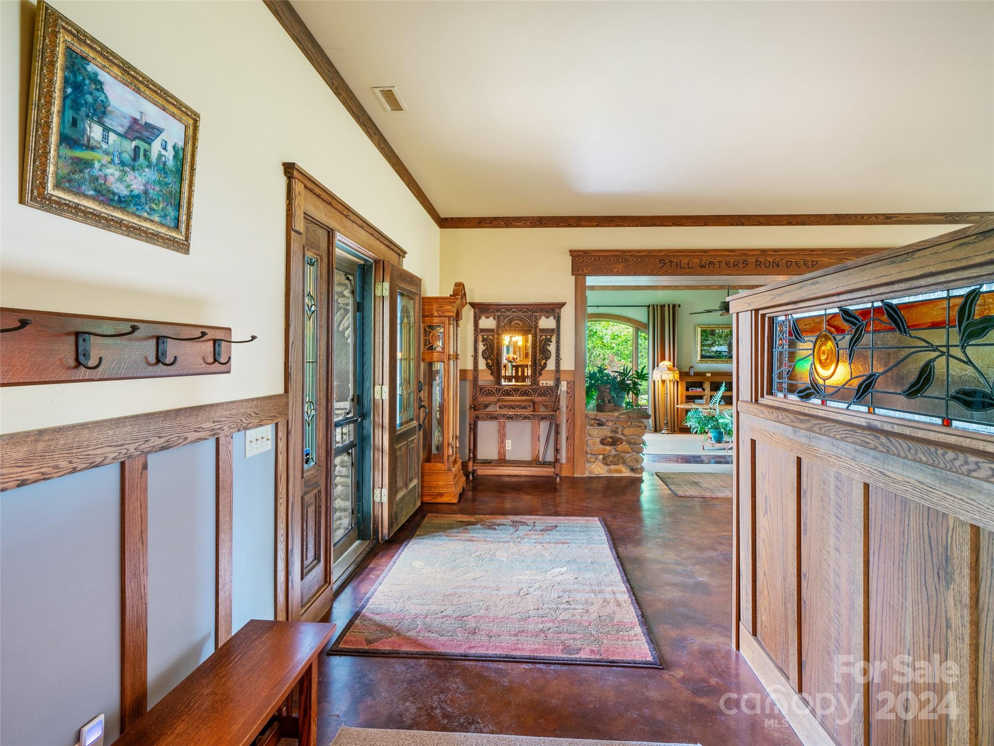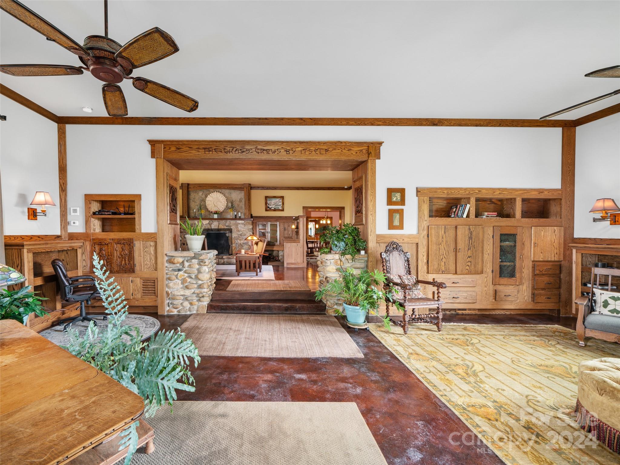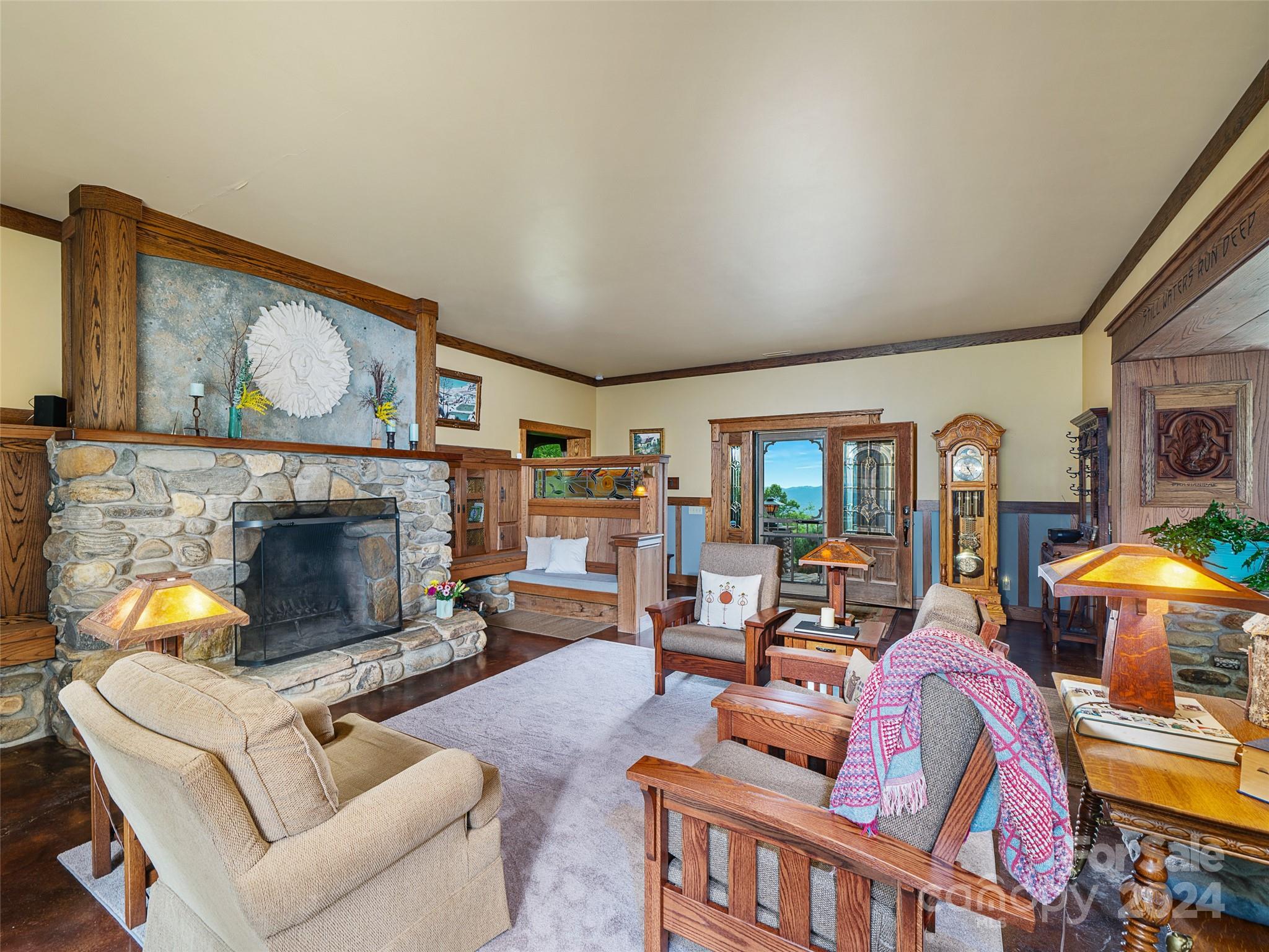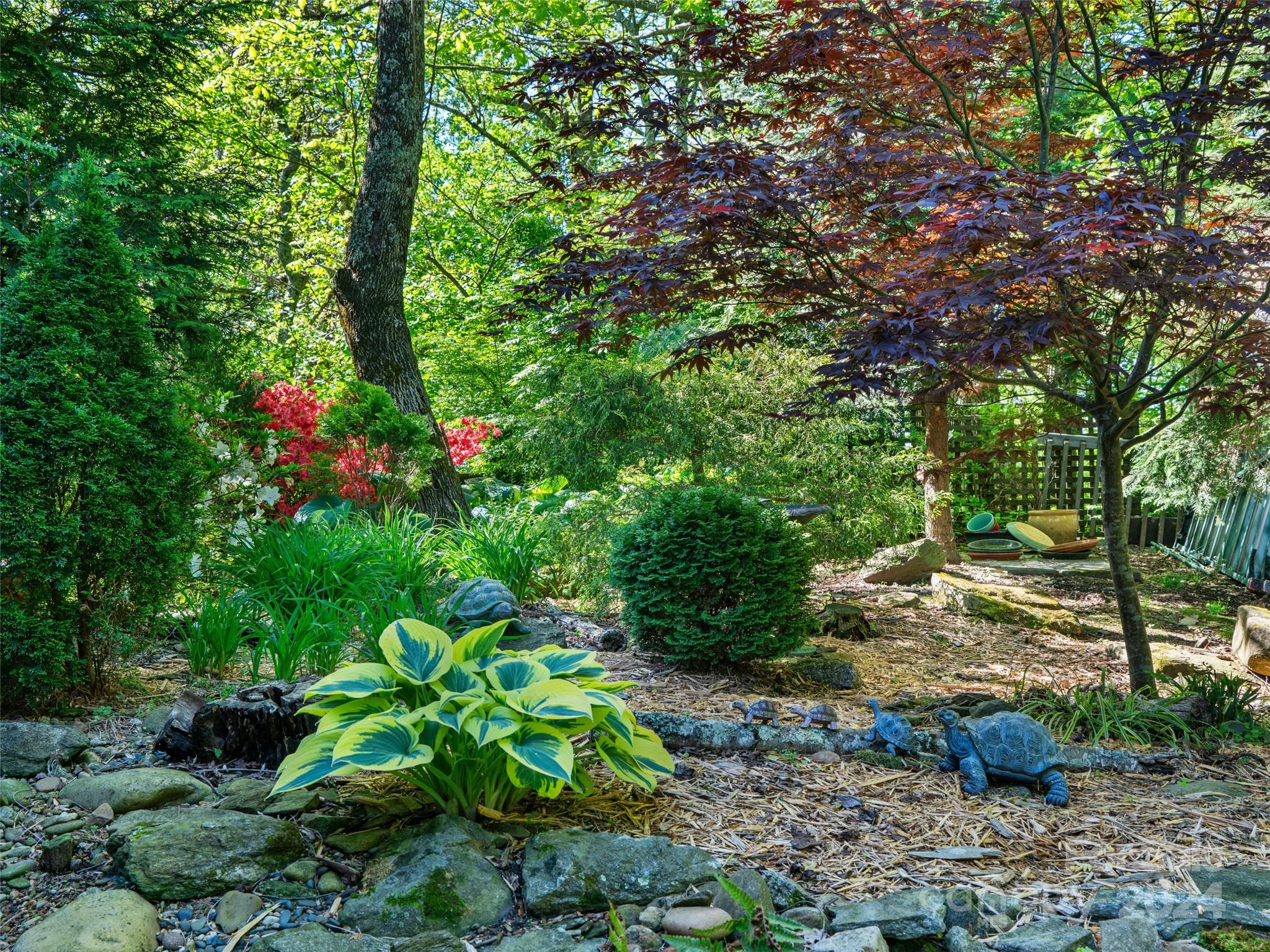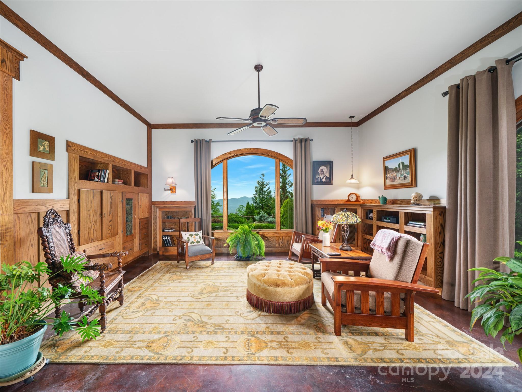 Discover a haven nestled on 3 acres of pristine land, offering sweeping mountain vistas and a luxury home reminiscent of the historic Grove Park Inn. Crafted with meticulous attention to detail, this custom-built residence exudes the timeless charm of the Arts & Crafts movement, seamlessly blending with its natural surroundings in a secluded mountain setting. Custom finishes adorn every corner, with hand-built Oak bookcases, trim, and cabinets, all complemented by in-floor radiant heat and expansive windows that seamlessly integrate the beauty of the mountains. Immerse yourself in the tranquility of the well-established rambling garden or find inspiration in the expansive artist studio with a wall of windows, all behind secure gated access. Conveniently located just 15 minutes from Downtown Asheville and a mere 7 minutes from Blue Ridge Parkway access, this property offers the perfect balance of privacy and accessibility. 111 Flora Rose Trail is more than a home; it’s a lifestyle.