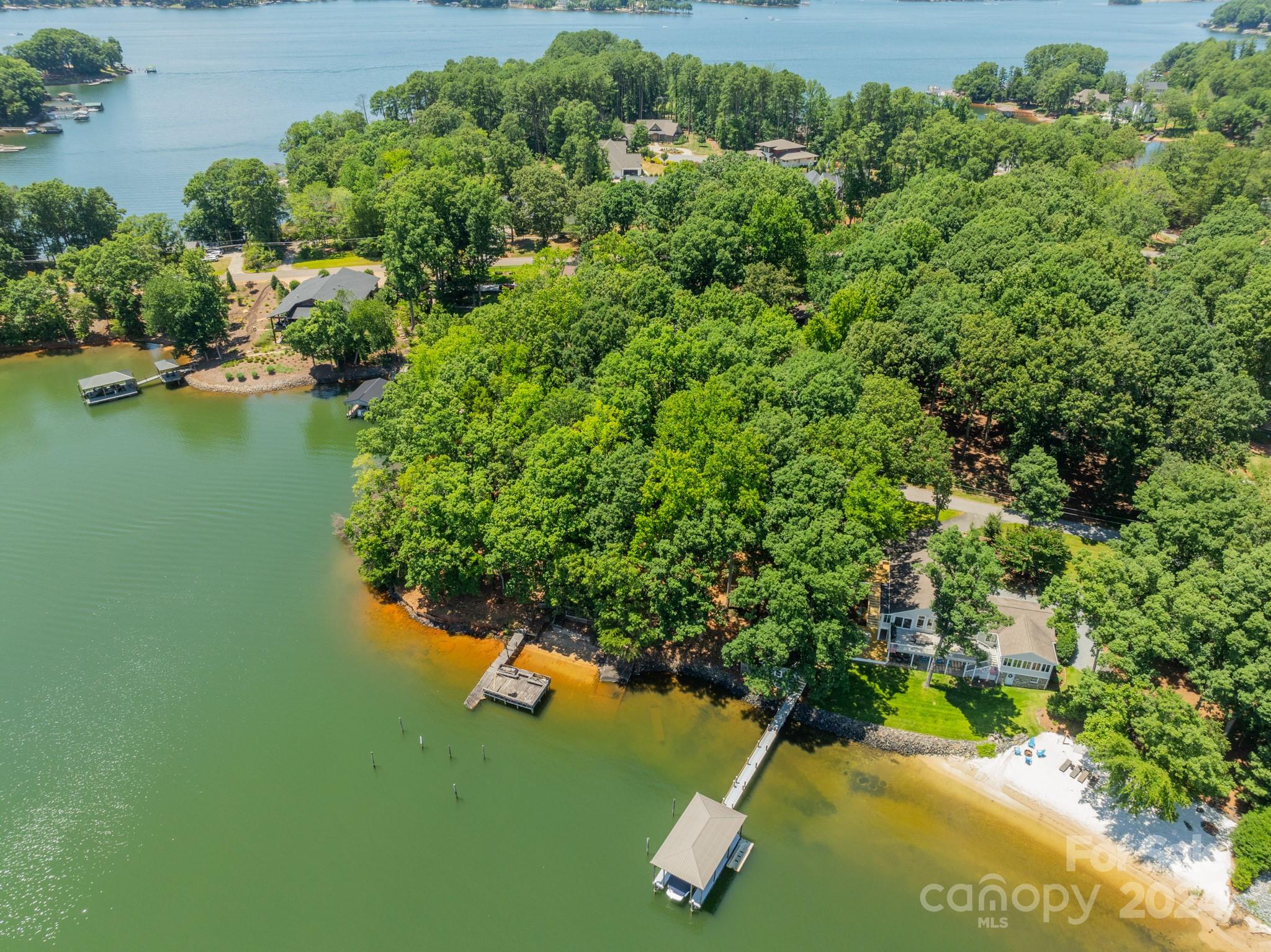 Experience unparalleled panoramic views of Lake Norman from this premier waterfront lot at the end of the esteemed Brawley Peninsula. This tranquil .77-acre property, nestled among mature trees, offers breathtaking vistas. With 343 feet of deep-water shoreline, a rare natural sandy beach, and a grandfathered boat ramp, this lot provides an exceptional opportunity for waterfront living. Located on a quiet, private road, the property includes a 4-bedroom septic permit with an 8,000 sq ft building envelope, ideal for constructing a large home with ample space for a pool. The existing home on the property will need to be removed. Conveniently located near Trump National Golf Club, this property is a must-see for those seeking the pinnacle of lakefront living.