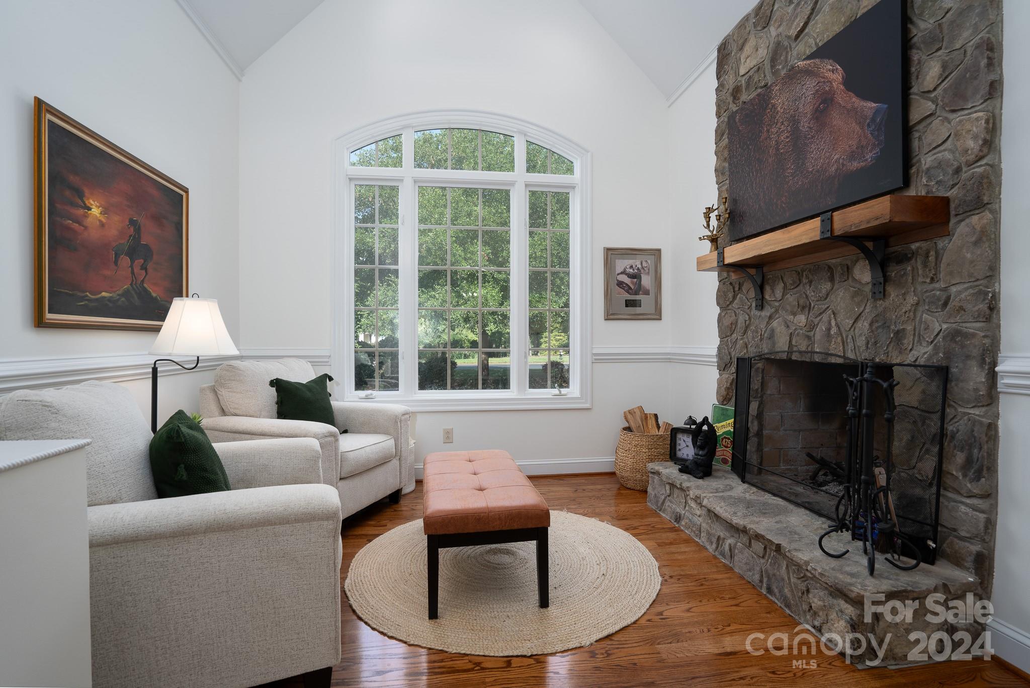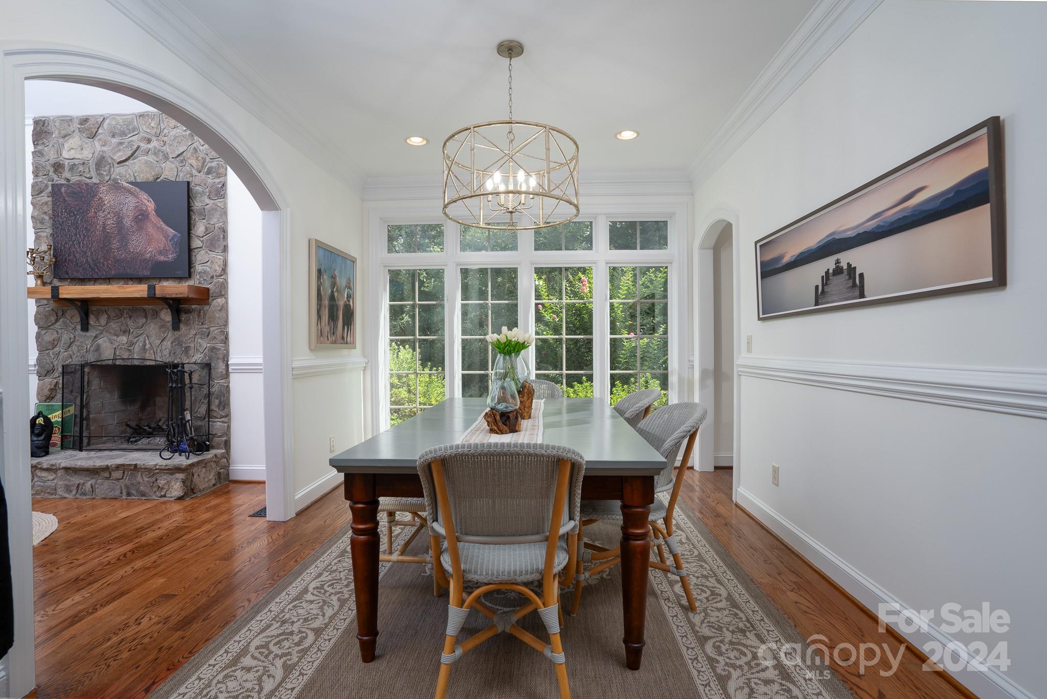 Welcome home to 234 Glenbrook Springs within the Old North State Club gated community! Don't miss this open floorplan w/practical living space. The kitchen is open to a bright, airy den w/incredible vaulted ceiling over a bay window seating area. Step outside onto the porch to grill & take in elevated views of the lush, private backyard. Gorgeous owner's suite w/bay window & porch access features a luxurious bathroom w/custom shower. Owner's walk-in closet features convenient reach-thru access to the laundry room countertop. Fresh secondary bedrooms w/updated baths. Dining room is open to an impressive living room w/stone fireplace, perfect for entertaining. Spacious lower level w/natural light includes game/seating area w/bar, cozy theater room & add'l bed/bath. Covered terrace along lower level. Bonus room currently being used as a bunk room. 2-car attached garage. Join the Club to enjoy the newly renovated Tom Fazio championship golf course, dining, pools, fitness, courts & more!