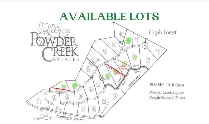 Amazing opportunity to own your own Custom Built Home. Buyer will have a multitude of options to customize this home with choice of finishes and fixtures. Powder Creek Estates backs up to Pisgah National Forest and provides outstanding views. Excellent location in Henderson County with an Arden address only 10 minutes from the Asheville Airport, 7 Minutes from Ingles and only 5 Miles to Biltmore Town Square.