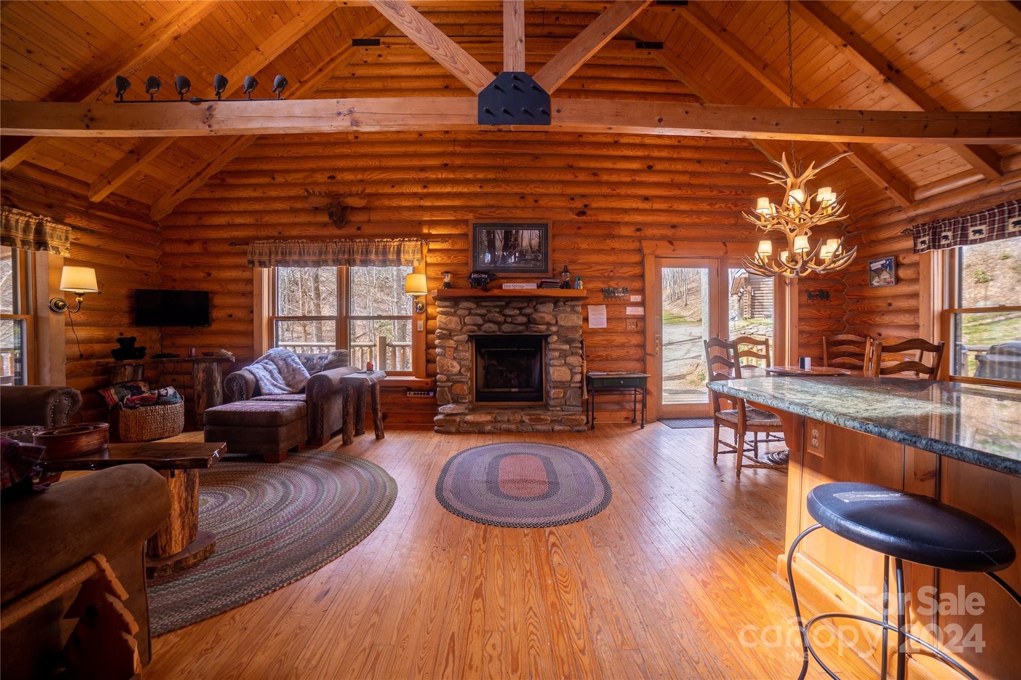 Located in the quaint little community of Trust, just outside of Hot Springs, NC, lies this beautiful 200+/- acres with a modern log home! The property has a wooden walkway leading down to a huge deck overlooking the beautiful Charlotte Branch, that originates on the property! With the cabin being located deep into the property, the nearly half mile long driveway gives you privacy like none other. Winding through this property are many ATV trails that will take you to almost every corner from the bottom to the top, with elevations ranging from 3,000' to over 4,000'! The cabin is currently in a rental program, being booked constantly, and is bringing is a healthy revenue stream. Imagine sipping a warm cup of coffee on the porch of this log cabin in every season of the year, from beautiful spring mornings, to cool Summer nights around the fire, colorful Fall days, or watching the snow fall in the Winter. You'll be surrounded by 200+/- acres of pure Smoky Mountain Bliss!