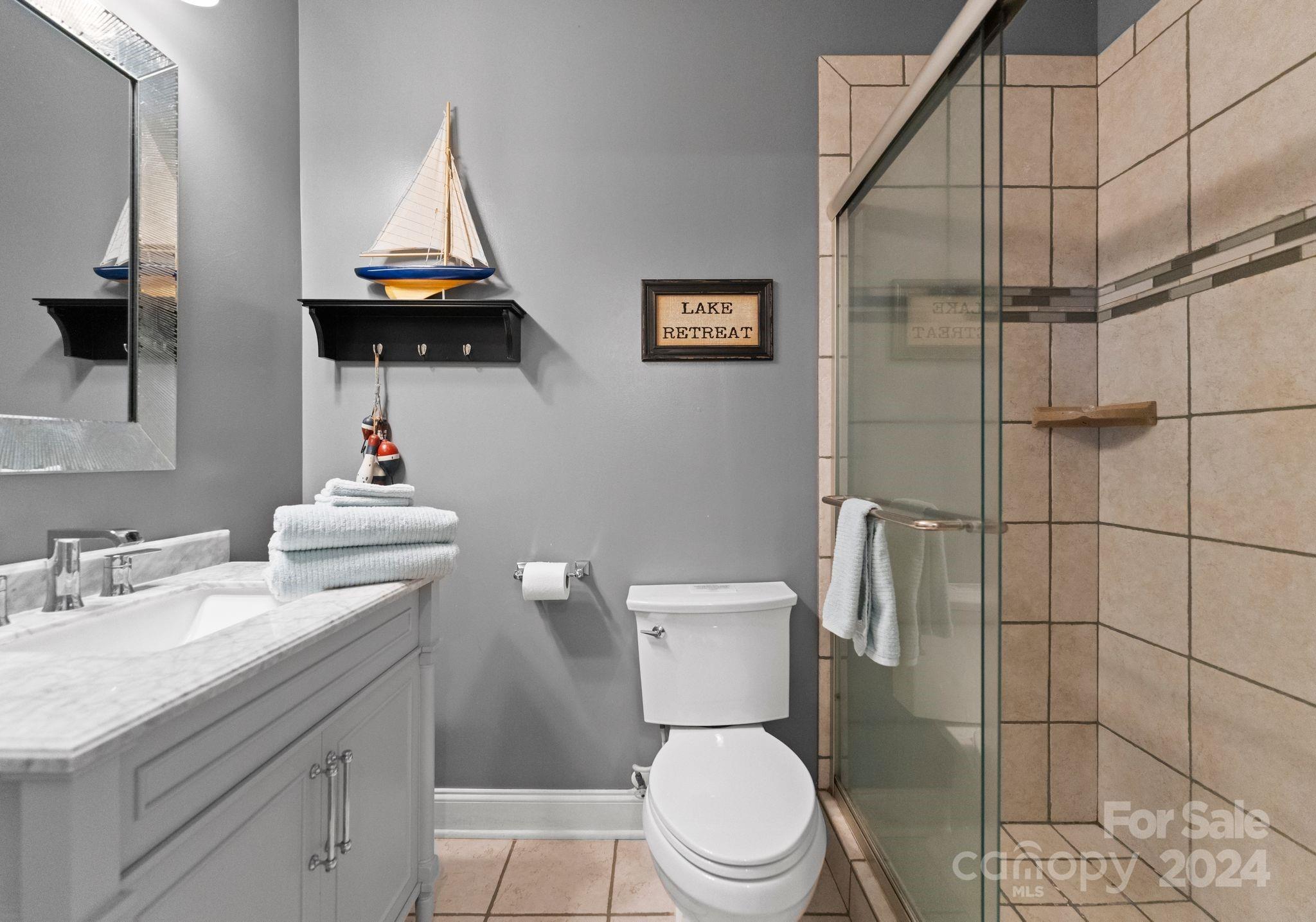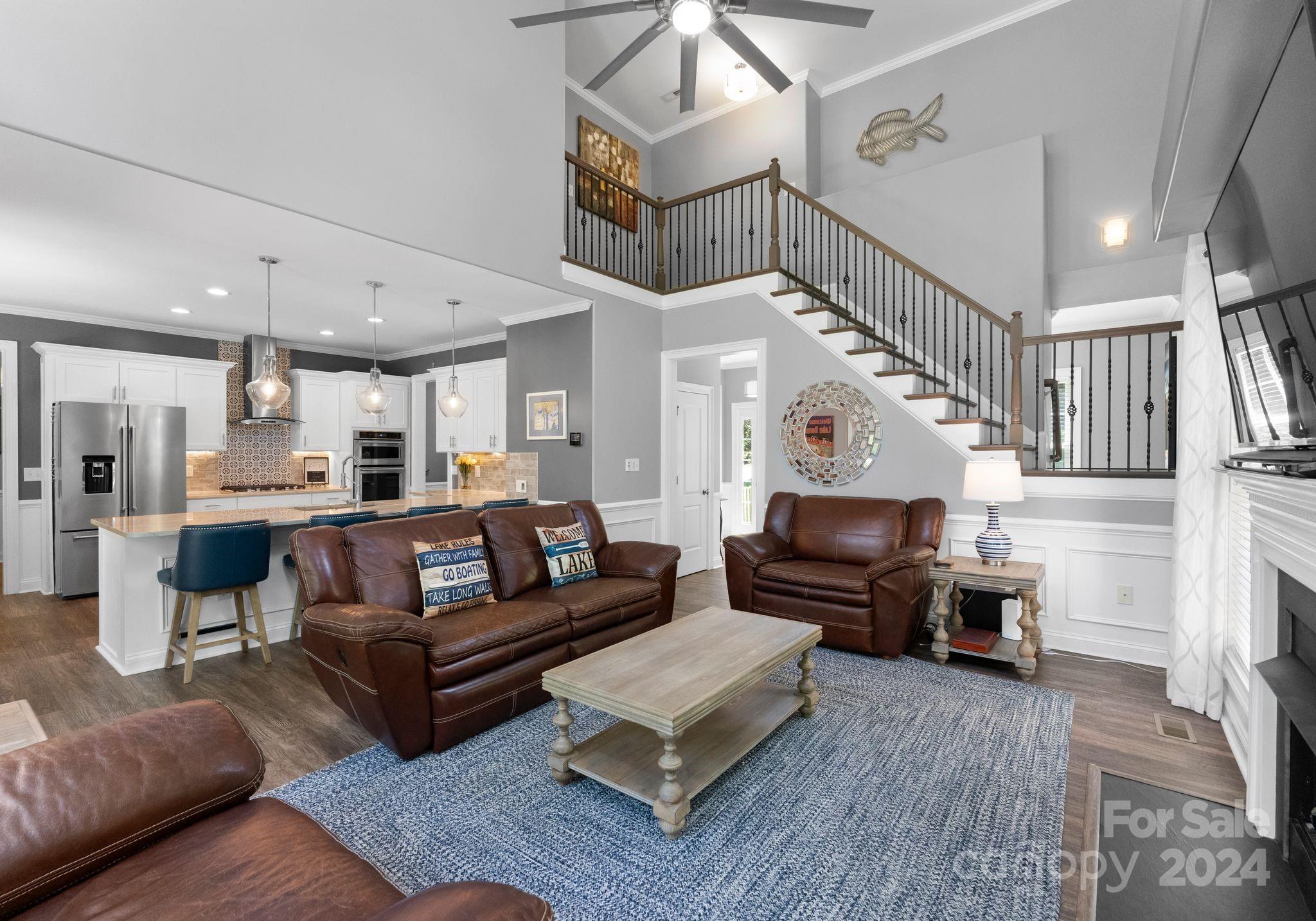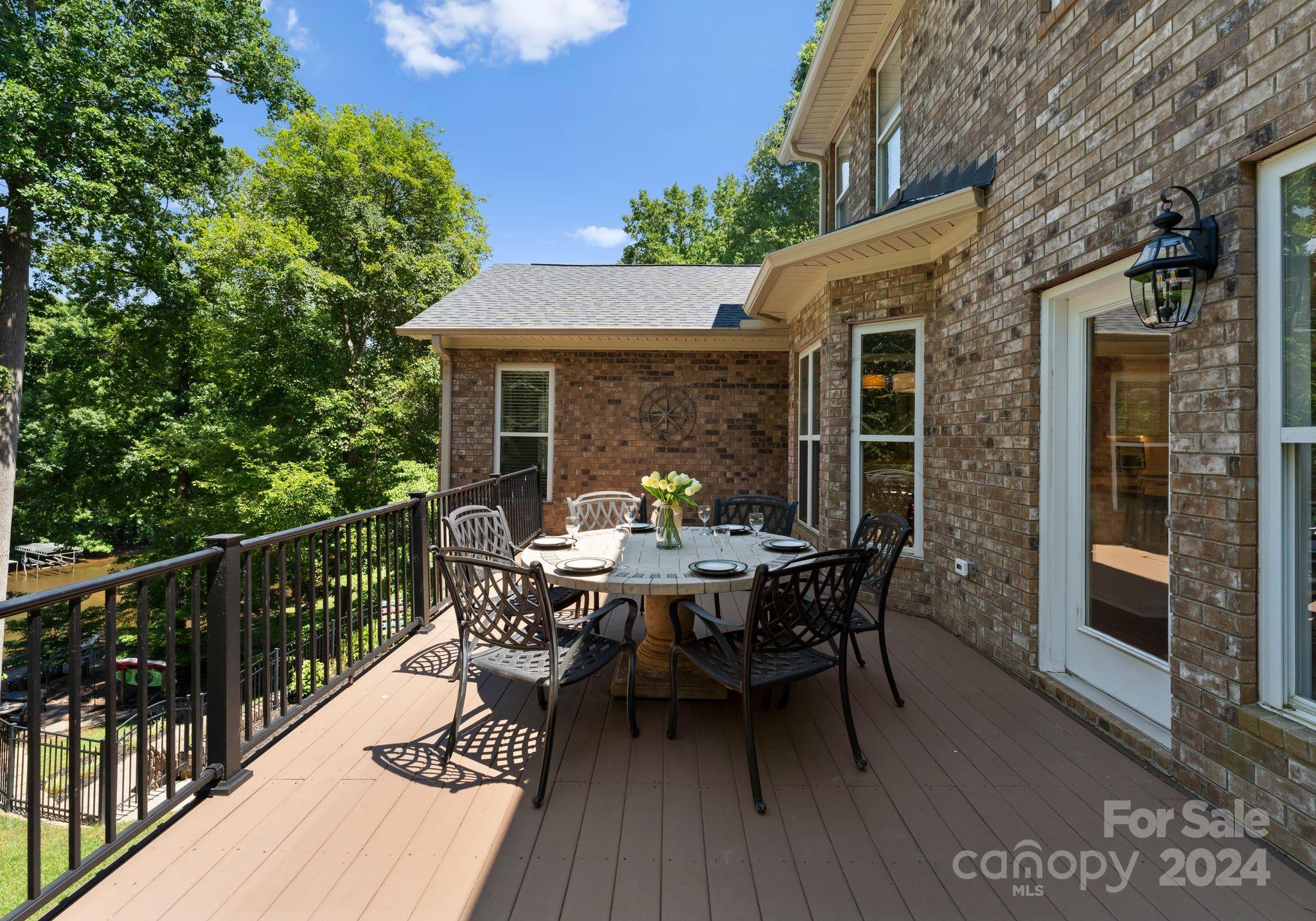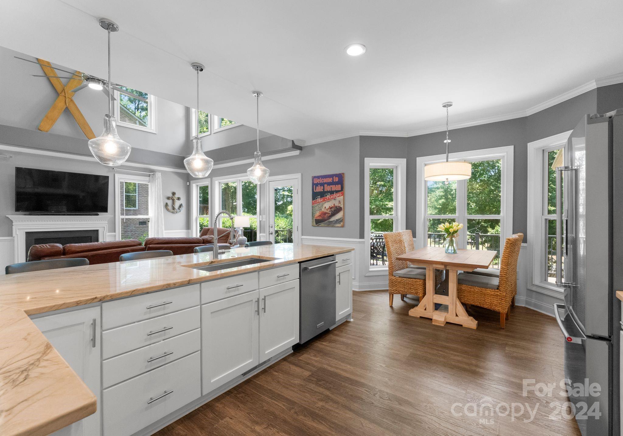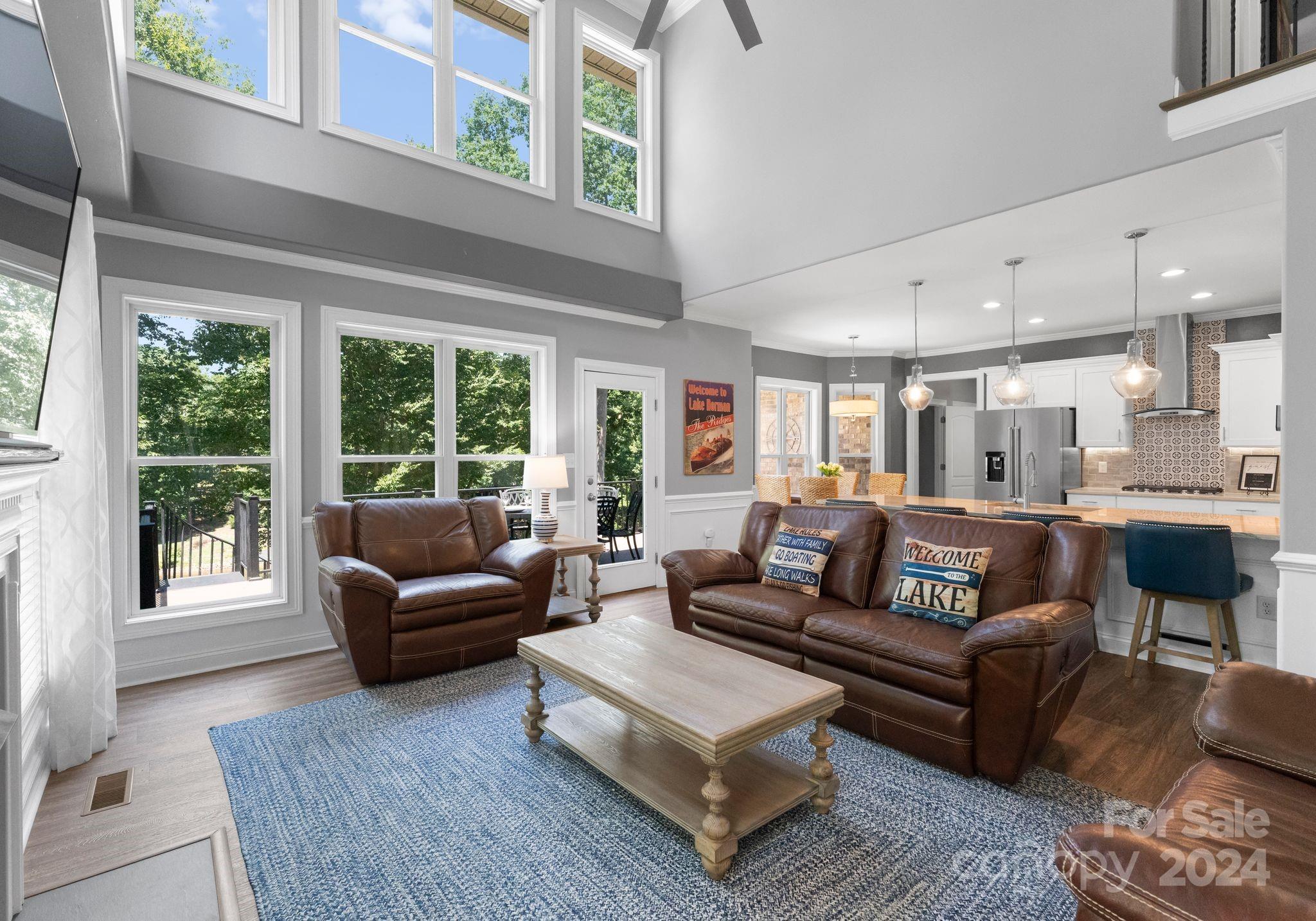 TURN KEY-Most FURNITURE INCLUDED w/home. Stunning full brick WATERFRONT home w/ NO HOA spanning three levels! The kitchen boasts white cabinets, elegant countertops, a stylish backsplash, stainless steel appliances, & modern lighting. The Dining Room features wainscoting, & the Two-Story Great Room w/ ceiling fan provides a grand ambiance. The main level also includes a spacious Primary Suite w/ lake views & large office. Luxury Vinyl Plank Flooring extends throughout the home. The second level includes two sizable rooms & bonus room. The lake level features Second Living Quarters w/ a Second Kitchen, generous family room, & two additional rooms that could serve as bedrooms. The home features a roof replaced in May 2024, along w/ newer HVAC units & newer water heater. Enjoy the breathtaking views from your deck, covered patio, or open paver patio w/ a firepit! The property includes a private dock, lakeside sitting area, & kayak storage & can fit a POOL with beautiful long-range views.