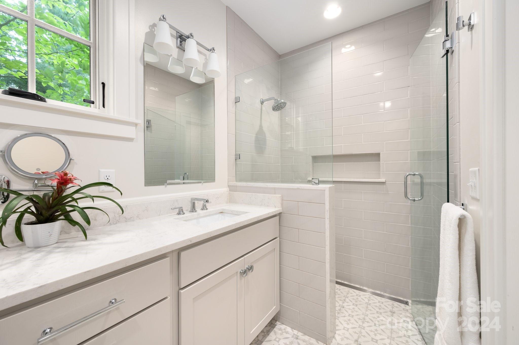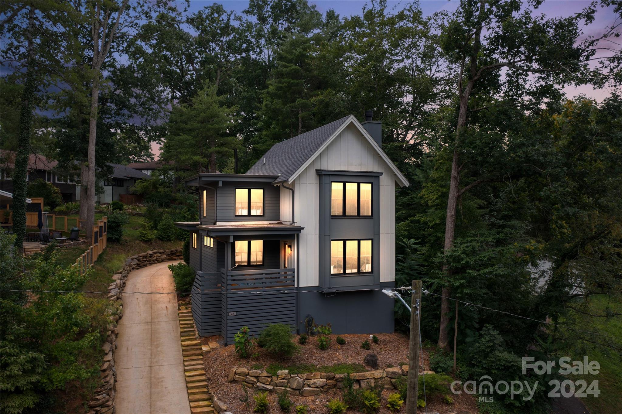HAS POWER & WATER! Property unaffected by the storm. Breathtaking modern home in Asheville’s historic Kenilworth. Well-maintained and move-in ready, this home boasts excellent proximity to neighborhood green spaces, including Forest Park, Kenilworth Park, and Chiles Park — offering endless opportunity for outdoor living. Centrally located and close to downtown Asheville, Biltmore Village, and Mission Hospital. Relax on the covered front porch, side/corner deck, and oversized bay window highlighting the spacious living room. Enjoy entertaining from the chef’s kitchen with high-end Viking appliances, spacious dining area, and open, flowing floor plan. Main-level primary bedroom is well appointed, with soaring ceiling and an ensuite full bathroom. Upstairs landing connects three bedrooms, a full bathroom, and two linen closets. Powder and laundry room on main level. Professionally landscaped yard, with lots of extra space for tool/toy storage in crawl area. See video for more details.