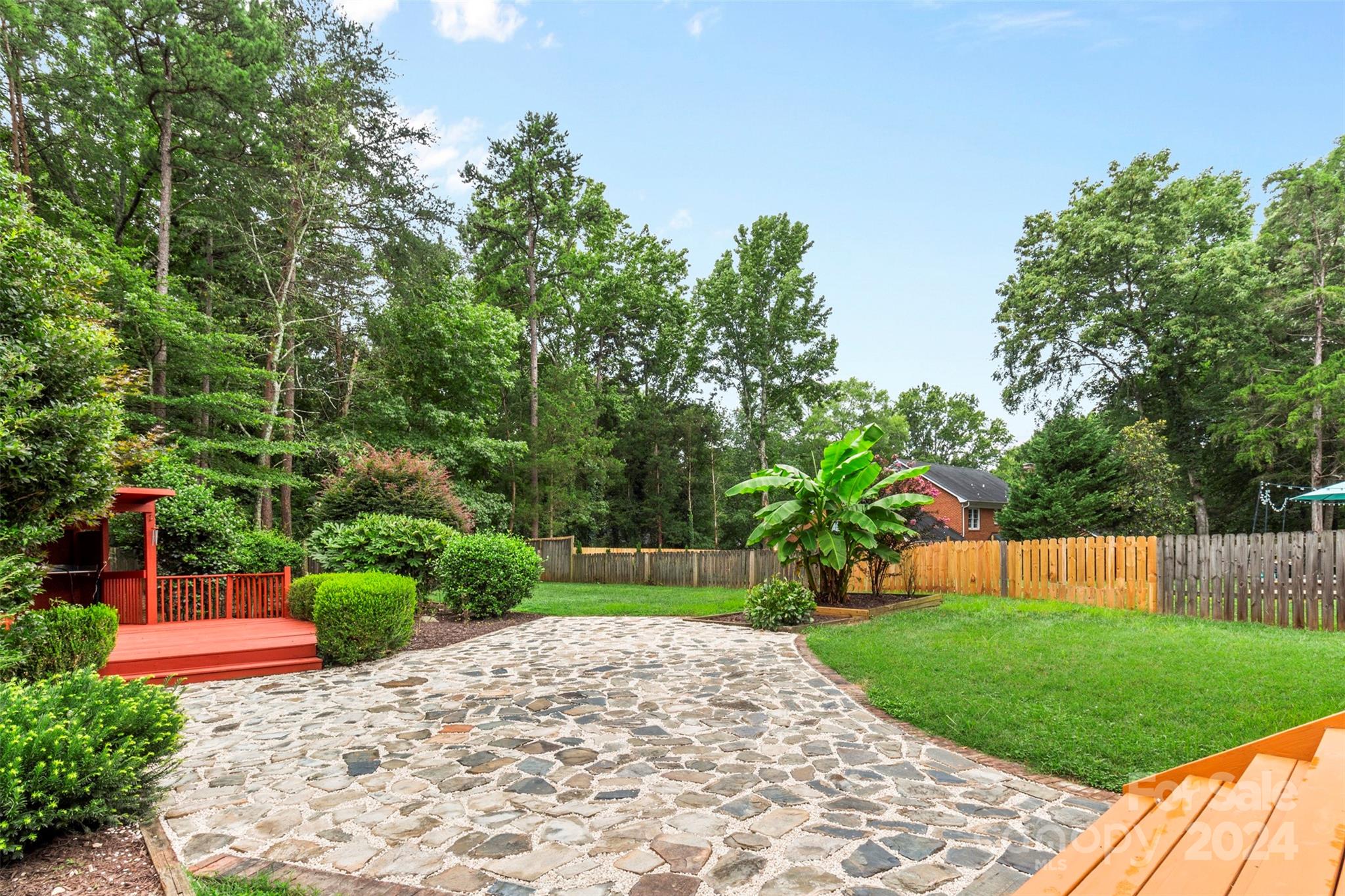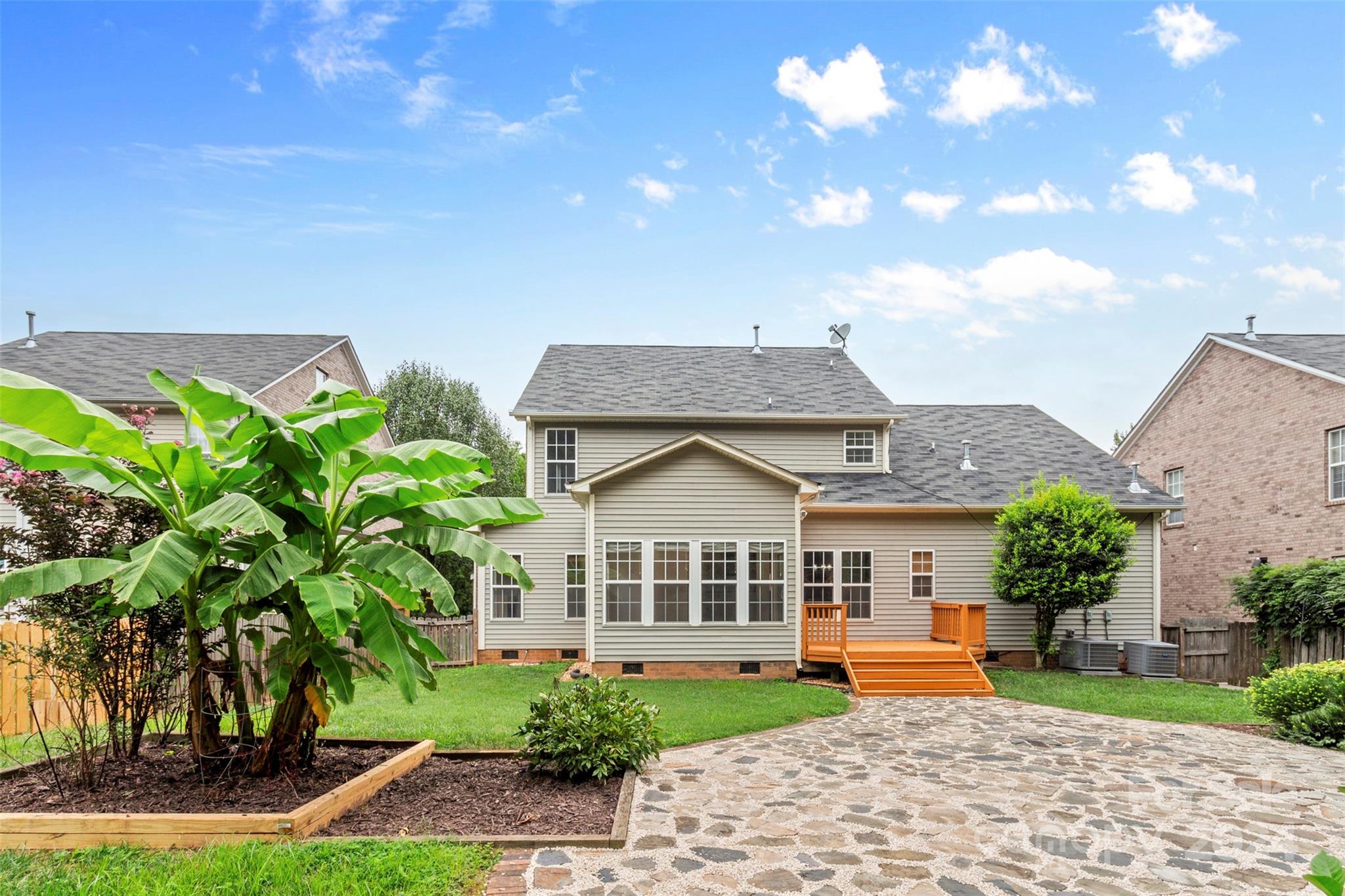 Gorgeous home in South Charlotte's Alexa Village at Berkeley! Prime cul-de-sac lot with tons of privacy & many impressive renovations. Brand new carpet, paint, & refinished hardwood floors throughout. Spacious kitchen boasts refinished cabinets, new hardware, granite countertops, tile backsplash & pull-out shelves. Upgraded appliances include an electric range w/ WiFi programming and built-in air fryer and new dishwasher (2024). Primary bath offers new tile flooring and walls, frameless glass shower, new vanity w/ quartz countertops & freestanding tub. Matte hardware, updated light fixtures, & stained handrails add modern appeal. Plenty of storage throughout. Bright sunroom overlooks a private backyard with lush greenery, two decks and a slate patio. Upstairs HVAC replaced in 2020. Gutterguards included for easy maintenance. Zoned for top-rated schools, conveniently located near 485, and under 5 min to Promenade on Providence shopping center! Contact us to make this your dream home!