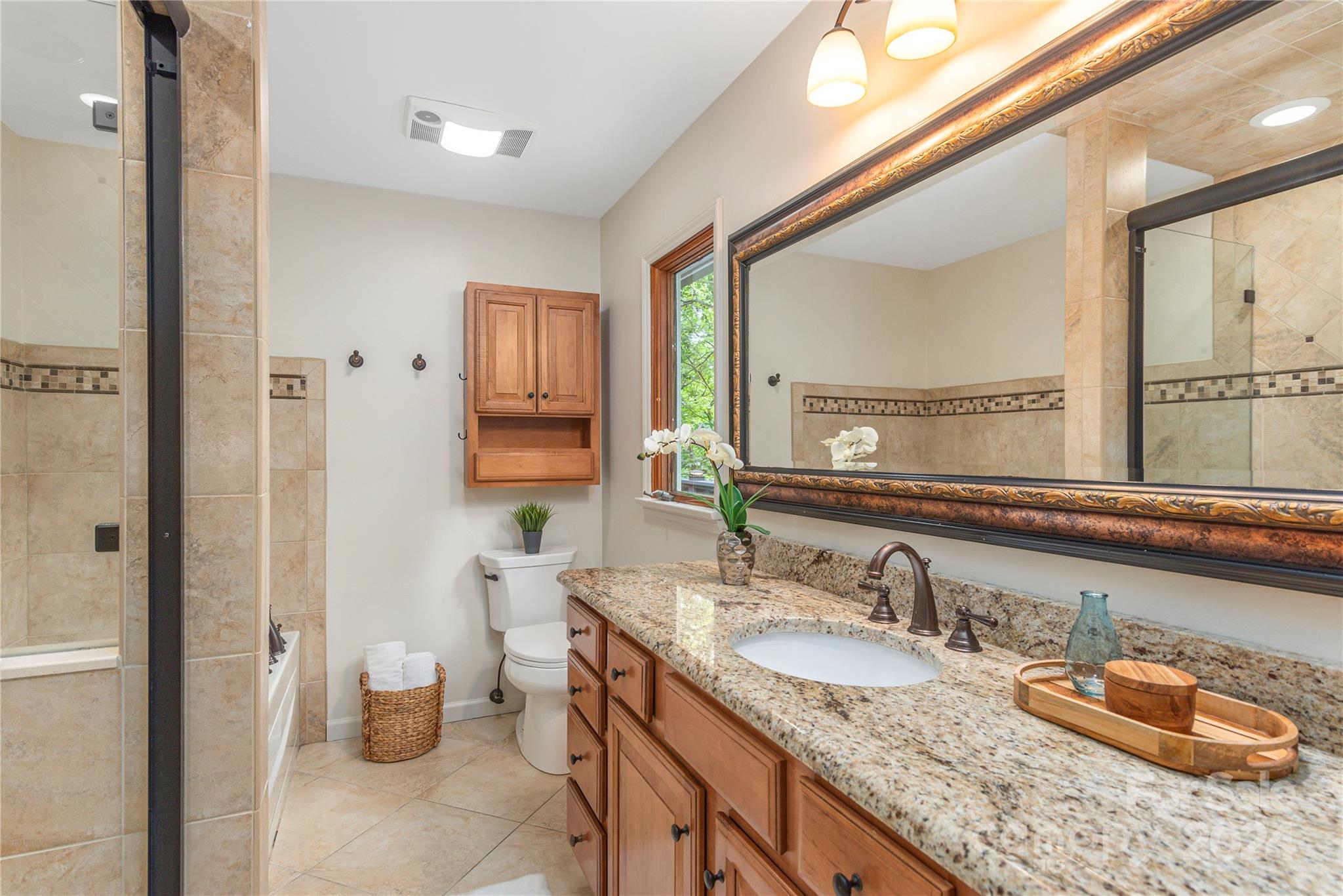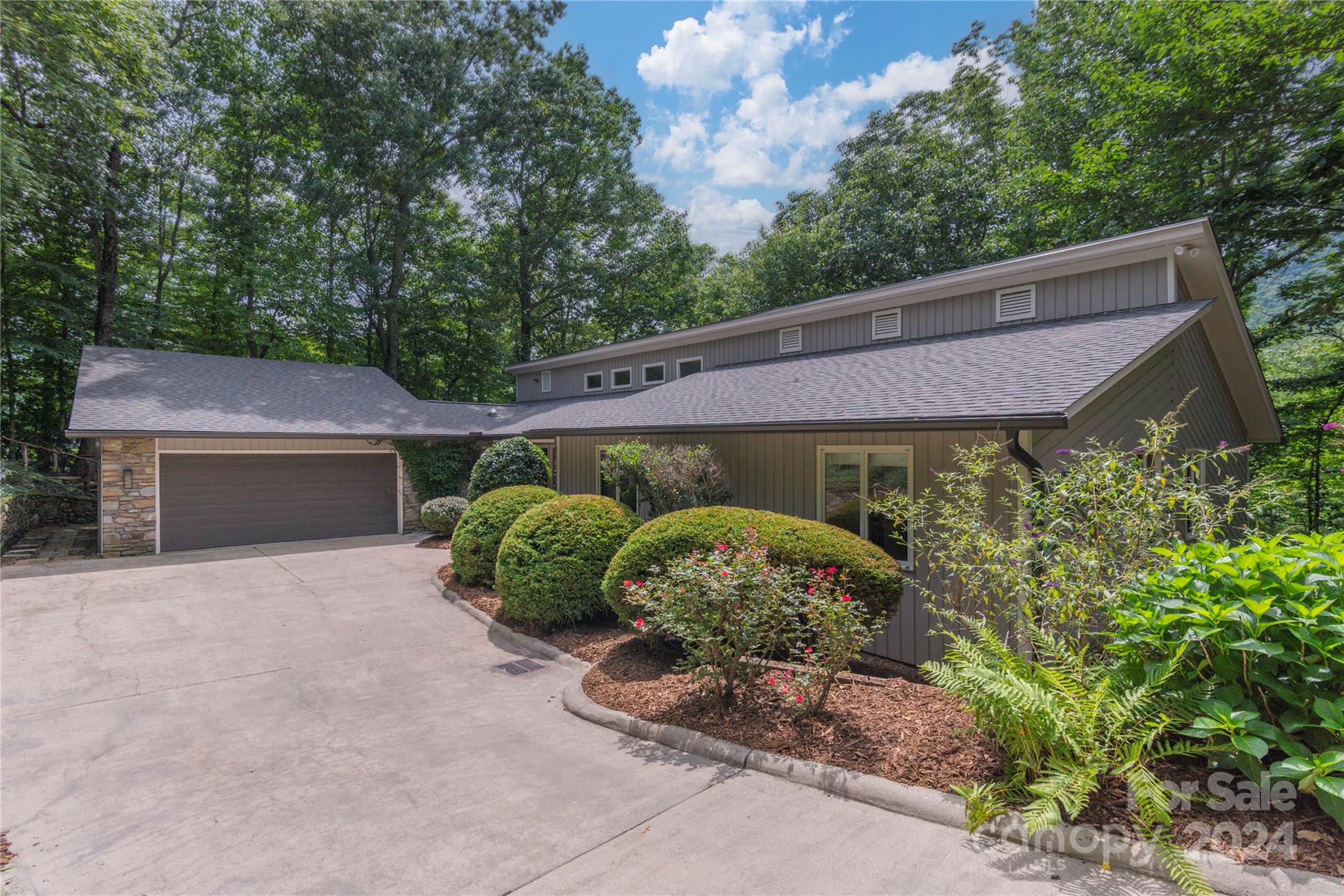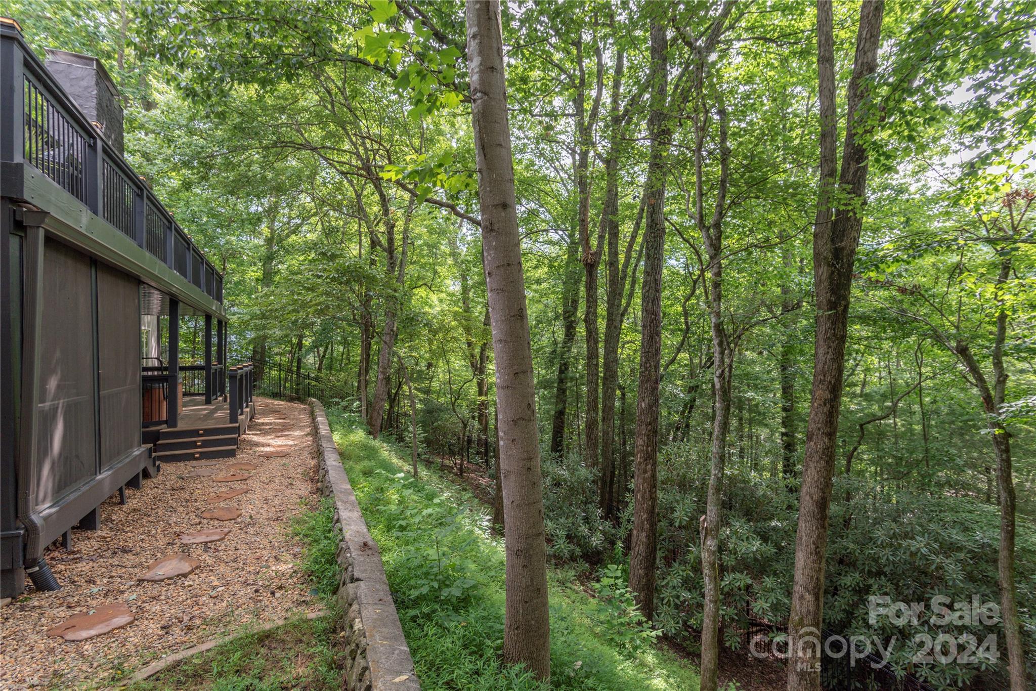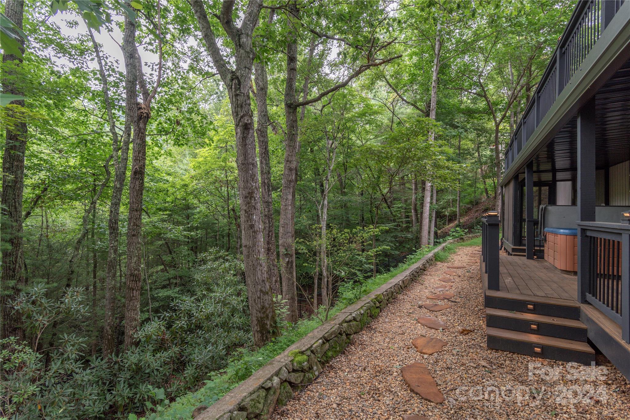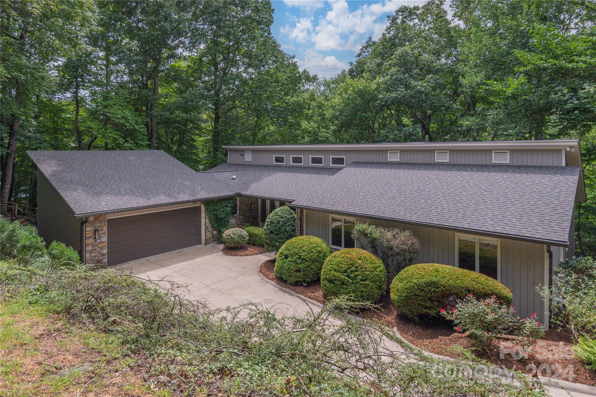 Nestled in the lush Sondley Estates, this 5-bedroom home blends modern elegance with natural charm. Located minutes from the Mountain-To-Sea Trail and 6 miles from downtown Asheville, this home offers tranquility & convenience. Solid wood doors, modern touches, and recent updates enhance the home's appeal. Stone fireplaces on each level add warmth, while a sunny kitchen & breakfast bar open to spacious back deck & patio for effortless outdoor living. (Spacious bedrooms can alternatively serve as home offices). Recent upgrades include painted cabinetry, composite decking, a 40-year shingle roof, and 6” gutters. Enjoy modern comforts with natural gas furnace, high-efficiency mini-splits in basement, and luxury carpet in the main bedrooms. Additional updates feature LVT flooring, refinished hardwood floors, LED lighting, private hot tub & ceiling fans. Experience contemporary comfort in this exceptional home — primary living/vacation getaways. OPEN HOUSE SUNDAY 8/18 2-4!