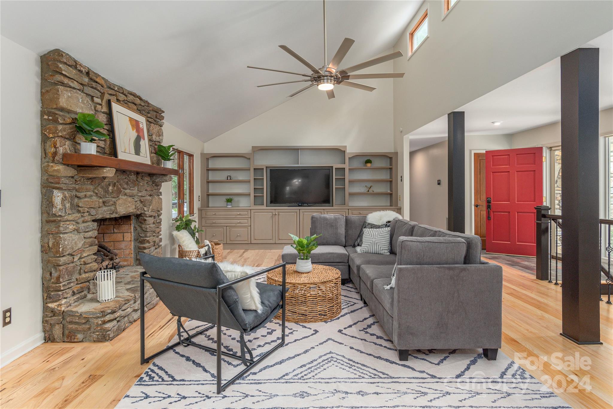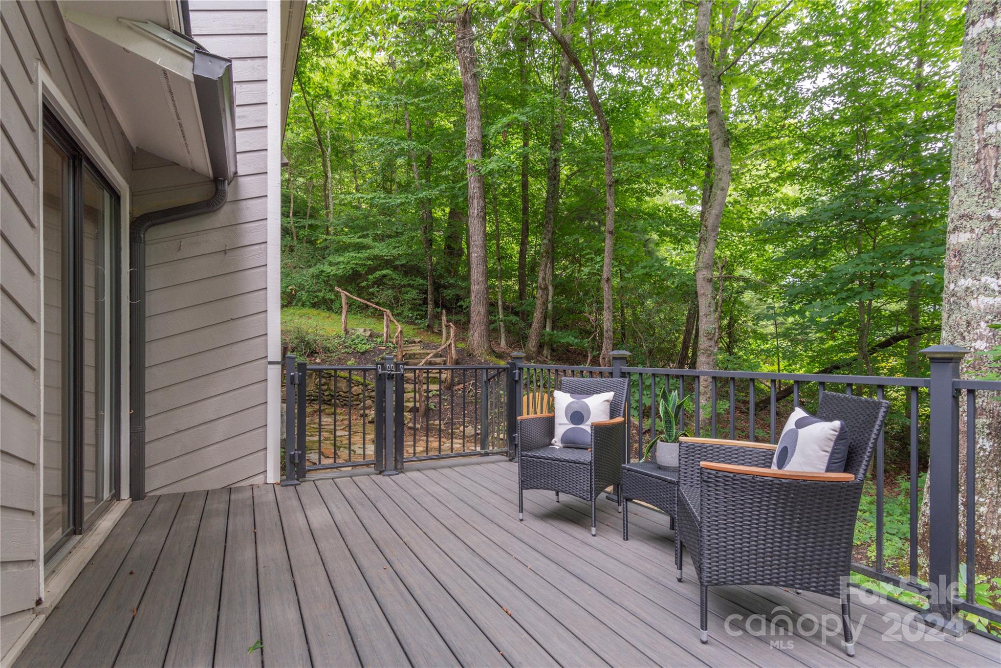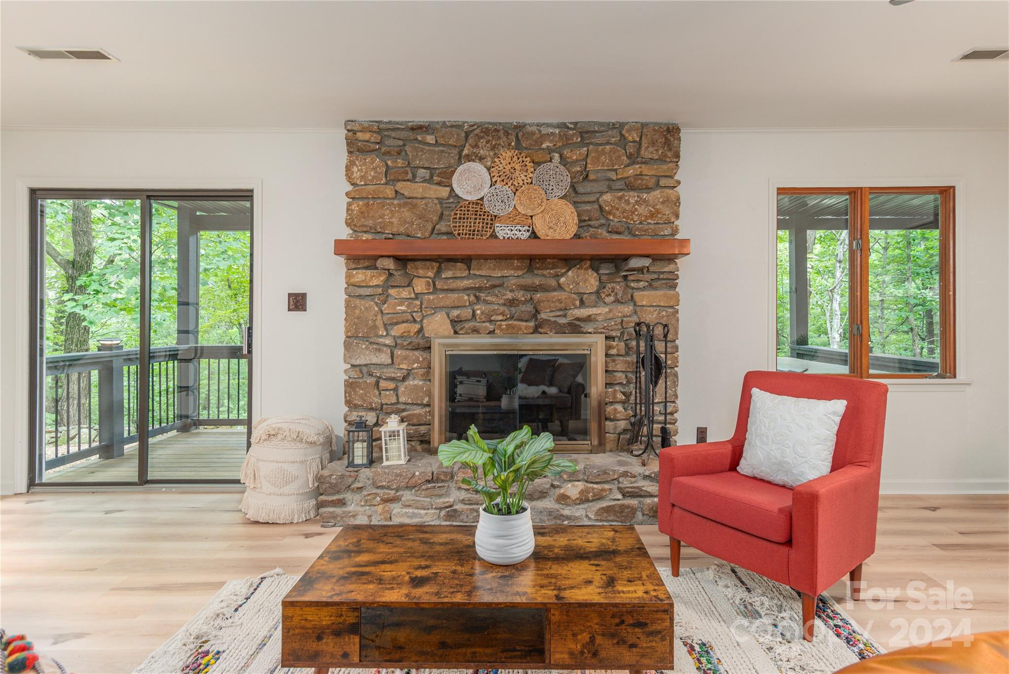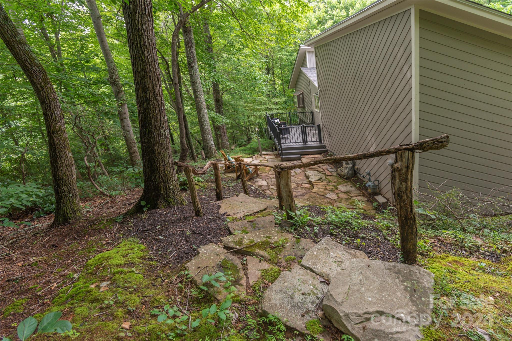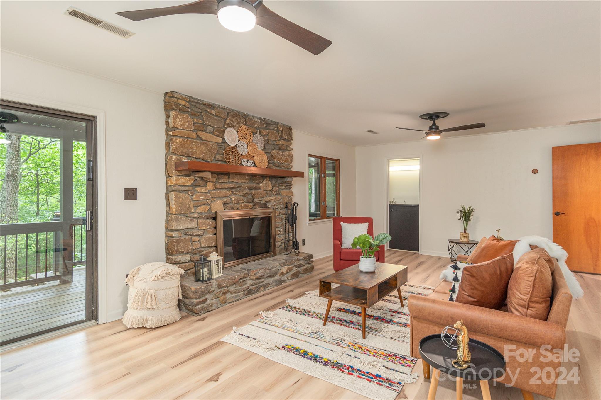 Nestled in the lush Sondley Estates, this 5-bedroom home blends modern elegance with natural charm. Located minutes from the Mountain-To-Sea Trail and 6 miles from downtown Asheville, this home offers tranquility & convenience. Solid wood doors, modern touches, and recent updates enhance the home's appeal. Stone fireplaces on each level add warmth, while a sunny kitchen & breakfast bar open to spacious back deck & patio for effortless outdoor living. (Spacious bedrooms can alternatively serve as home offices). Recent upgrades include painted cabinetry, composite decking, a 40-year shingle roof, and 6” gutters. Enjoy modern comforts with natural gas furnace, high-efficiency mini-splits in basement, and luxury carpet in the main bedrooms. Additional updates feature LVT flooring, refinished hardwood floors, LED lighting, private hot tub & ceiling fans. Experience contemporary comfort in this exceptional home — primary living/vacation getaways. OPEN HOUSE SUNDAY 8/18 2-4!