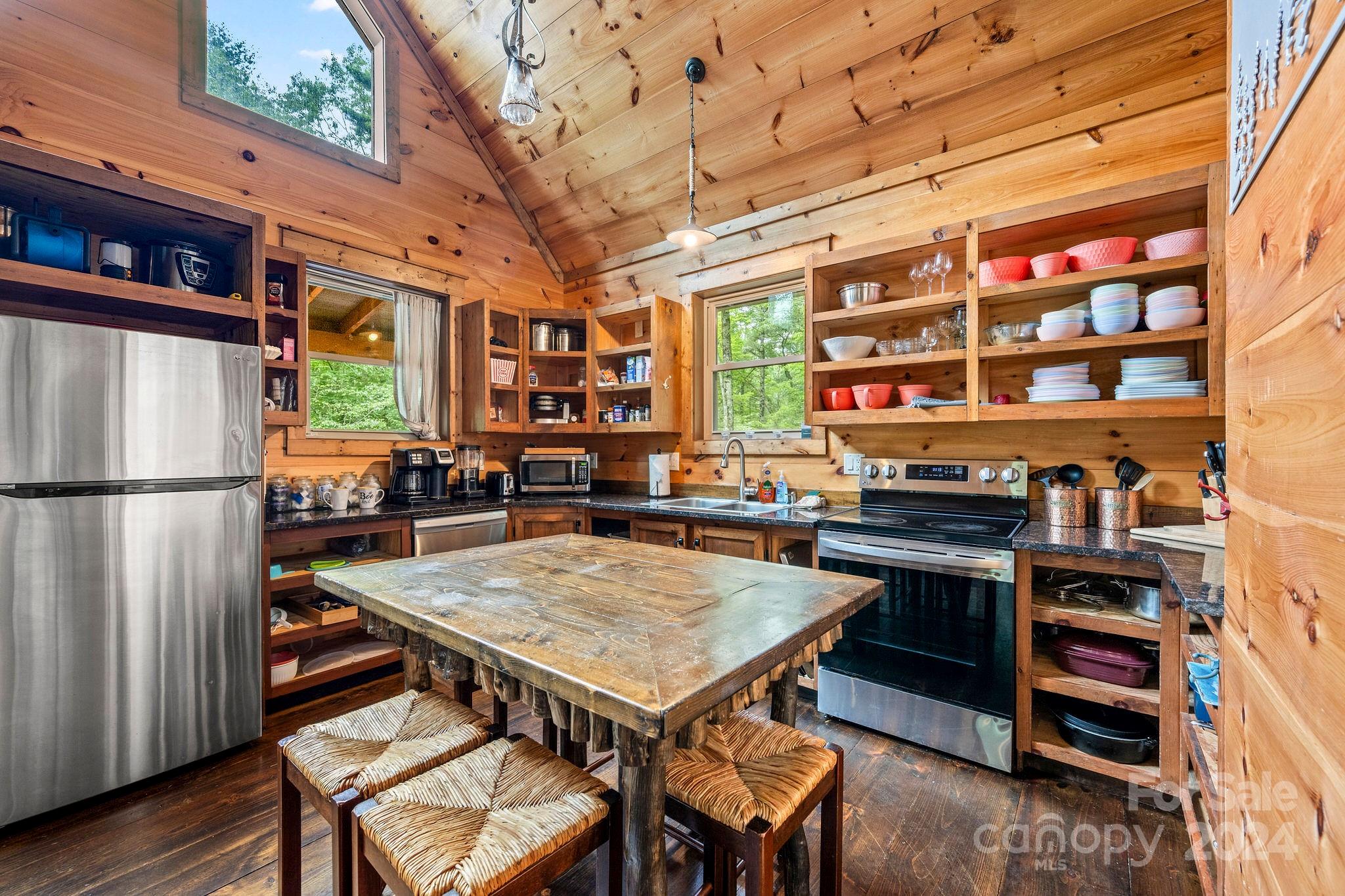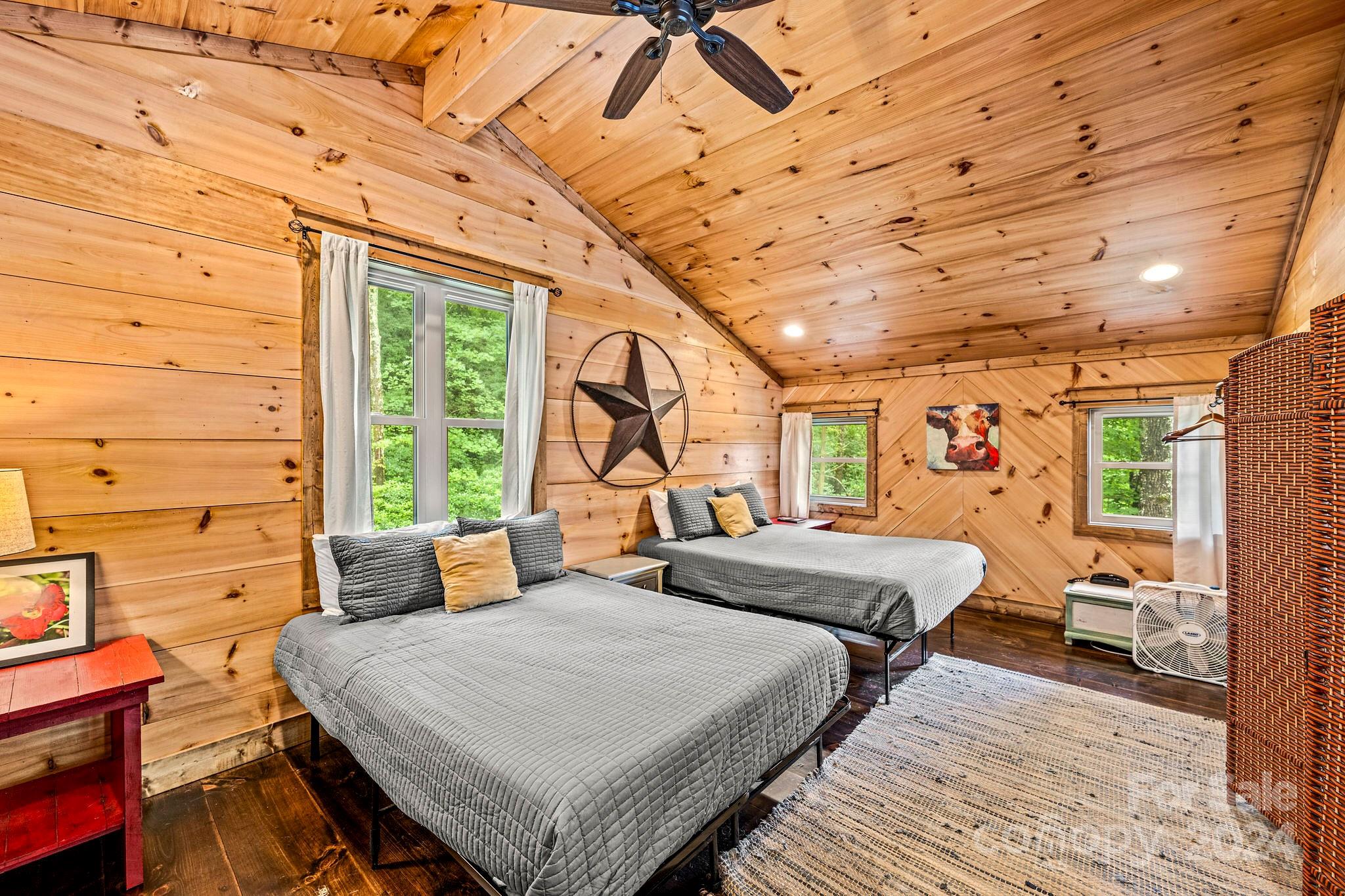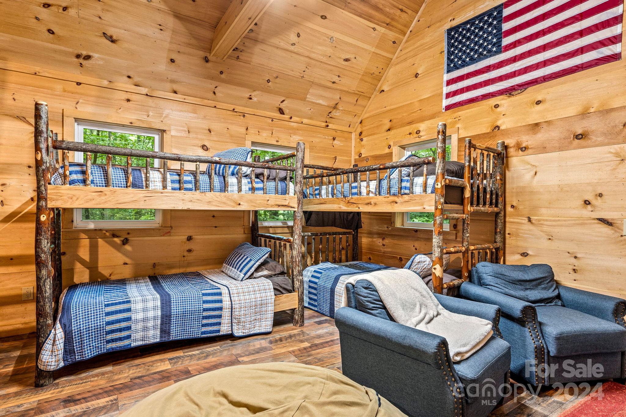 Discover this retreat for up to 17 guests, featuring a large pond, two fire pits, two cabins, a kid's bunkhouse, three kitchens, and a BRAND NEW HOT TUB. On almost 8 acres and only 6 miles from downtown Cashiers, this retreat offers convenient access to vibrant dining, local shops, and outdoor activities. With an abundance of waterfalls, fly-fishing spots, tubing adventures, and hiking trails at your doorstep, the possibilities are endless. An expansive deck with a large gas grill offers breathtaking views. Currently a highly successful short-term rental. Lot has the potential to build additional units with new septic installation. Buyers to confirm. Sold Furnished. Assumable 4.25% mortgage! (Buyers to verify with the bank)